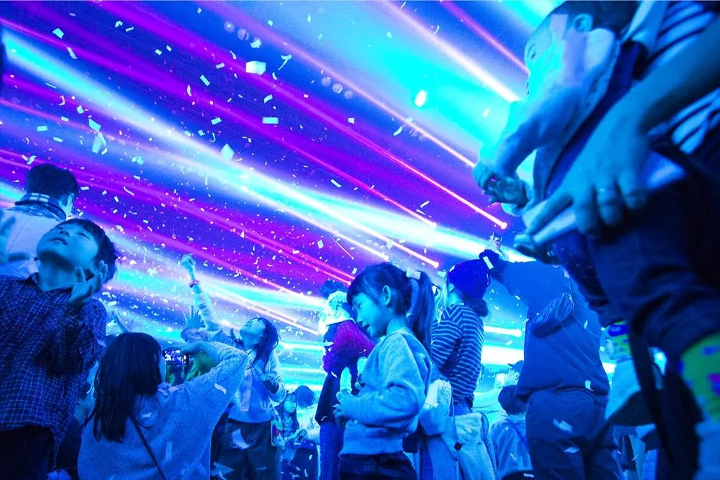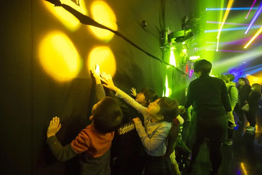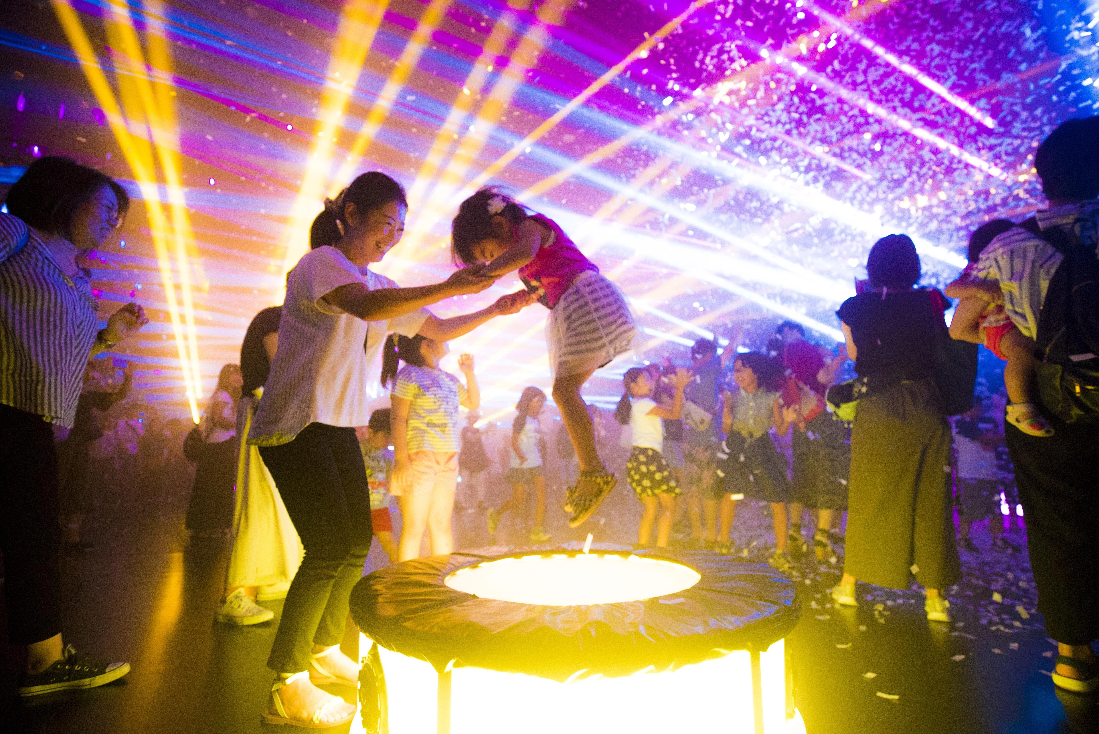 “teamLab Jungle” is an interactive music festival in a spectacular light art space, where visitors are immersed in light and can play music by touching the light. “teamLab Jungle - Kids Noon” can be enjoyed by families during daytime.