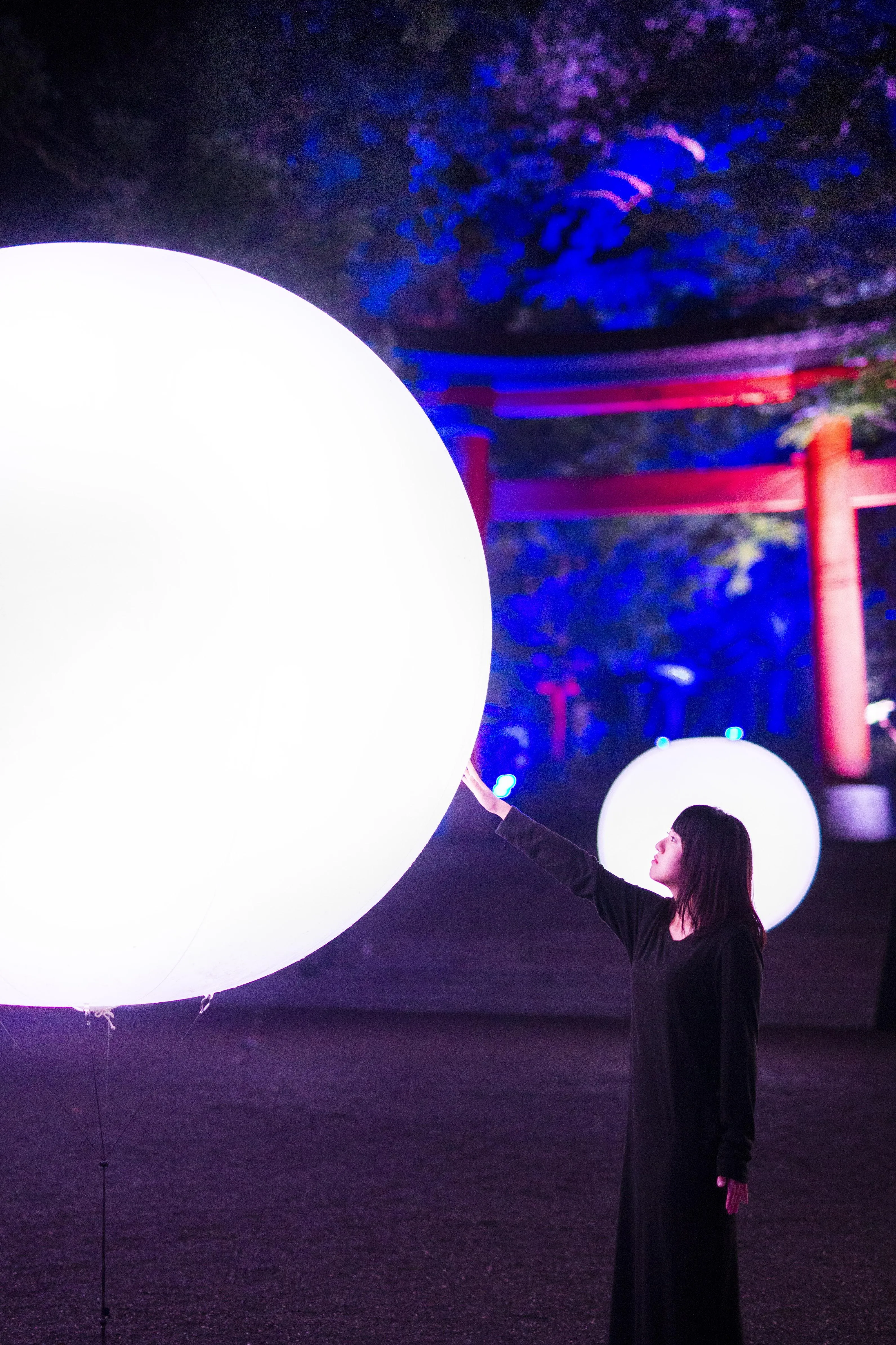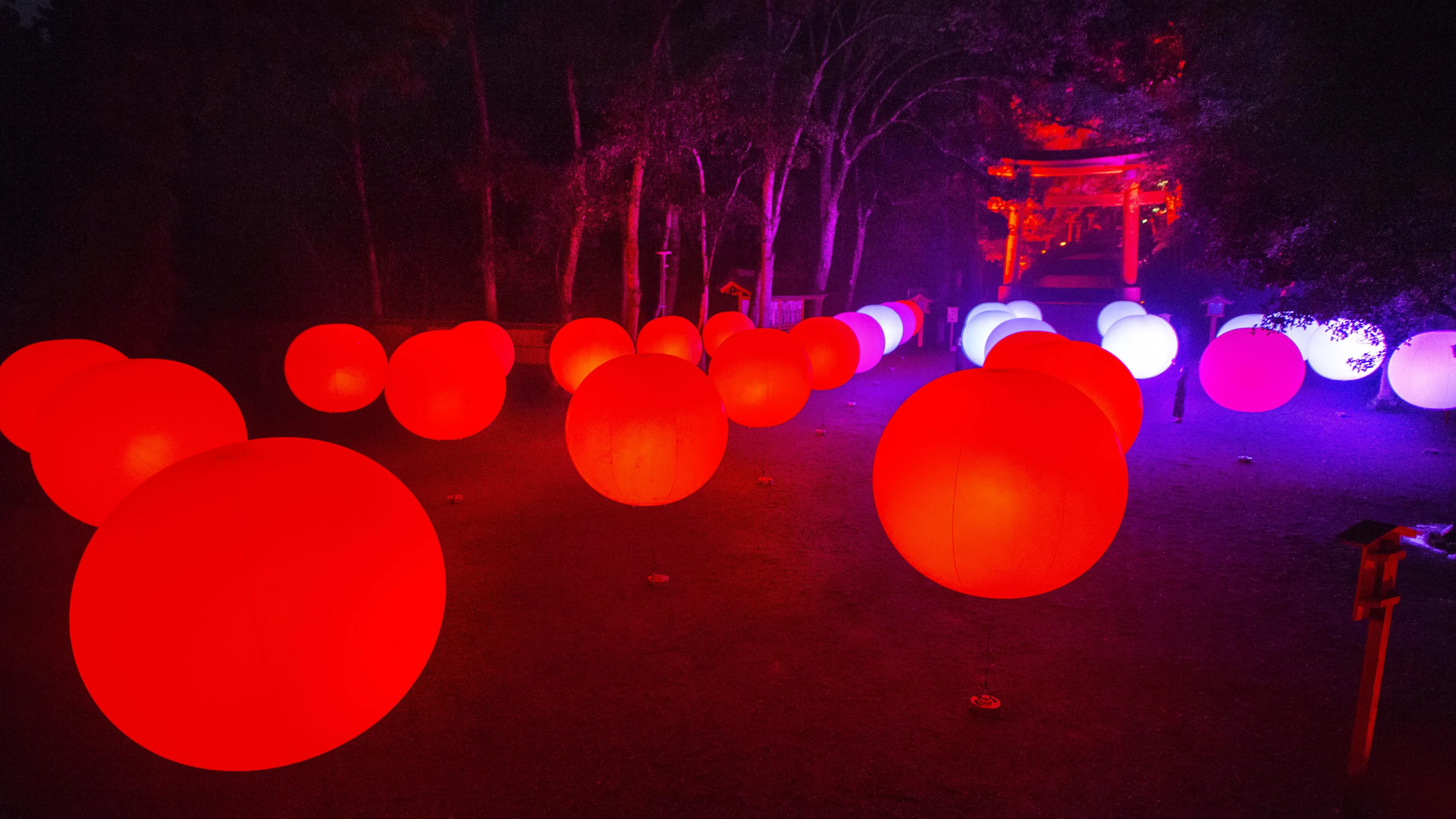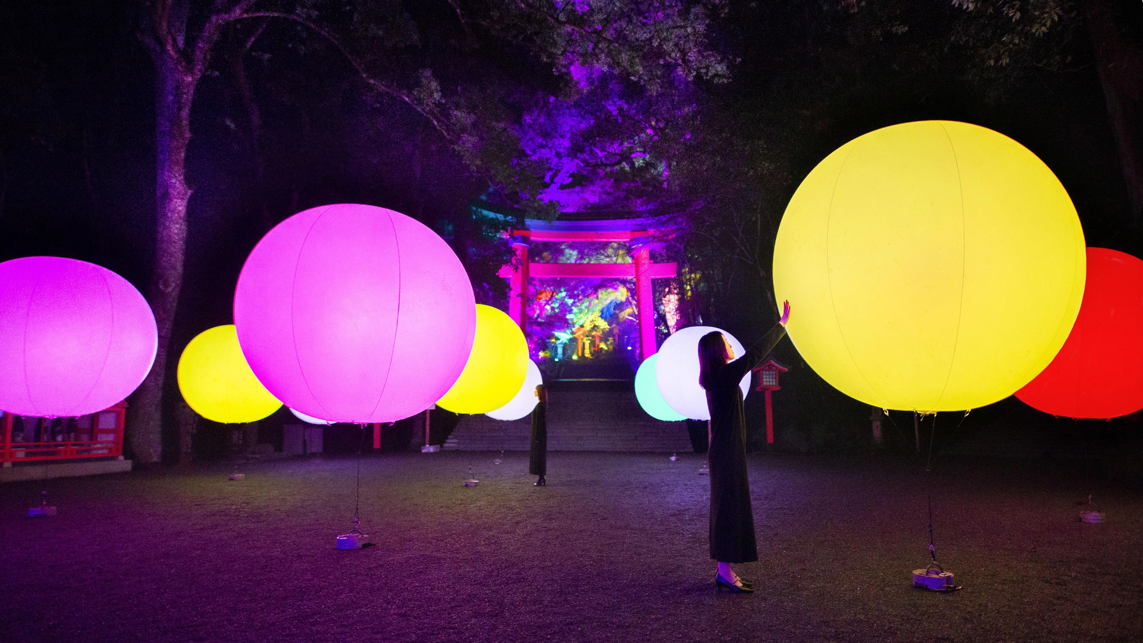 Resonating Trees are on display. The forest surrounding the grounds and the path leading to the shrine are transformed into an interactive digital art space that changes due to the presence of people. This in turn, enhances the presence of humans, and transforms the relationship between people in the same space with digital art.