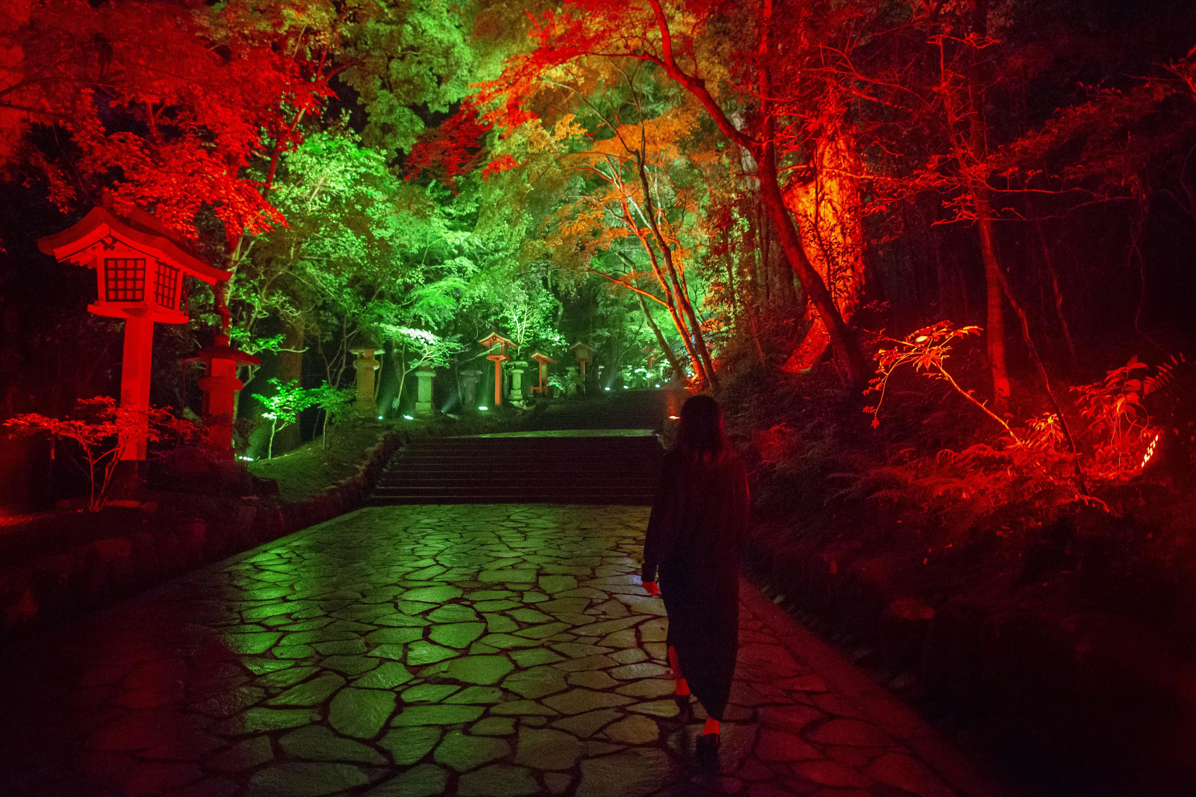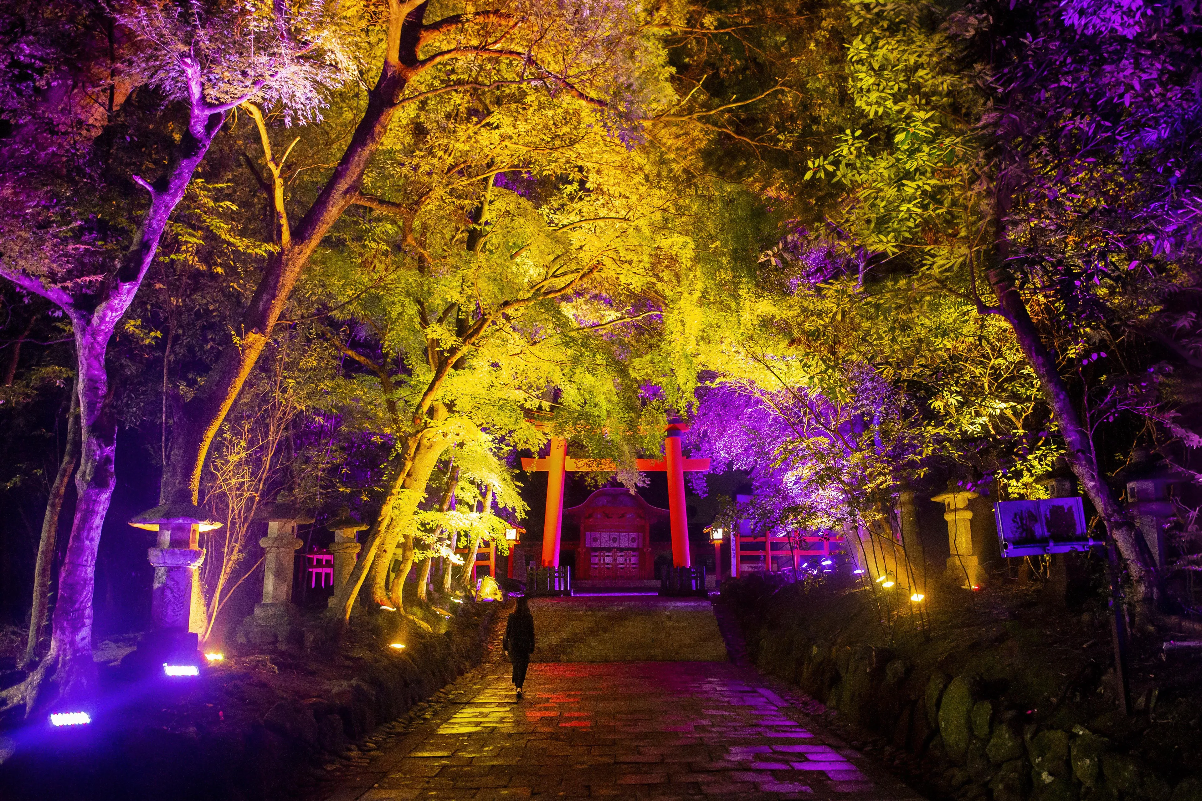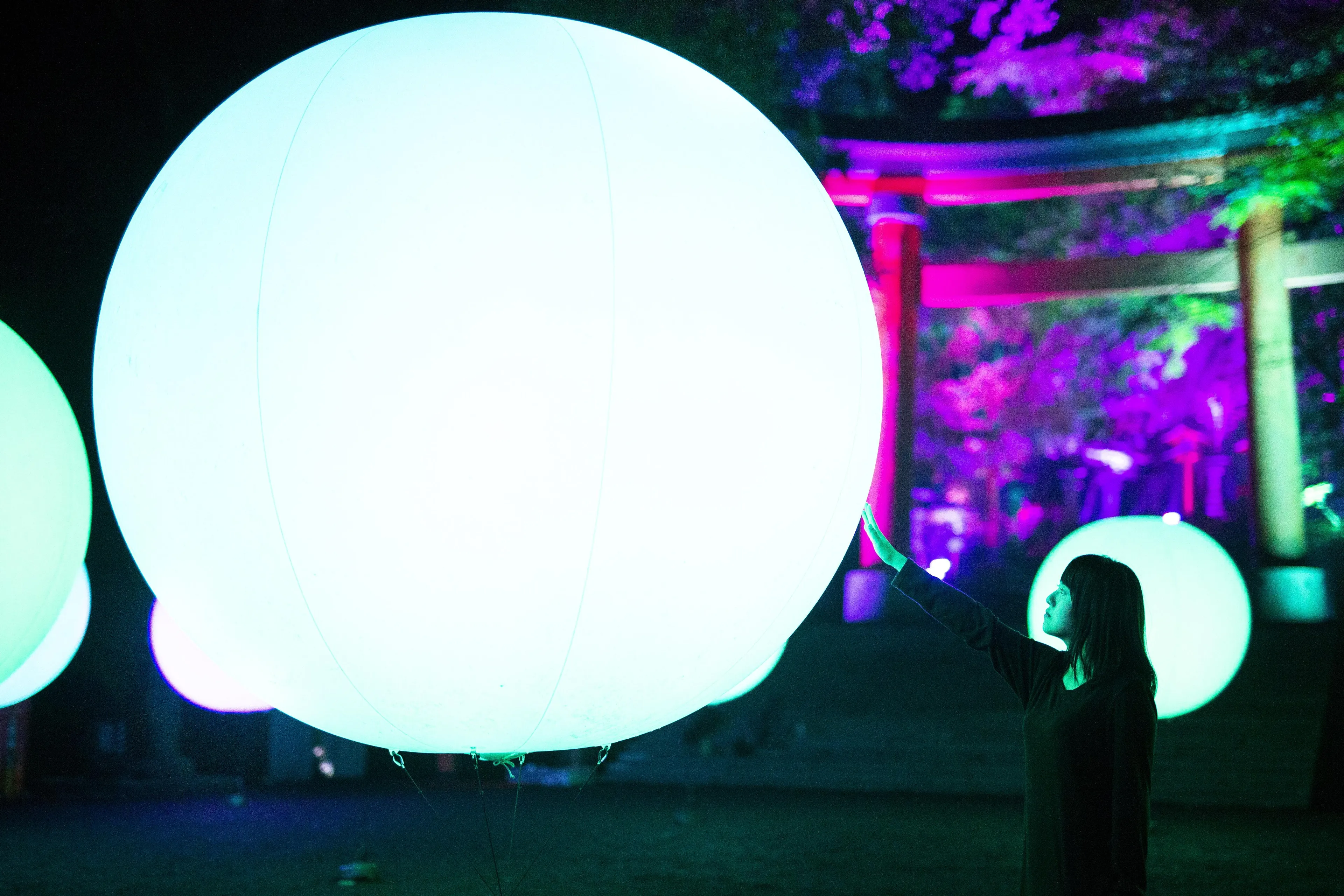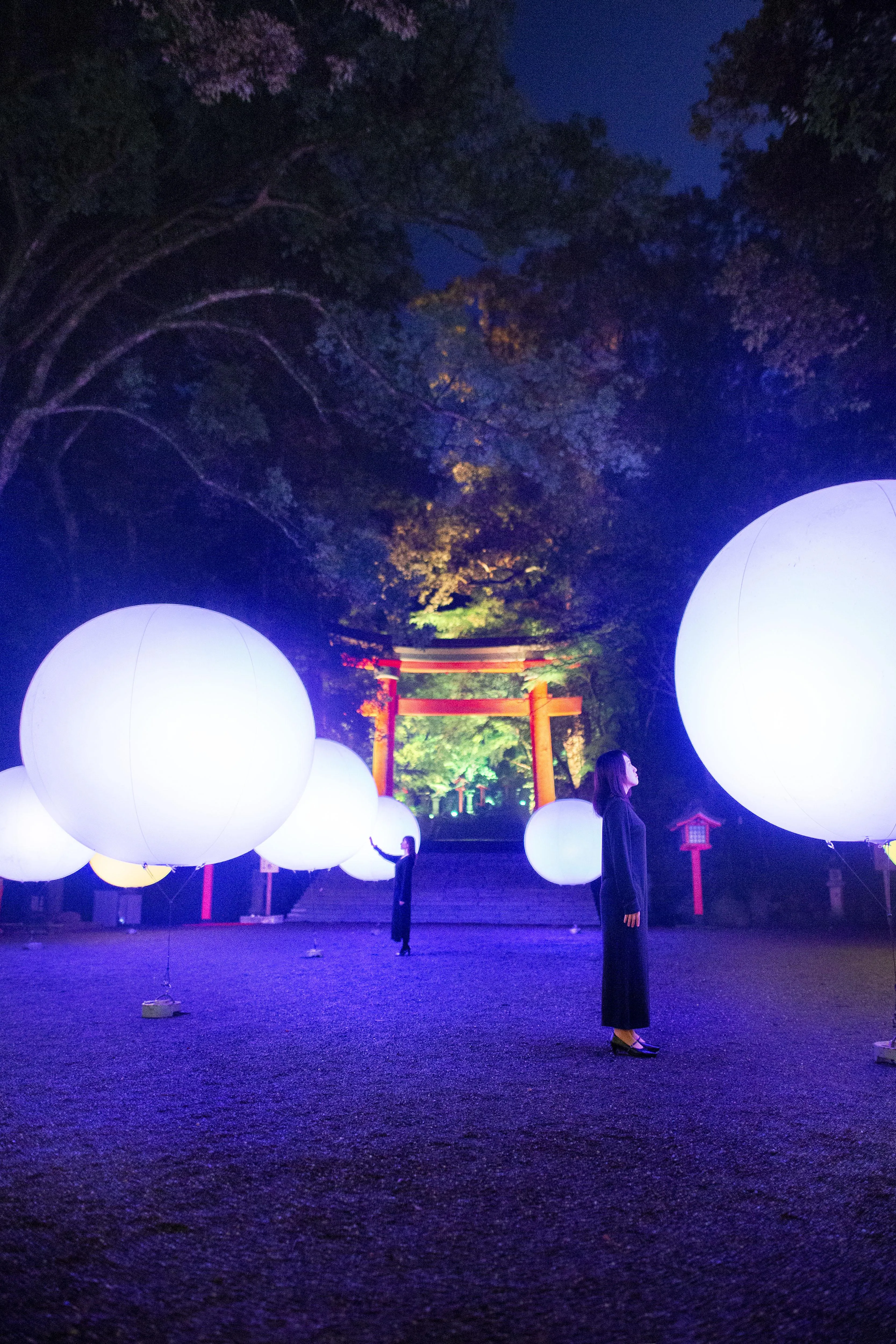 Resonating Trees are on display. The forest surrounding the grounds and the path leading to the shrine are transformed into an interactive digital art space that changes due to the presence of people. This in turn, enhances the presence of humans, and transforms the relationship between people in the same space with digital art.