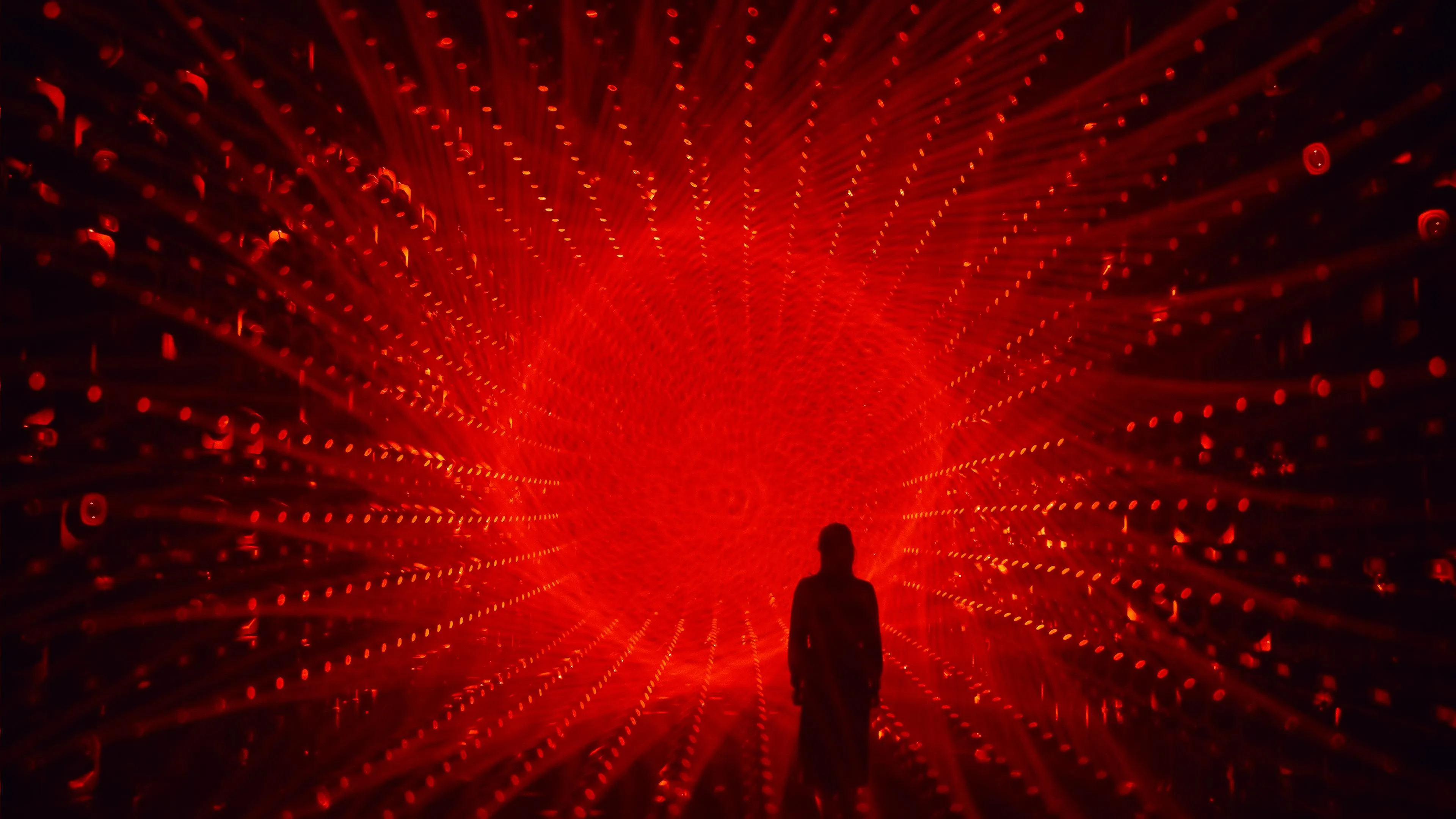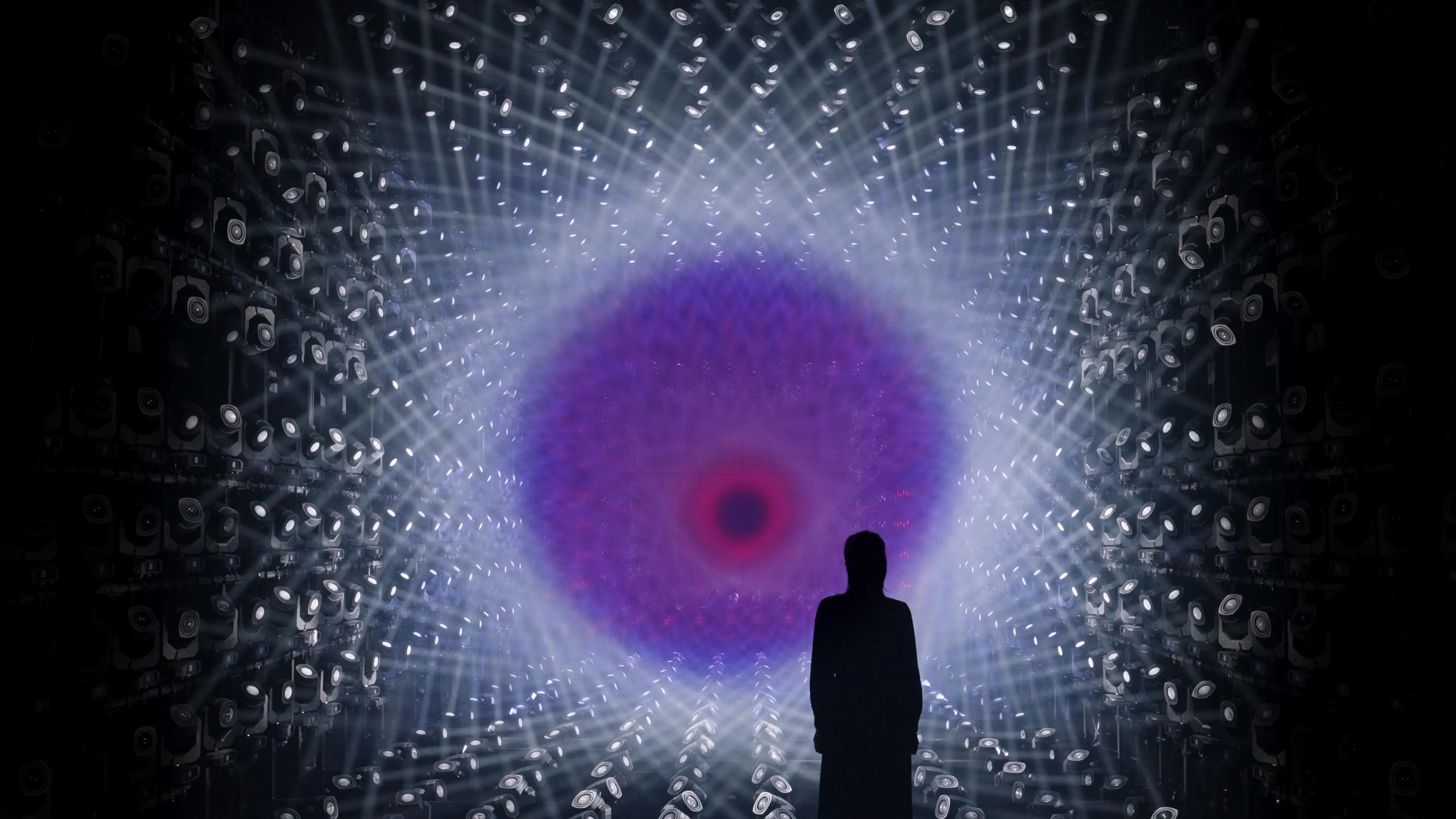 「Light Sculpture - Line」系列作品。透过光之线条的集合对空间进行再构成并建构立体造形。由於空间和立体造形都是由光线所组成,所以观赏者的身体可以整个没入作品之中。
