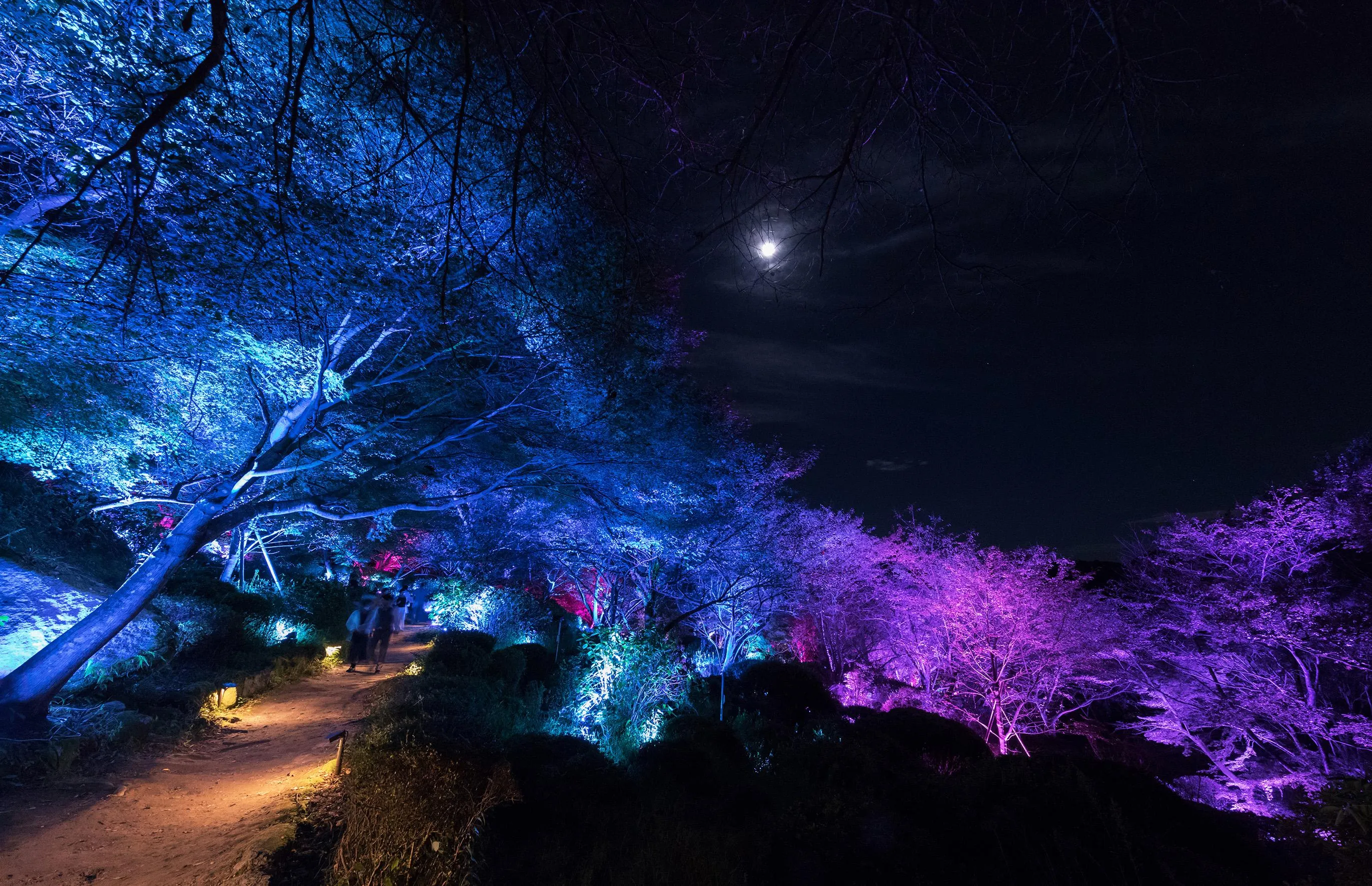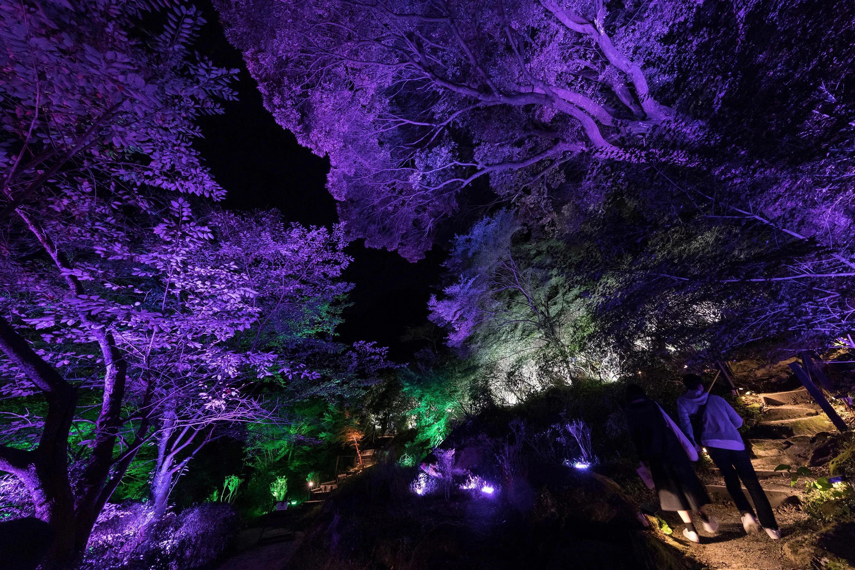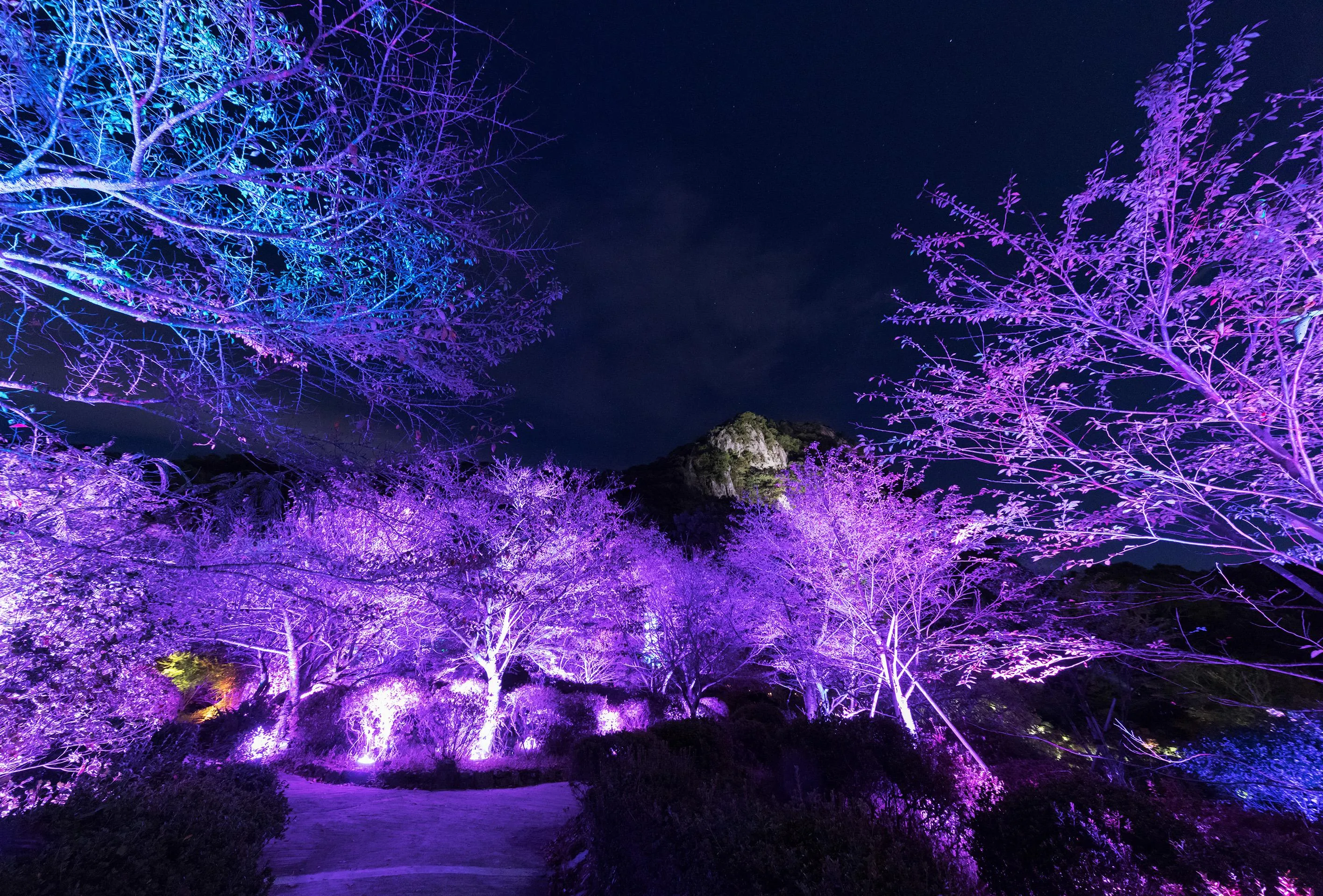 The forest, rocks, and caves of Mifuneyama Rakuen have formed over millions of years, and for thousands of years people have sought meanings in them. The park that we know today sits on top of this history. It is the ongoing relationship between nature and humans that has made the border between the forest and garden ambiguous, keeping this cultural heritage beautiful and pleasing. Lost in nature, where the boundaries between man-made garden and forest is unclear, we feel like we exist in a continuous, borderless relationship between nature and humans. It is for this reason that teamLab decided to create an exhibition in this vast, labyrinthine space, so that people will become lost and immersed in the exhibition and nature.