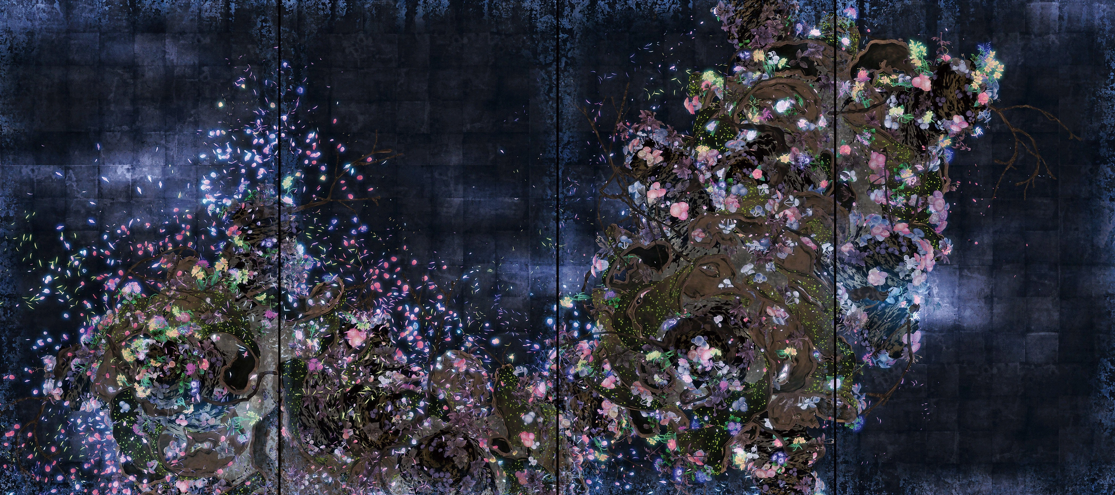 When Japanese multimedia art collective teamLab released Flutter Of Butterflies Beyond Borders last fall at London’s Saatchi Gallery, they experimented with a year’s worth of bloom and decay via an immersive space full of projected flowers and butterflies. For their latest work, Flowers and People, Cannot be Controlled but Live Together, teamLab return to the concept of annual change, this time with colorful, luminous flowers sprouting, growing, budding and blossoming before withering and eventually fading away. Viewers amble across a walkway that goes through a large open space that seems to go on infinitely, and where a year is equivalent to an hour spent in the exhibition.(Excerpt from the text)