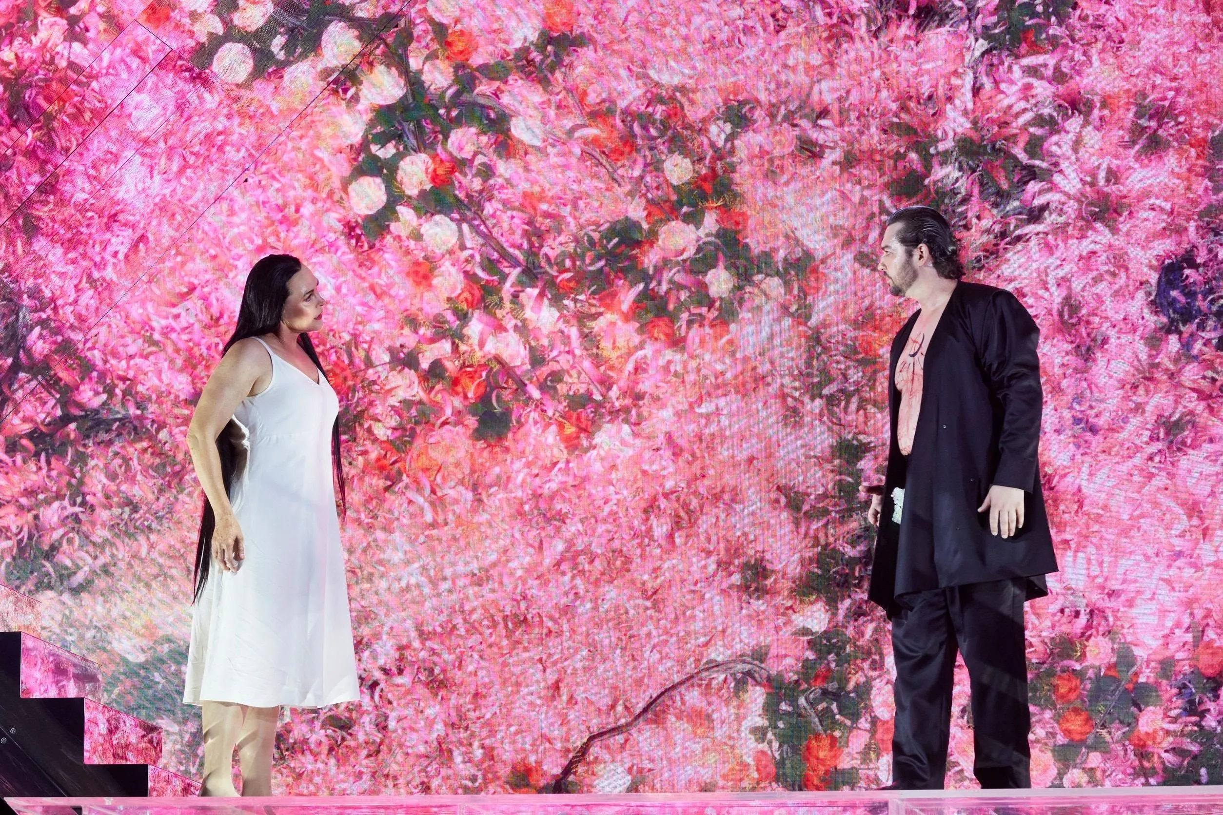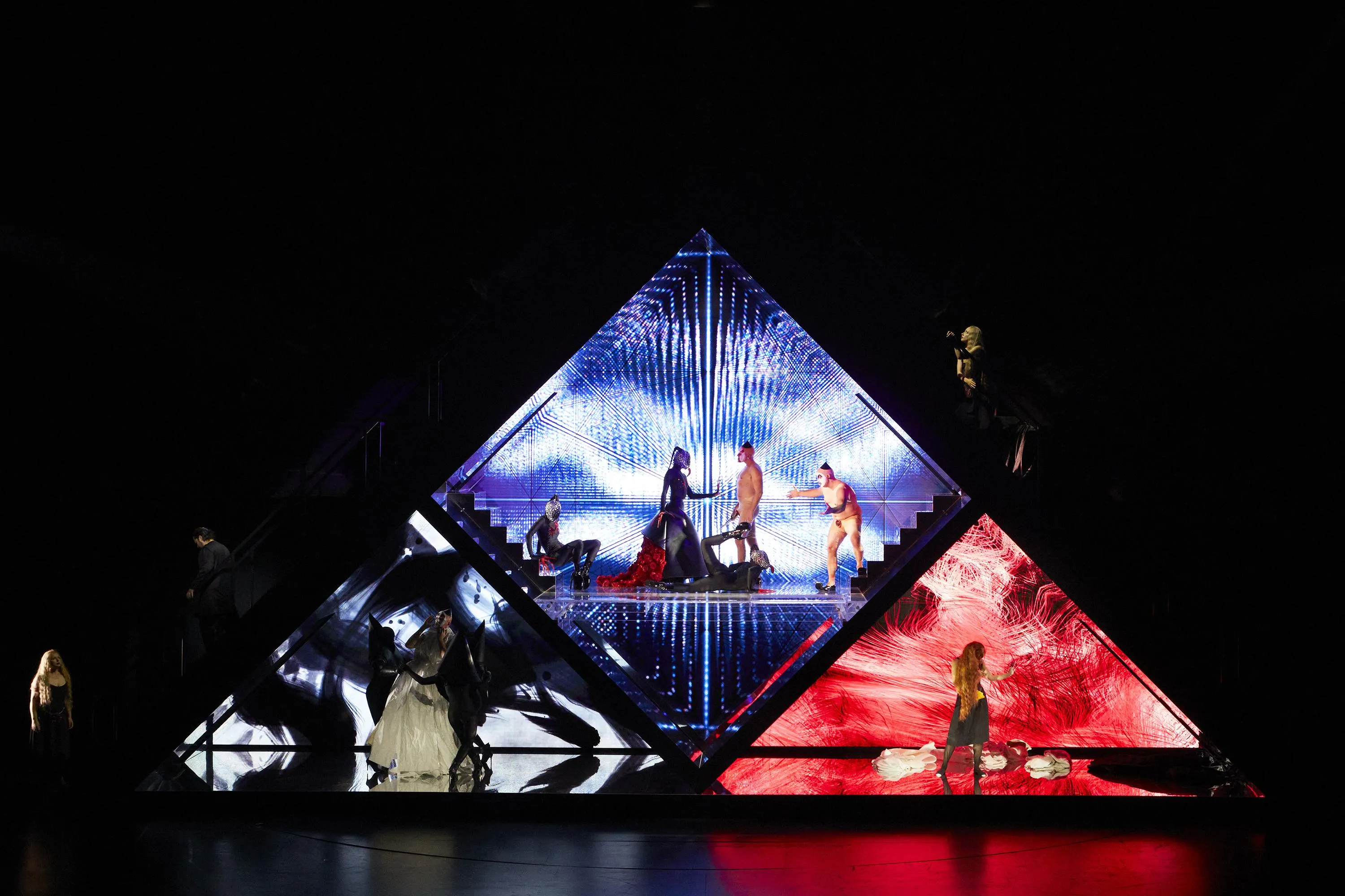 Daniel Kramer’s new staging transposes the old fairy tale to a futuristic world where Turandot’s magic and power hold sway. In a dystopian game show, reminiscent of Hunger Games, the regime of the woman who refuses to become one institutes a surveillance state in which men are culled and the reproduction and breeding of the human species is conducted in a mechanical facility. The US-born director harks back to the archaic essentials of the battle between the sexes.