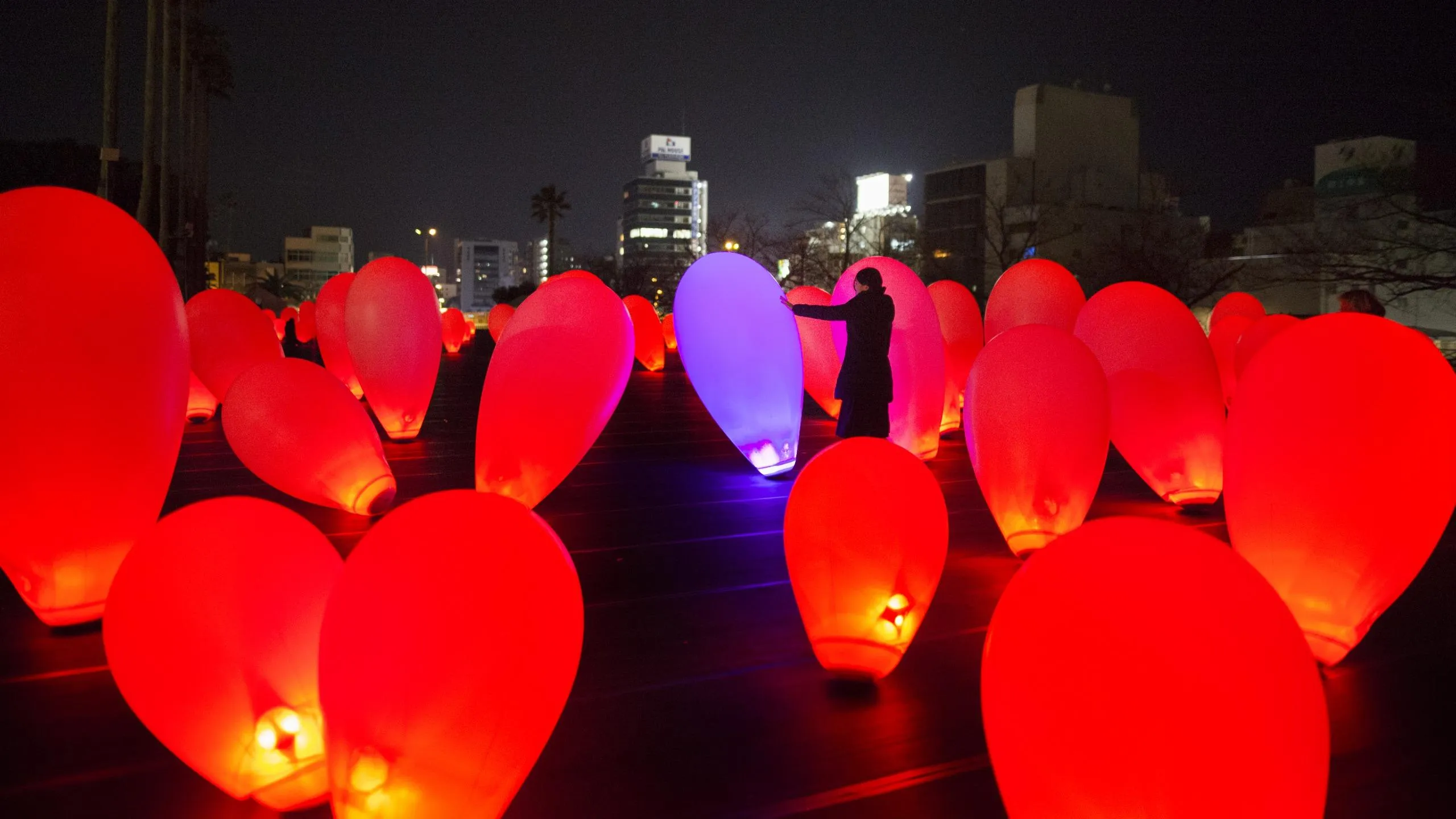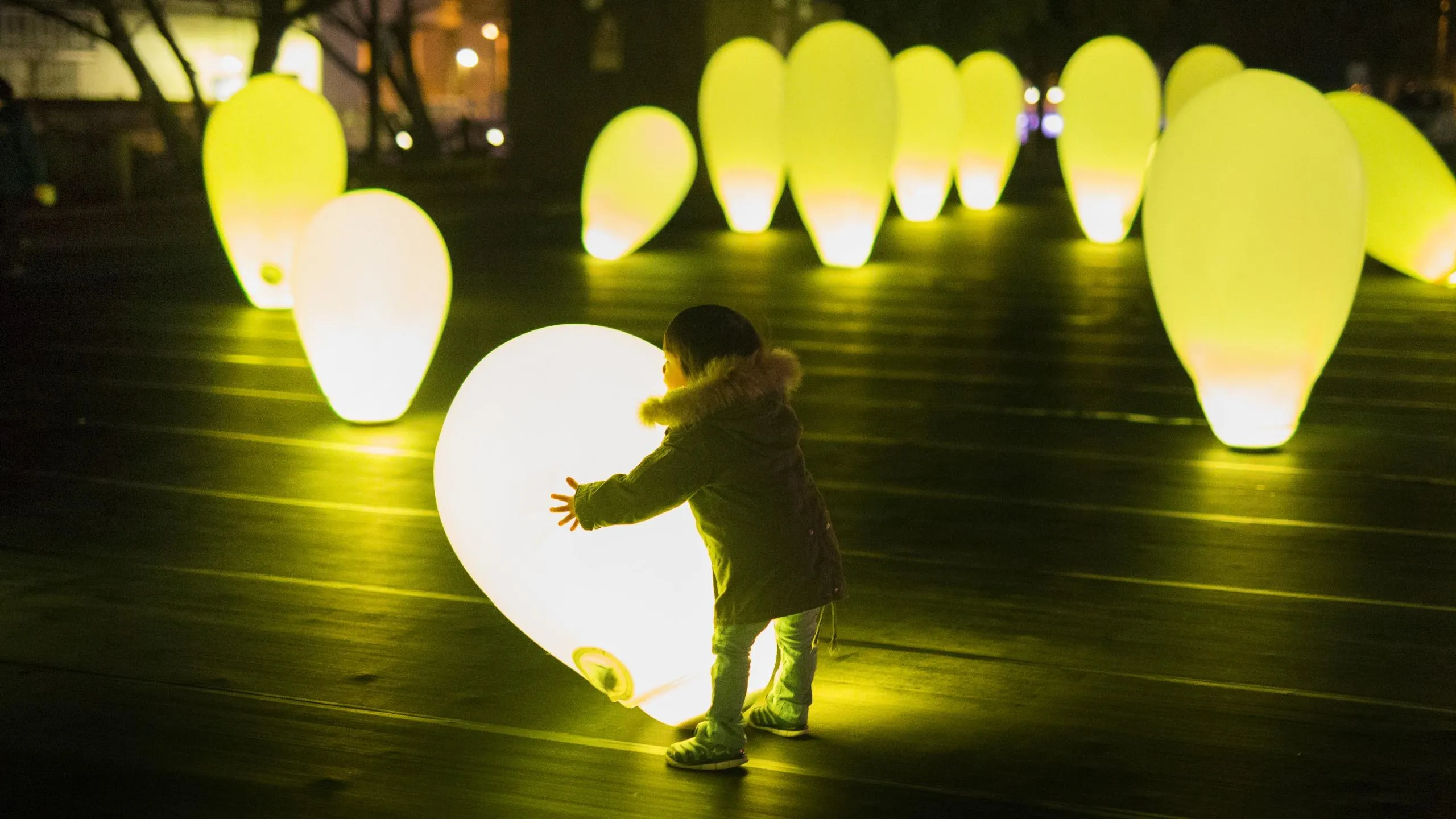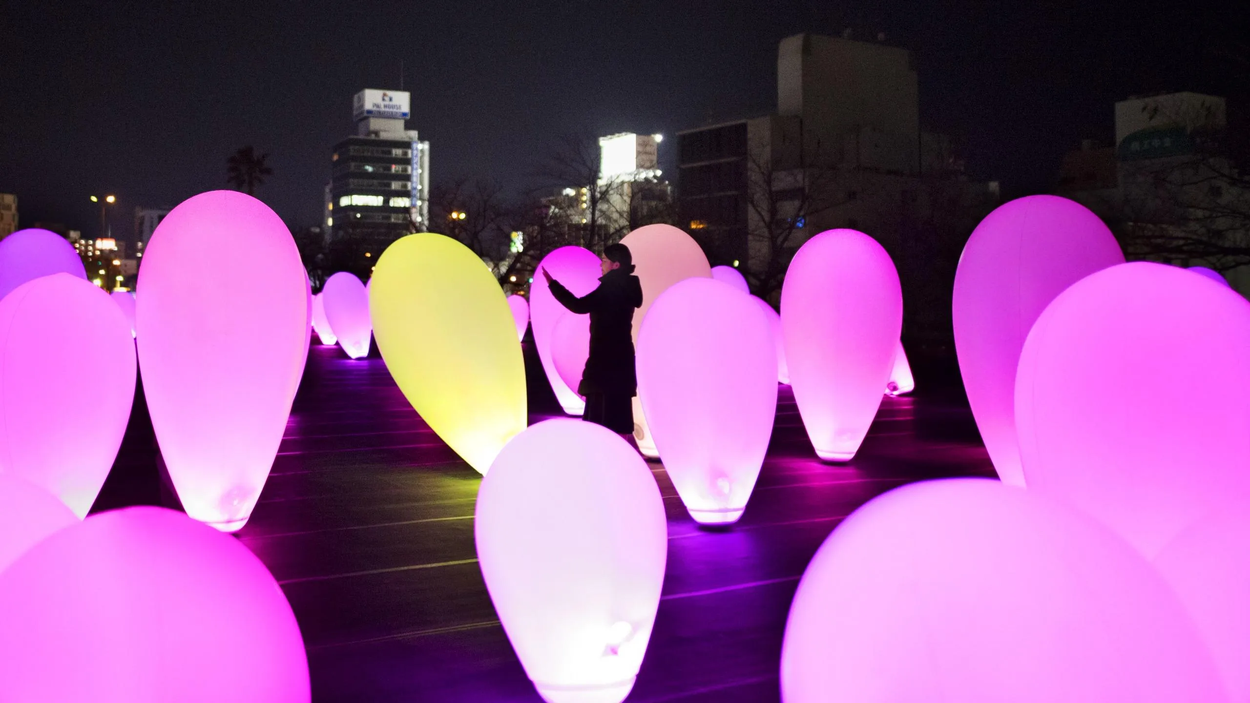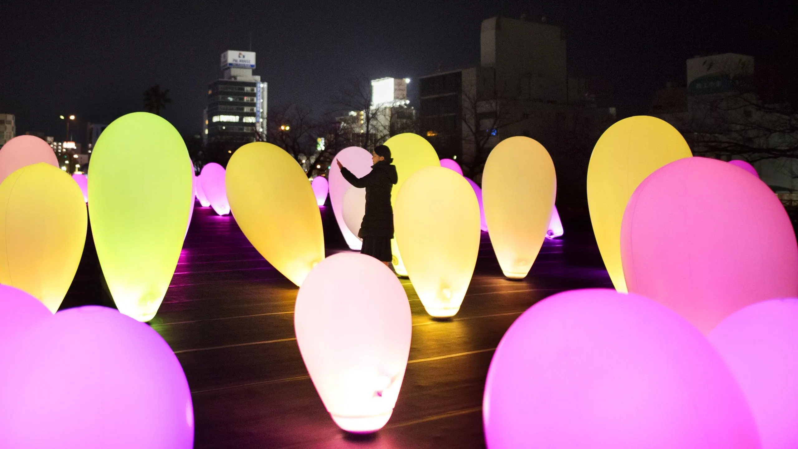 When the objects are pushed by people, the color of their light changes, and they emit a unique sound tone. The color and the sound then resonates out to the objects around them. The resonating light is transmitted to the next object one after another, spreading the color tone in the same way continuously.