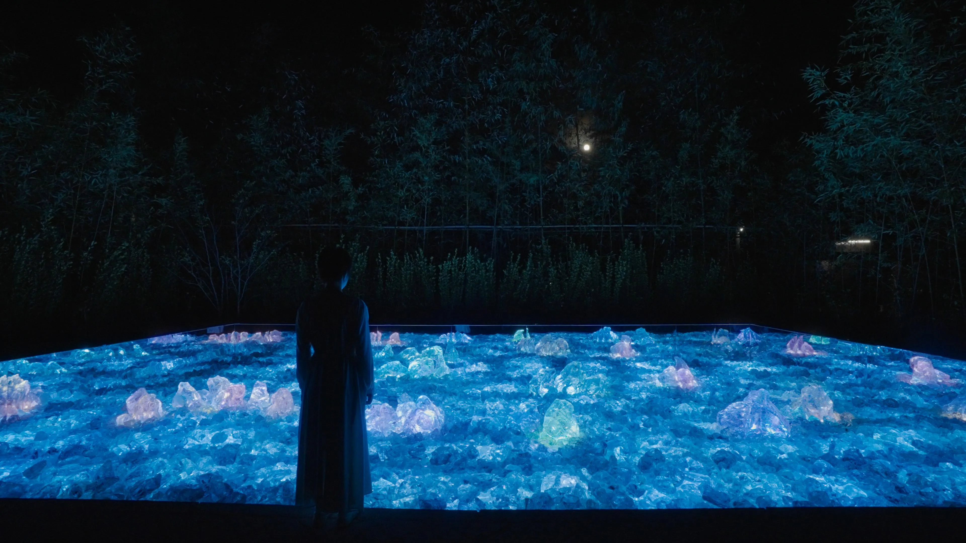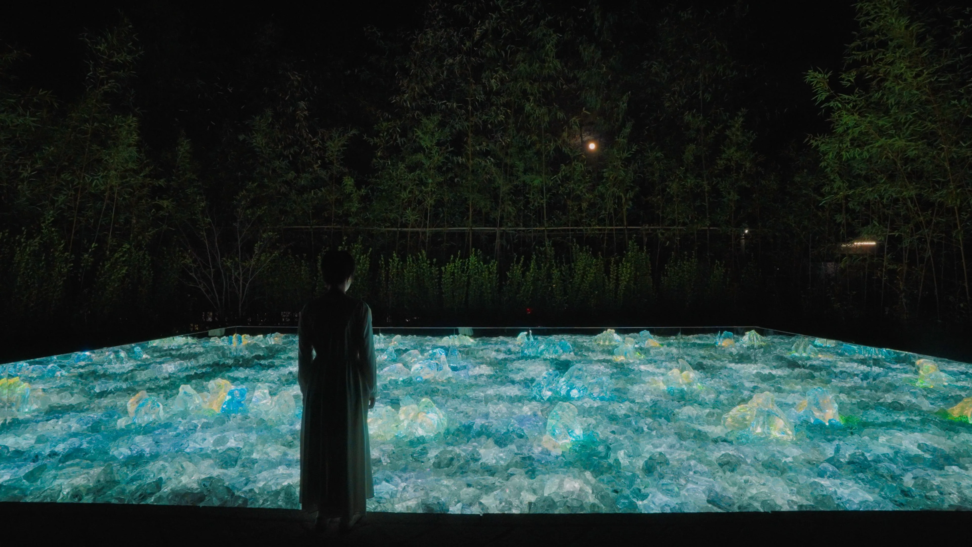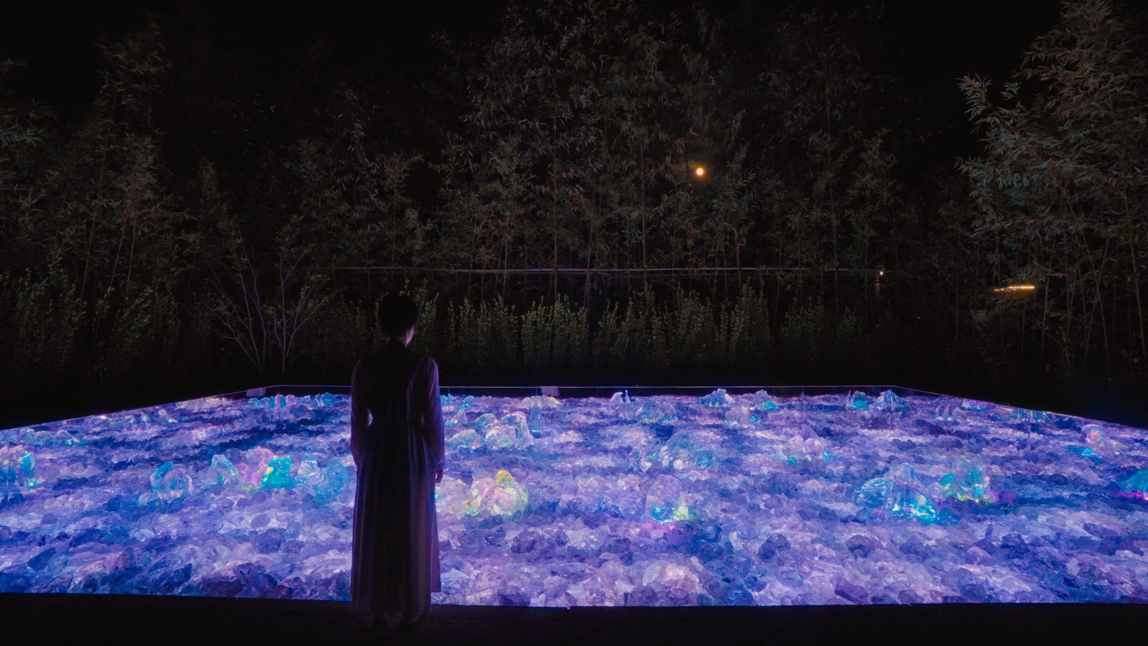 At night, the light inside the rocks solidifies and melts into each other. The garden changes depending on people's actions.