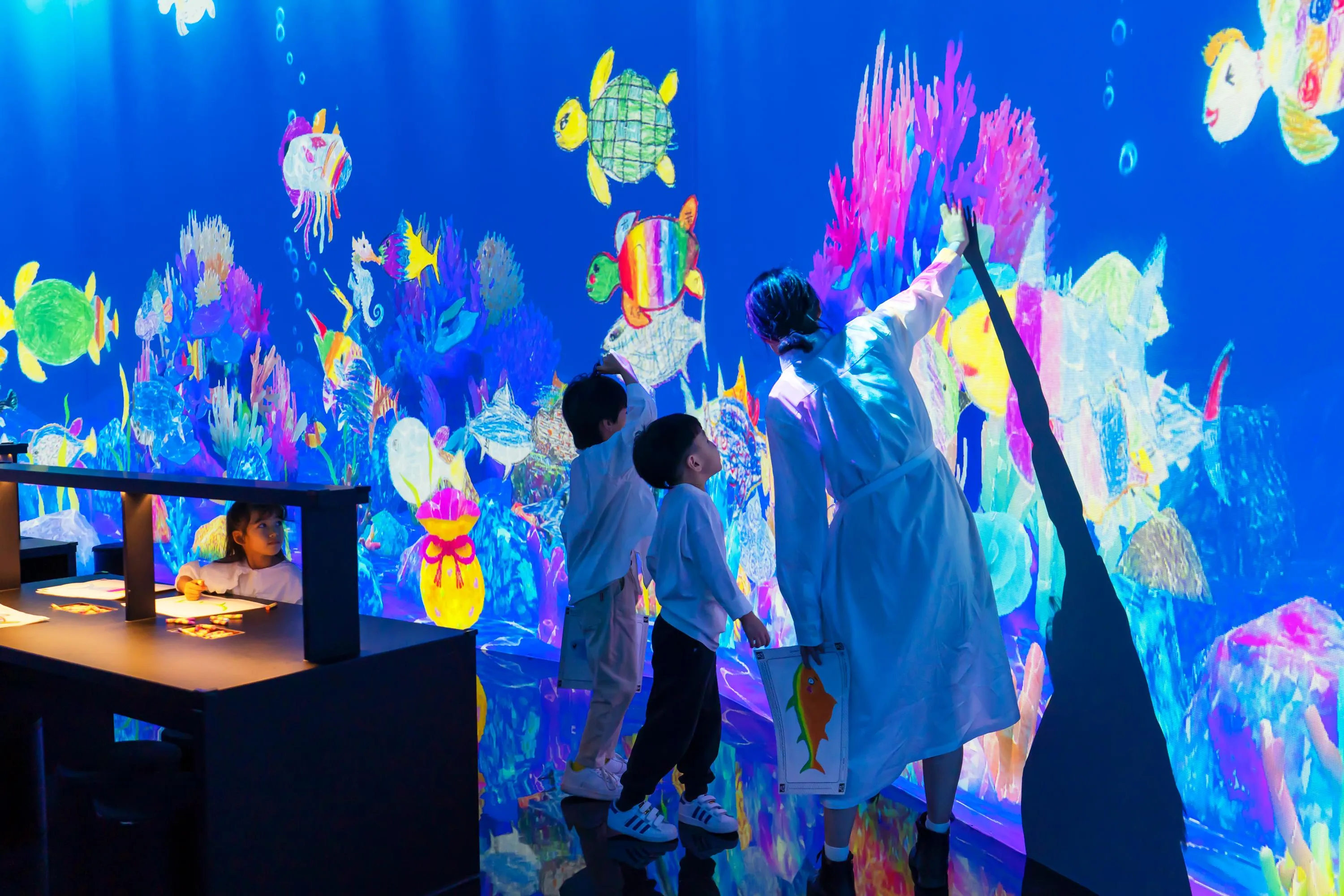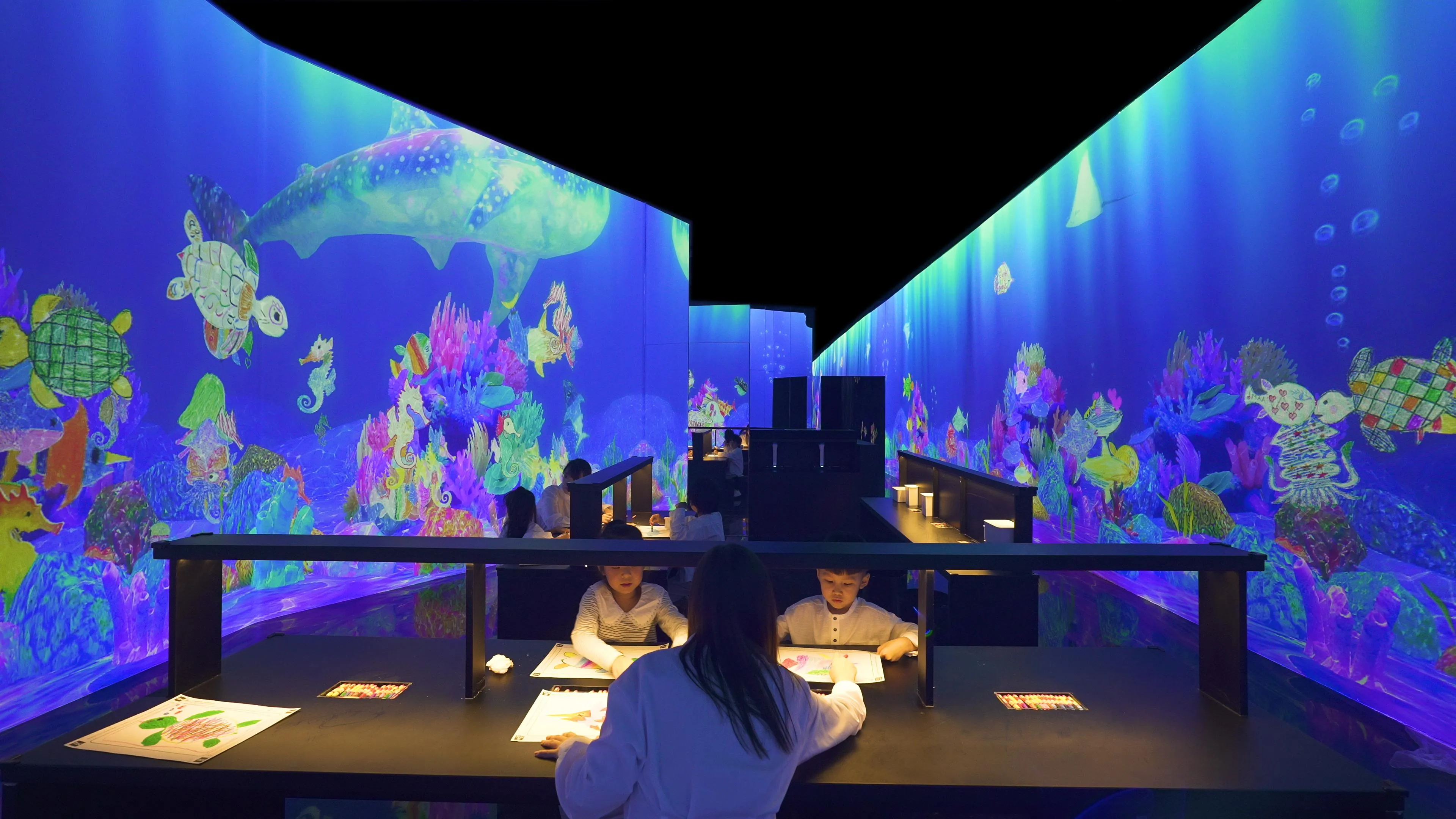 The tuna transcend the physical boundaries of the museum and swim out into the Sketch Ocean or Sketch Aquarium: Connected World artworks in other exhibitions. Similarly, tuna drawn in other exhibitions may appear and swim into the Sketch Ocean right in front of you.