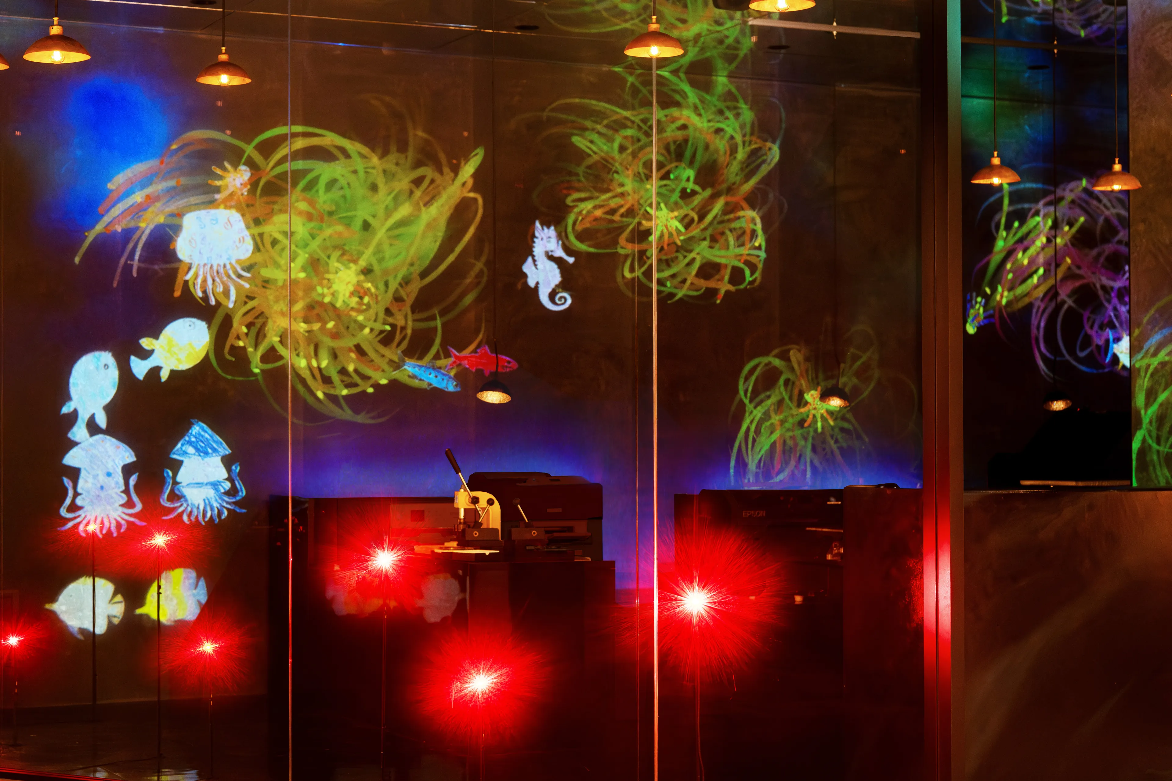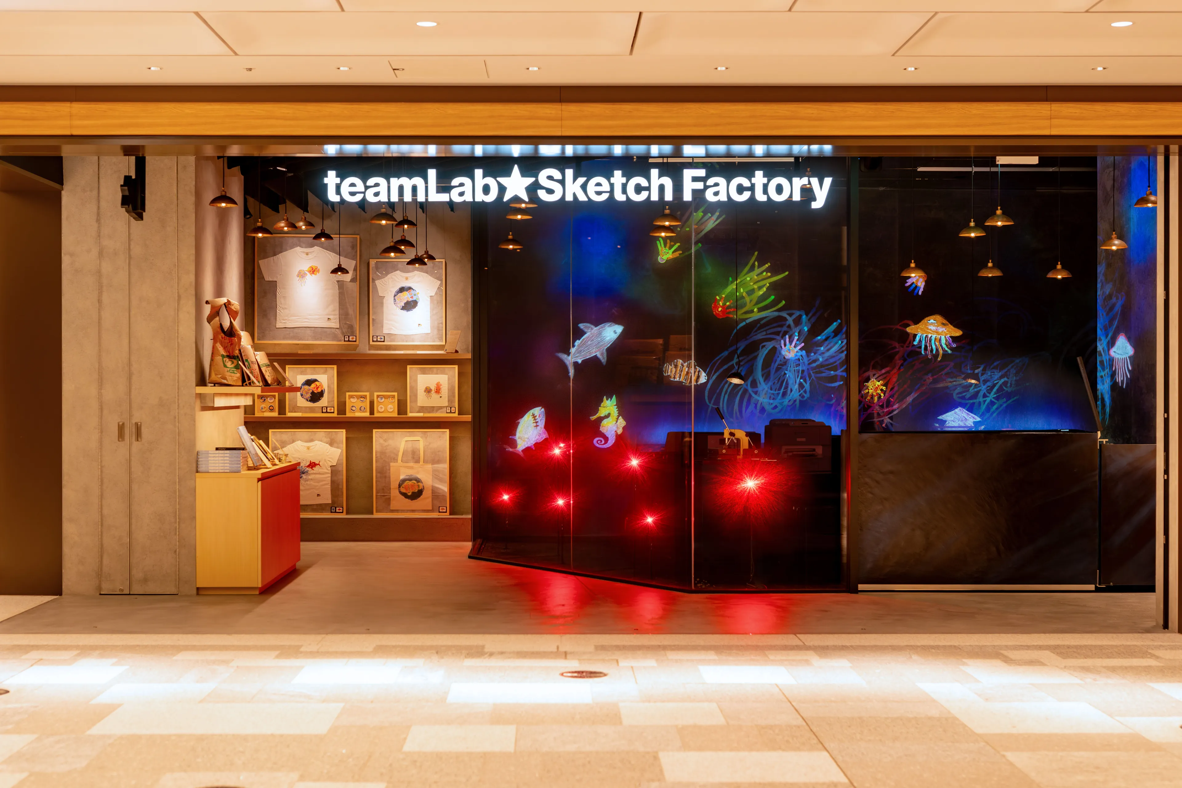 Make an order at the Sketch Factory with your fish drawing from Sketch Ocean, and the fish that you draw will appear inside the Sketch Factory and begin to move about. When the fish enters the printer production will begin and it will turn into a tin badge, hand towel, T-shirt, tote bag or papercraft.