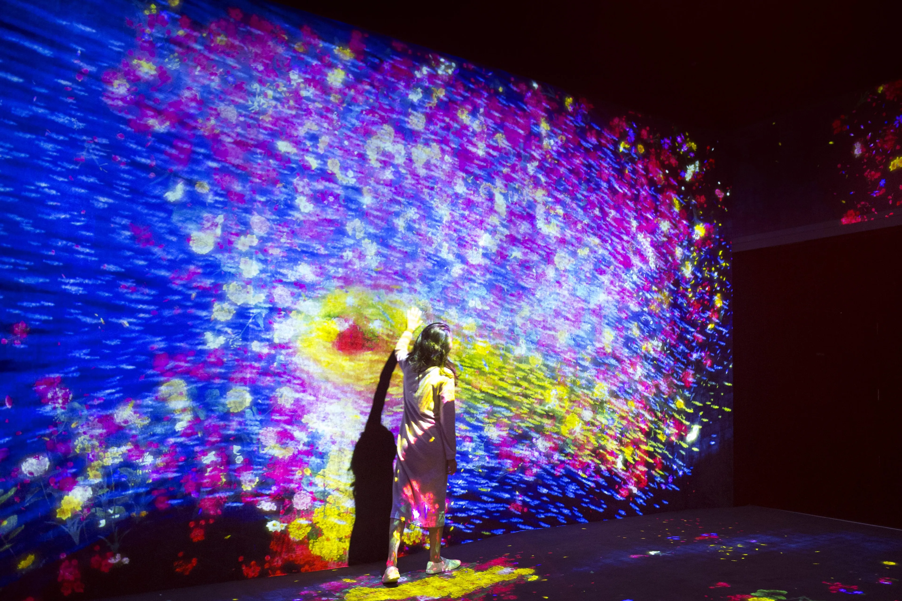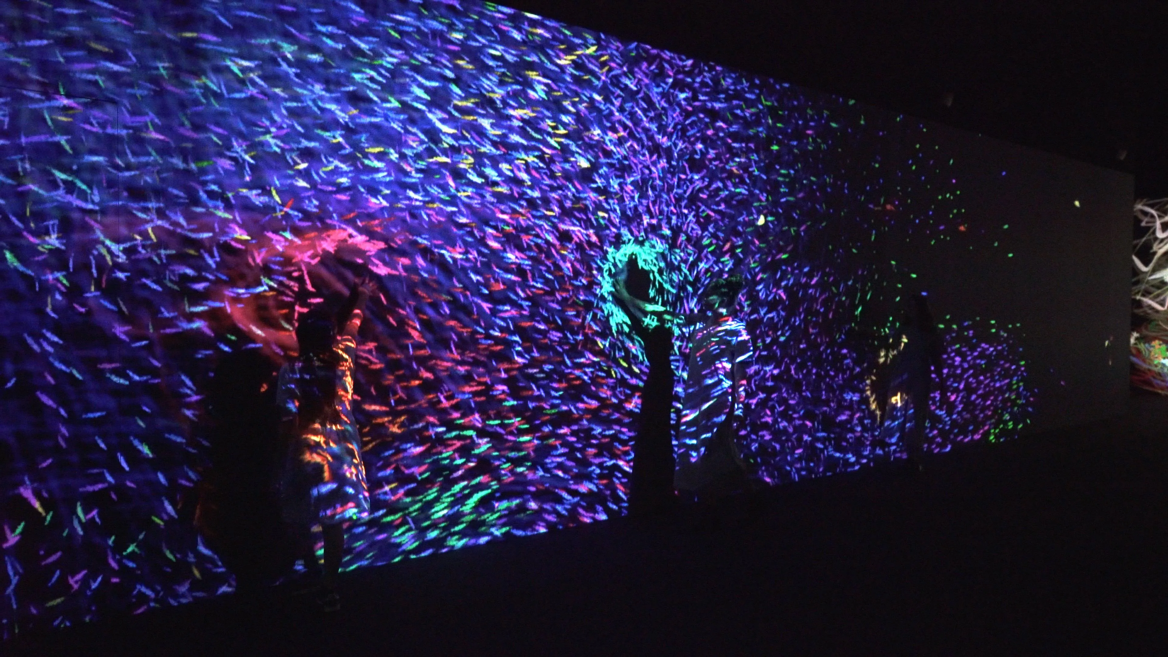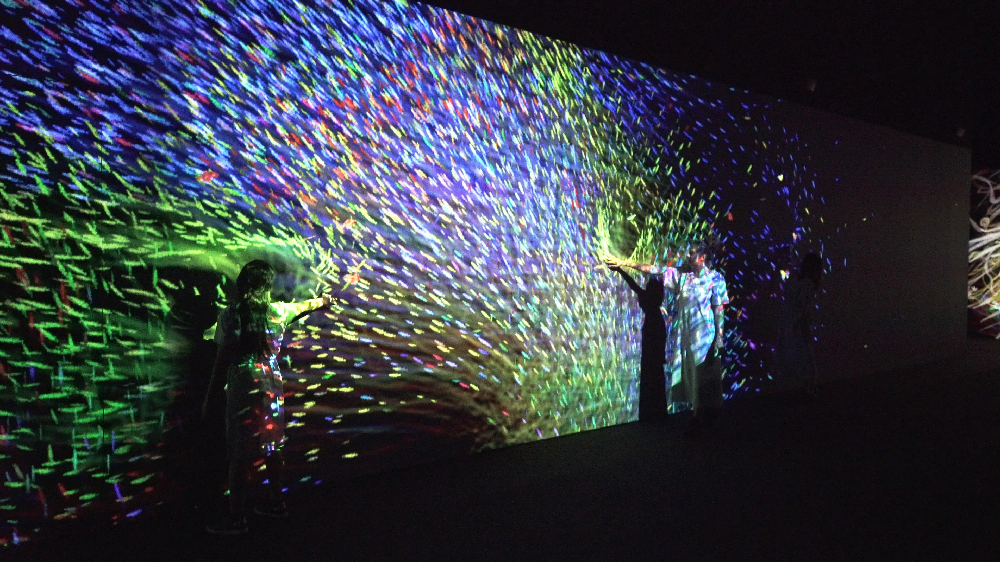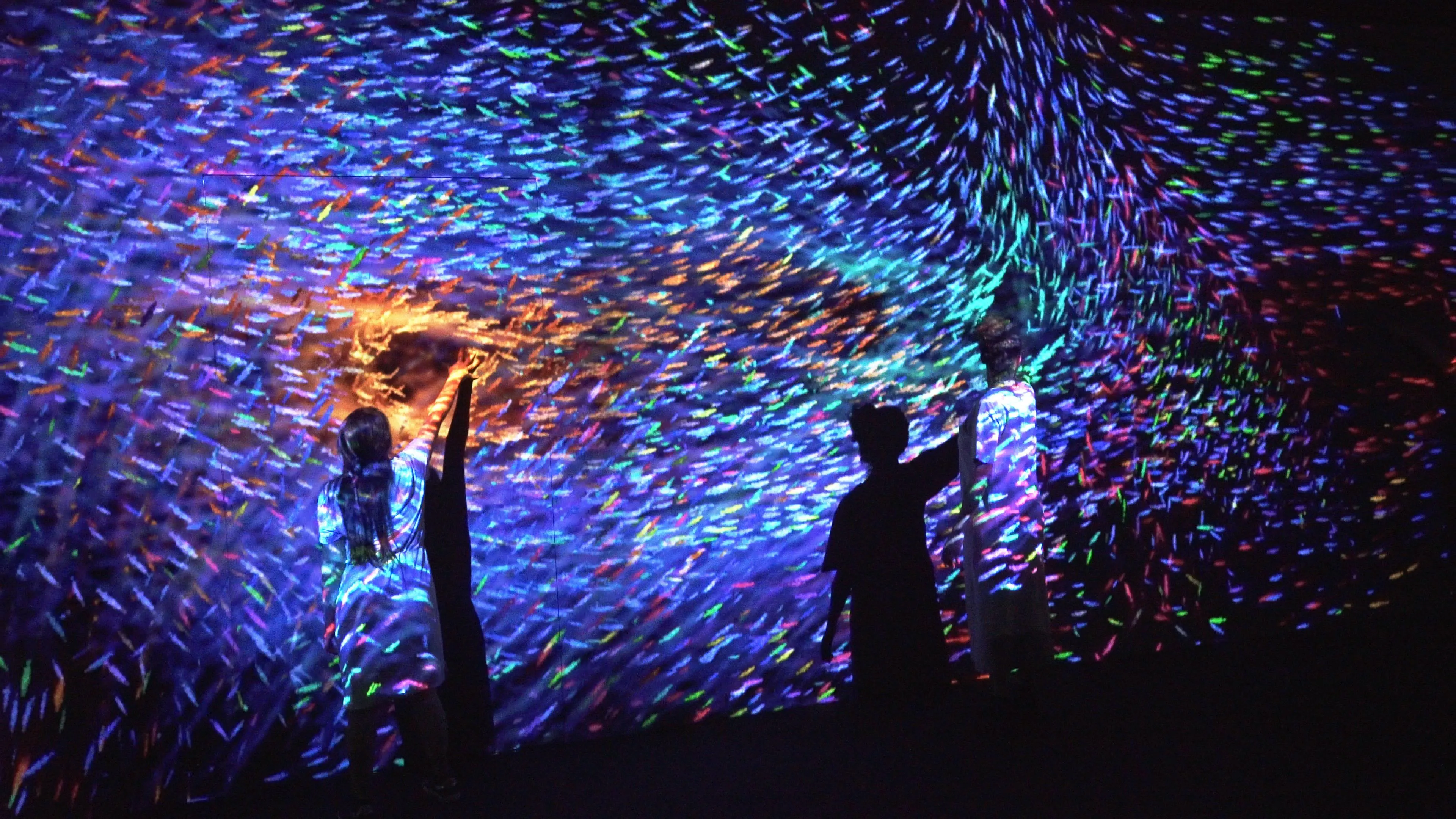 When people touch a shoal of fish, the fish are dyed a color unique to that person.