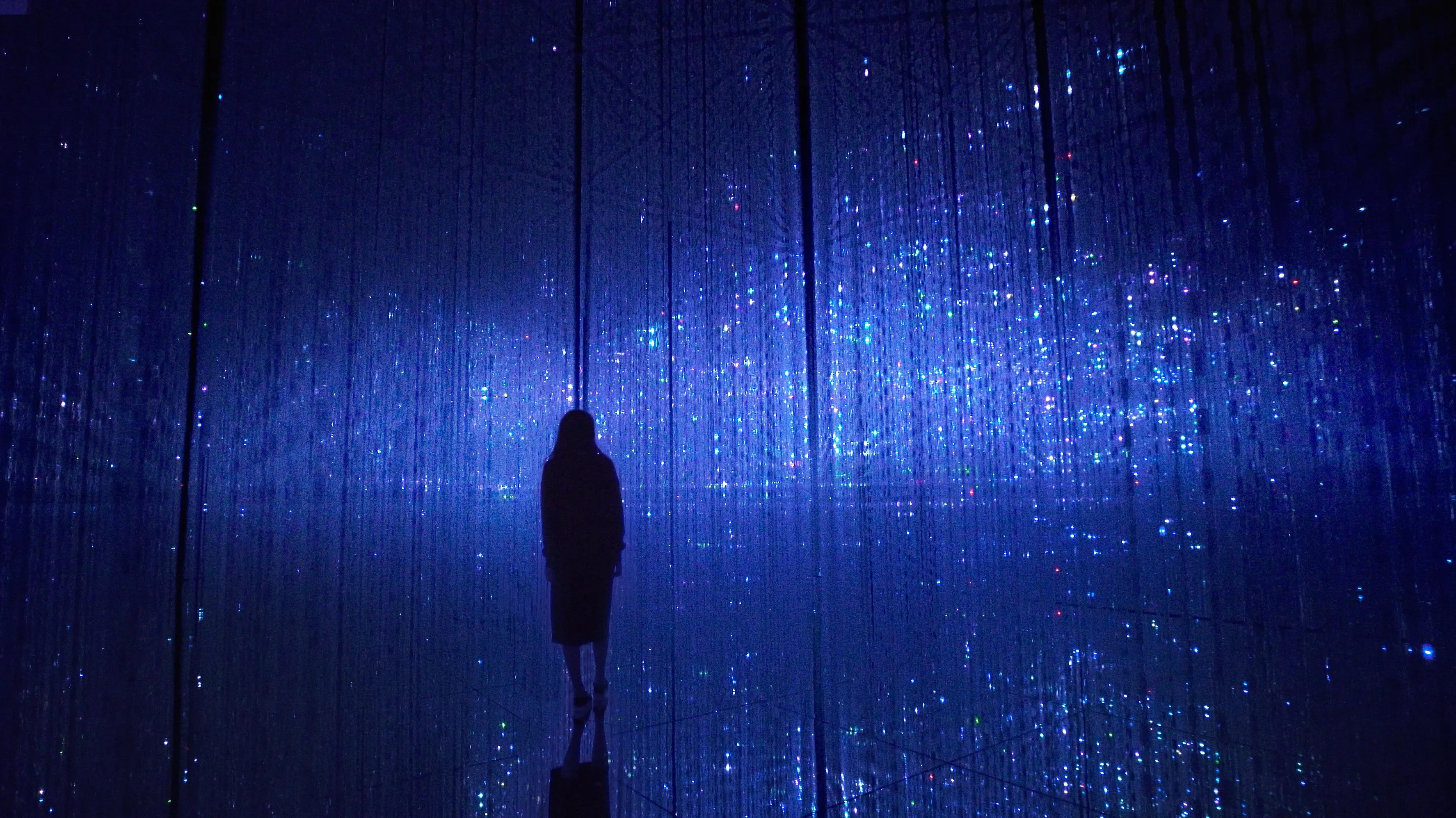 This work starts when the shoal of fish from The Way of the Sea enters the Crystal World space inside teamLab Borderless. The work ends when the shoal of fish leaves the space and disappears.