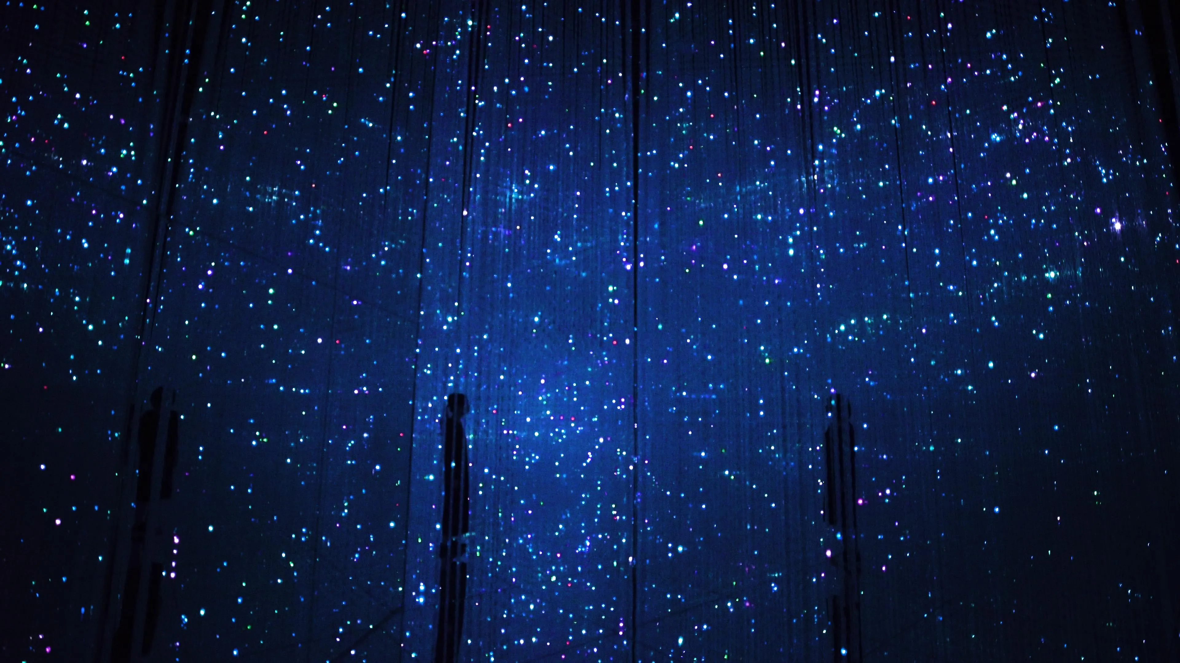 The artwork is not a pre-recorded image that is played back; it is created by a computer program that continuously renders the work in real time. The interaction between people and the installation causes continuous change in the artwork, so previous visual states can never be replicated, and will never reoccur. The picture at this moment can never be seen again.