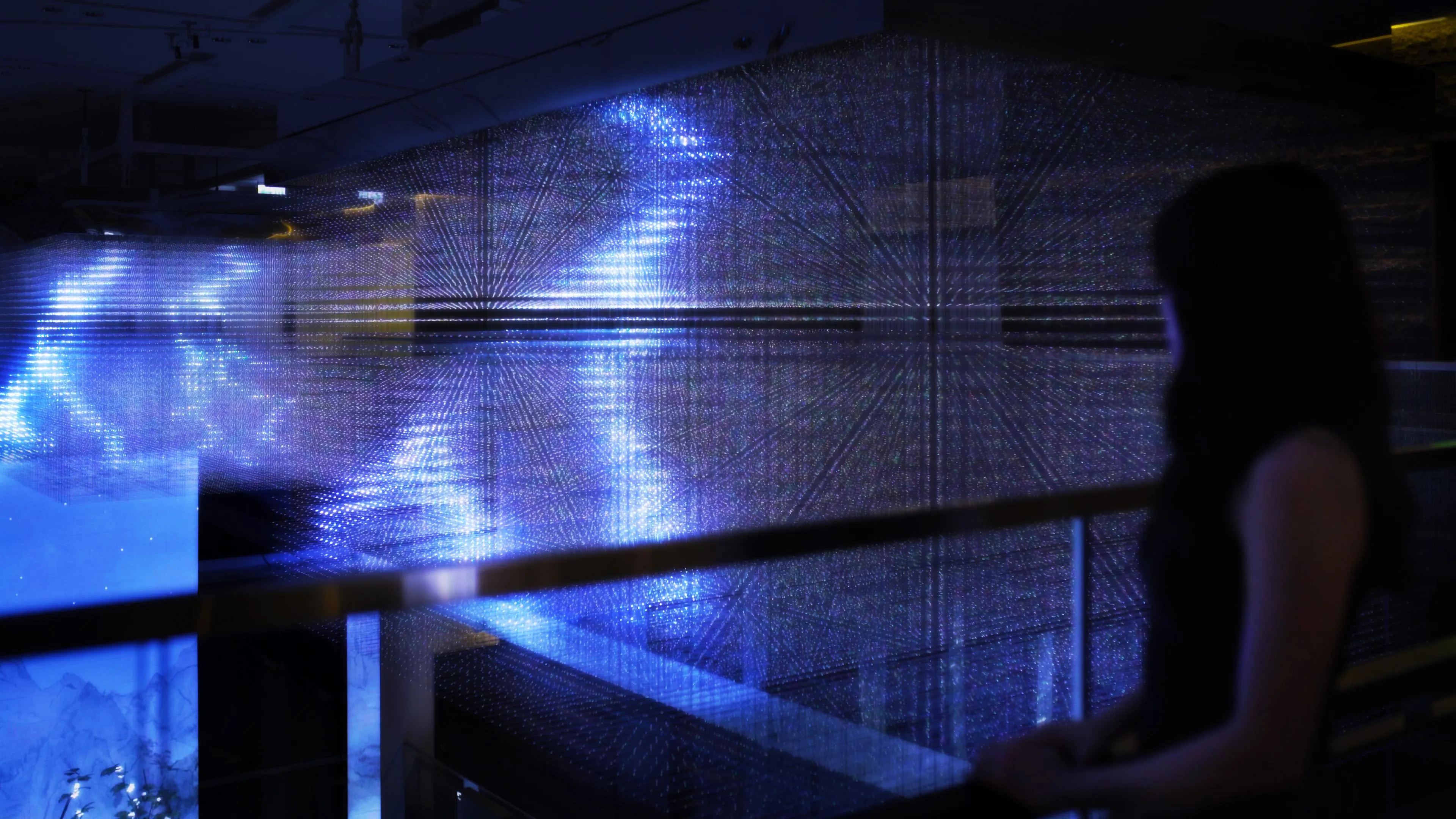 Neither a prerecorded animation nor on loop, the work is rendered in real time by a computer program. It continuously changes its appearance in line with the influence of external data such as viewer behavior, the time of day, seasons, temperature, weather, and various other parameters within the CTBC Financial Park, Taipei.