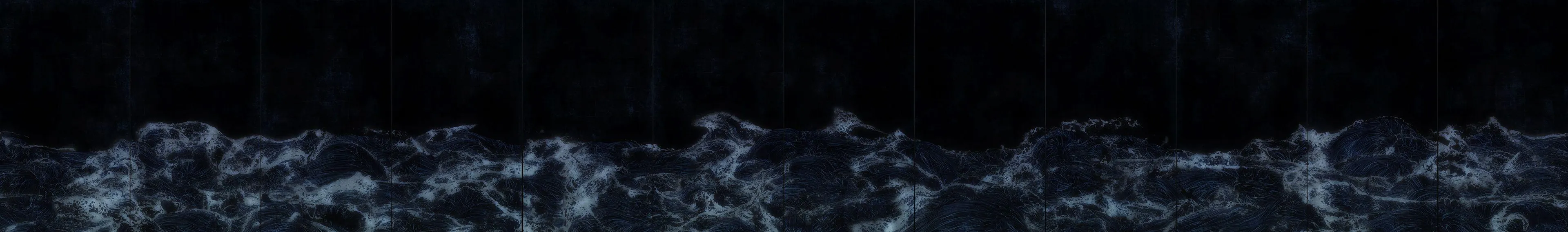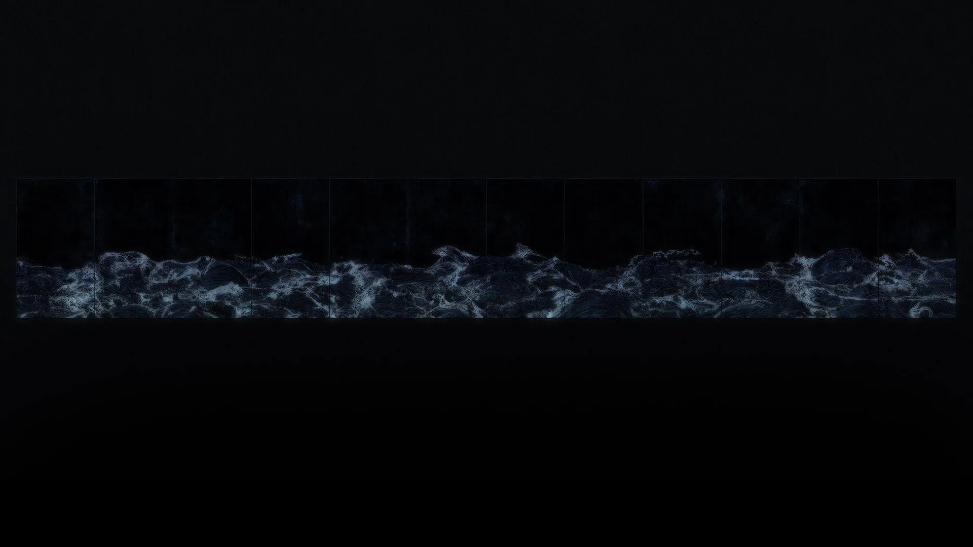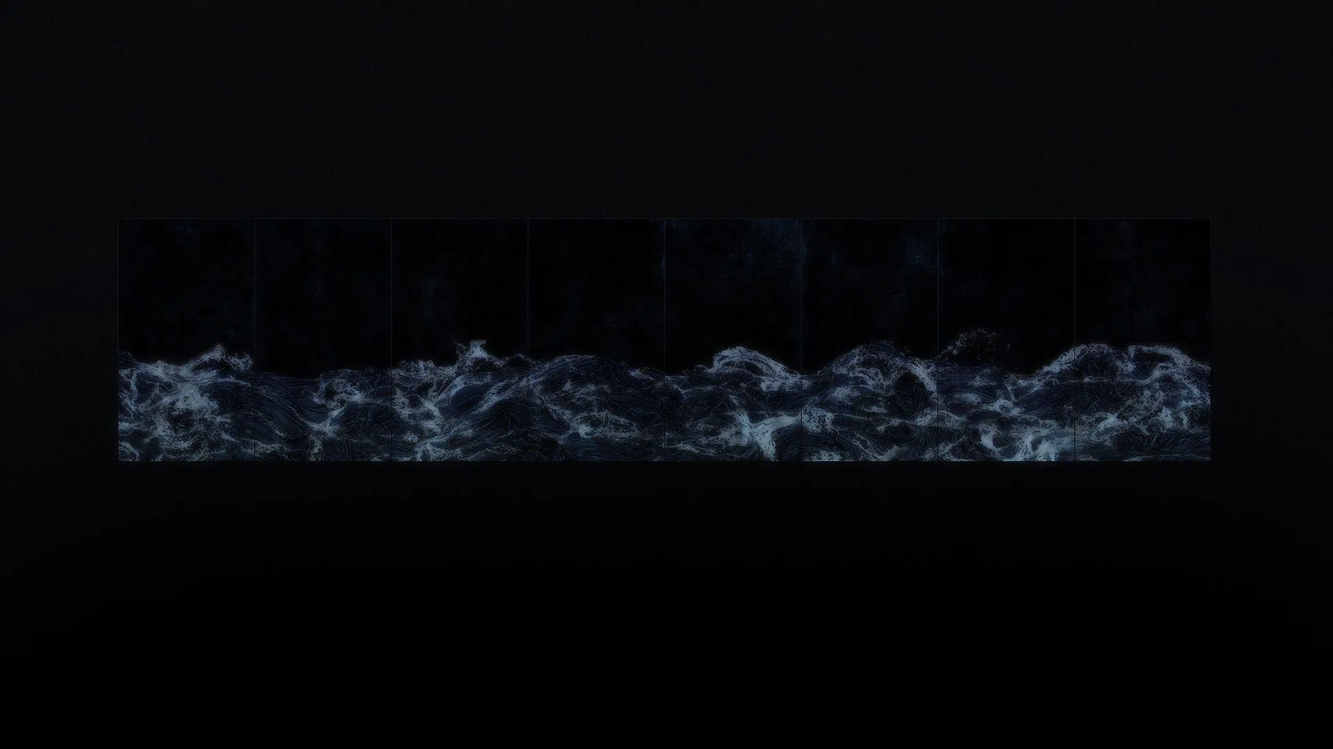 The waves are expressed through a continuous body of countless water particles. The interactions of particles are calculated, and then the movement of water is simulated in three-dimensional space. Lines are created along the trajectories of the water particles, and drawn on the surface layer of the three-dimensional waves.