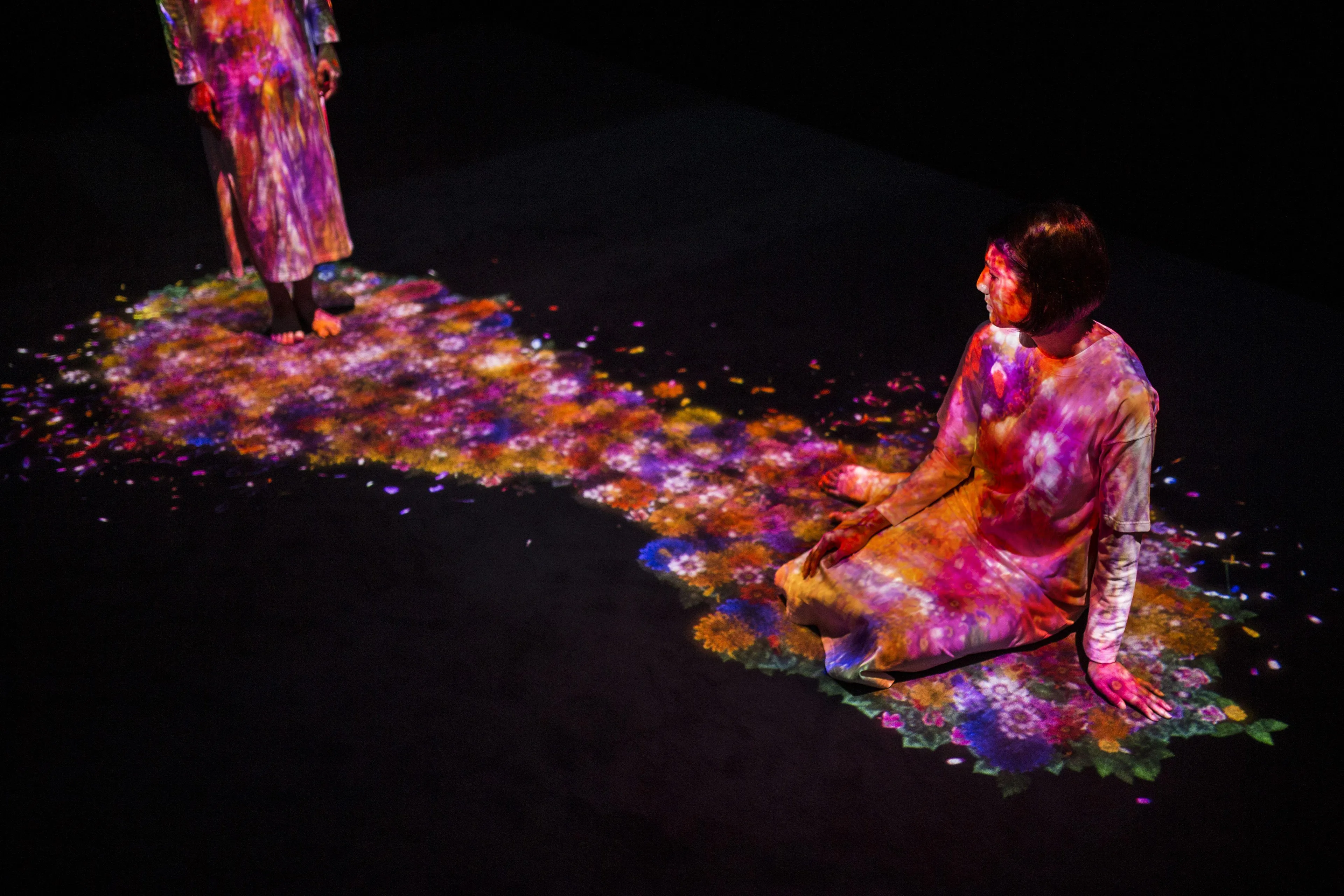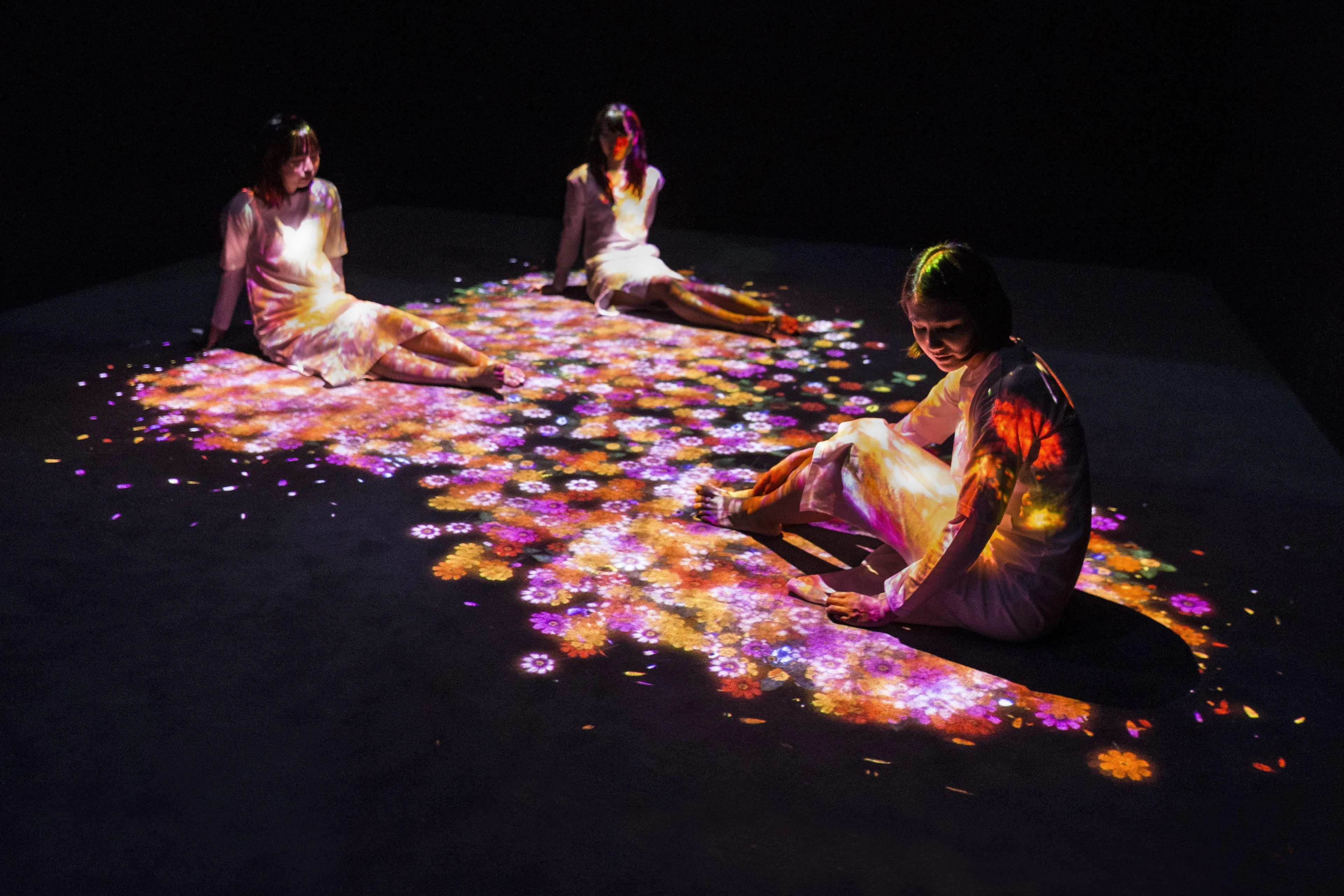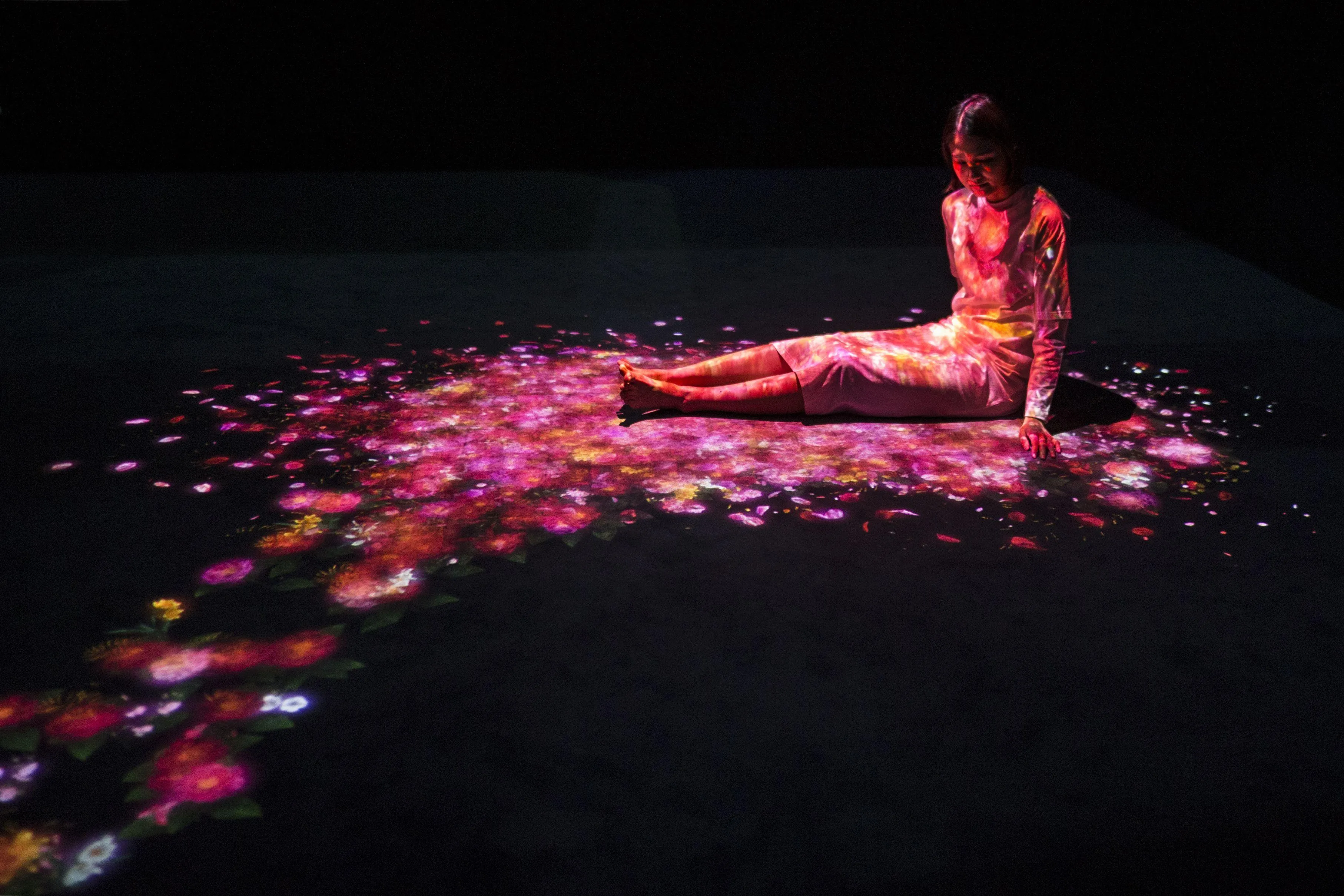 The flowers bud, grow, and blossom before their petals begin to wither, and eventually fade away. The cycle of growth and decay repeats itself in perpetuity. When people are still, more flowers are born and simultaneously bloom. When the viewer moves the flowers begin to wither, die and fade away.