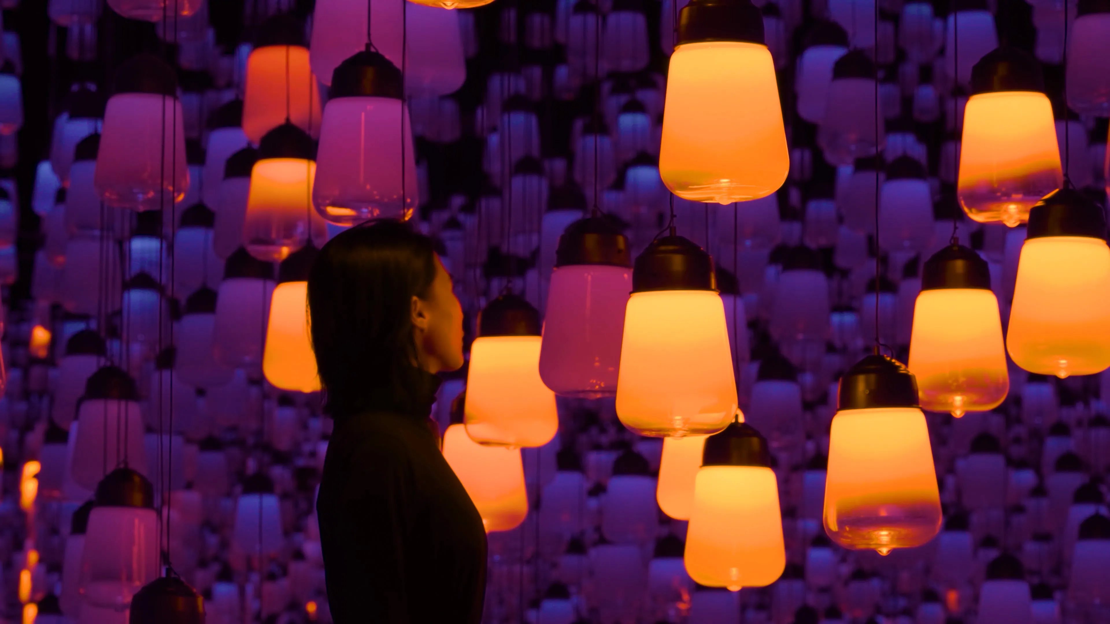This is an artwork about the continuity of light, which is generated as people move around freely and interact with the lamps.