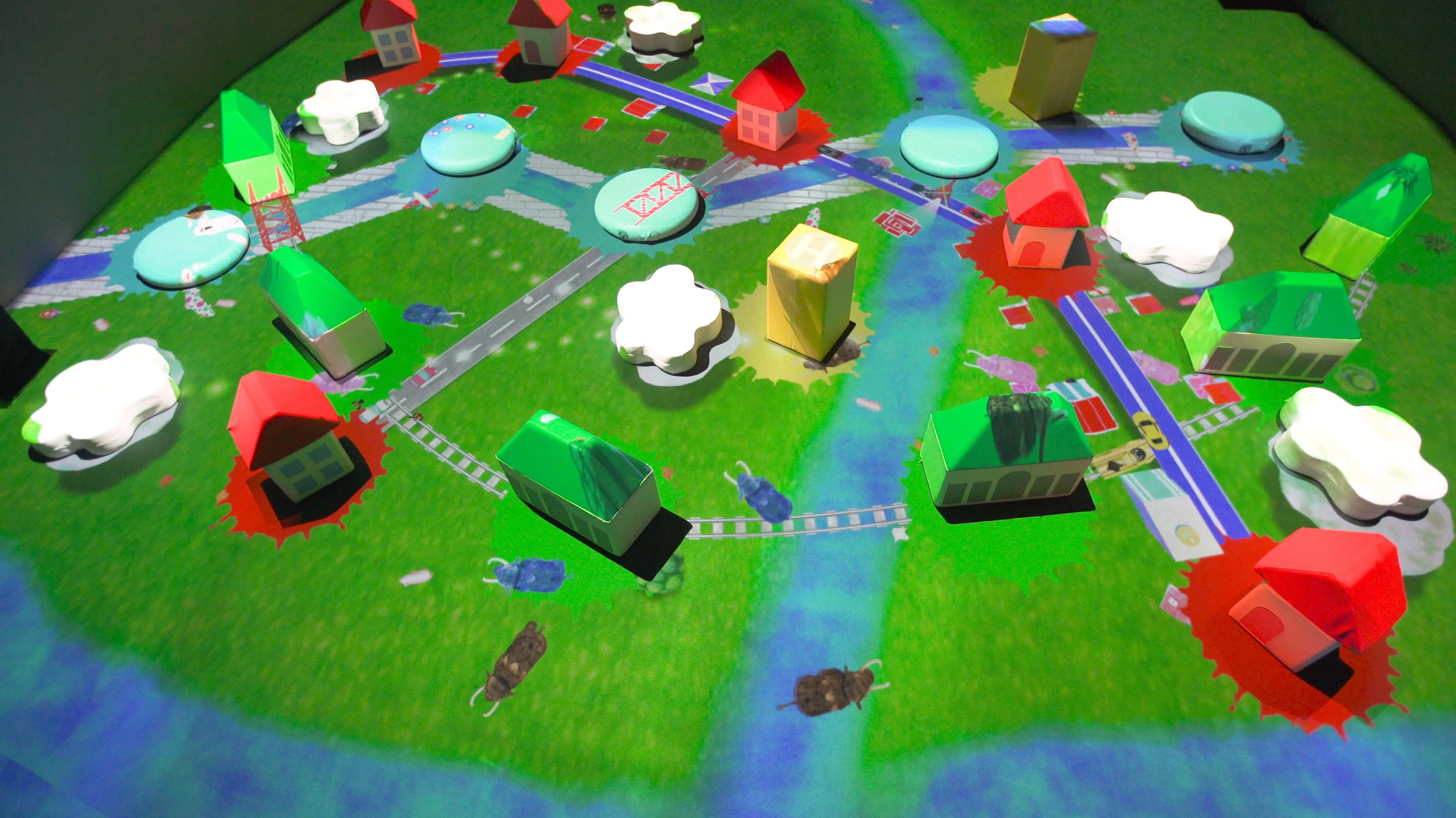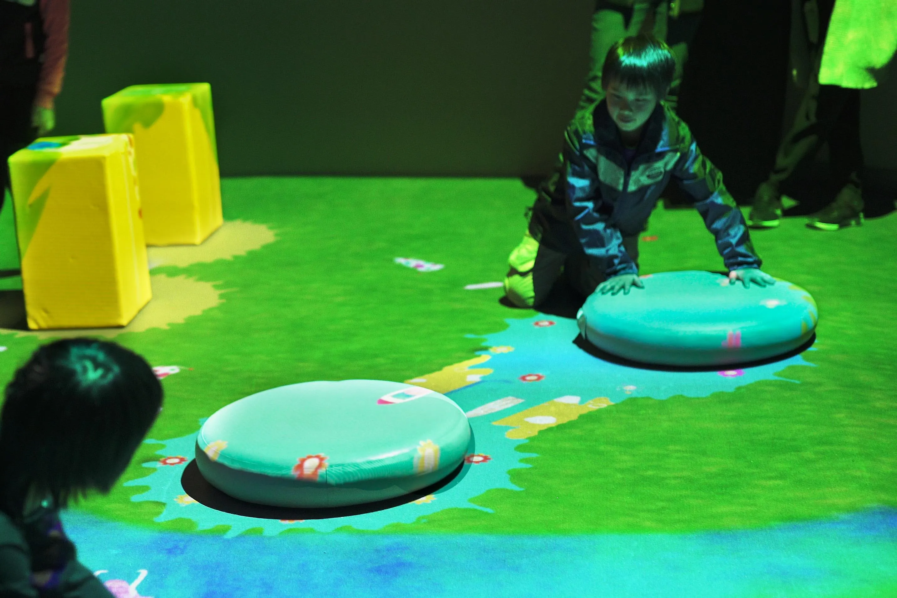 徳島市出身の猪子寿之代表率いるIT会社チームラボ(東京)が制作したデジタルアート「巨大!つながるブロックのまち」の展示が16日、海陽町宍喰浦の「町海洋自然博物館マリンジャム」で始まり、家族連れらが映像技術を駆使した作品を楽しんだ。来年1月31日まで。(Excerpt from the text)