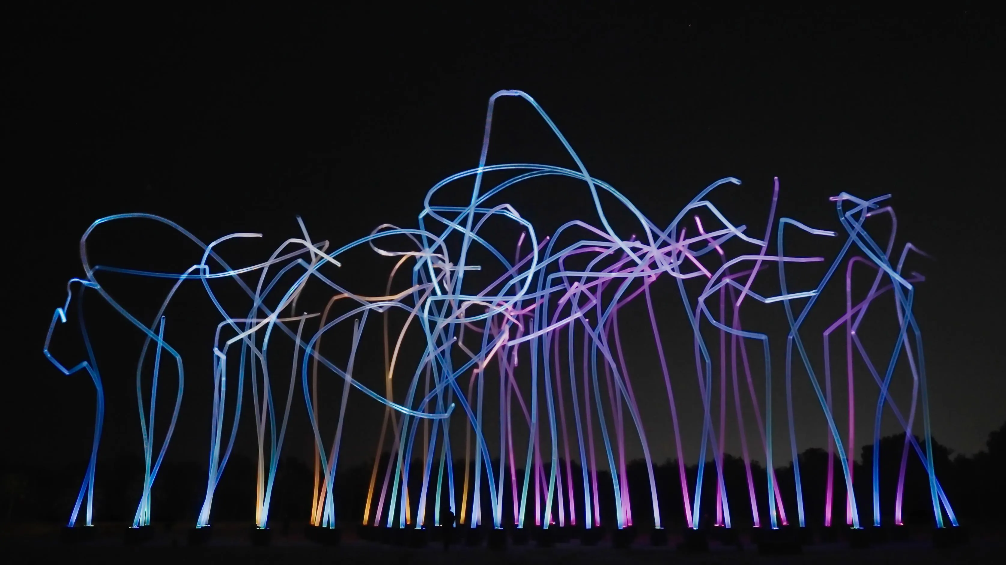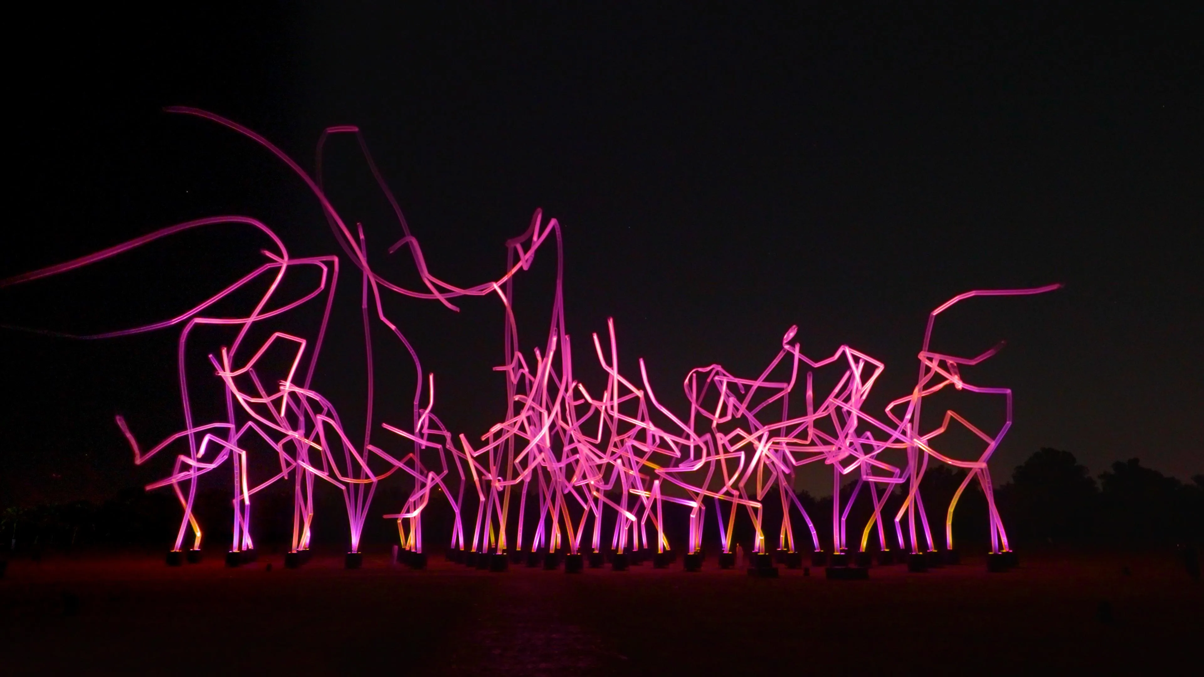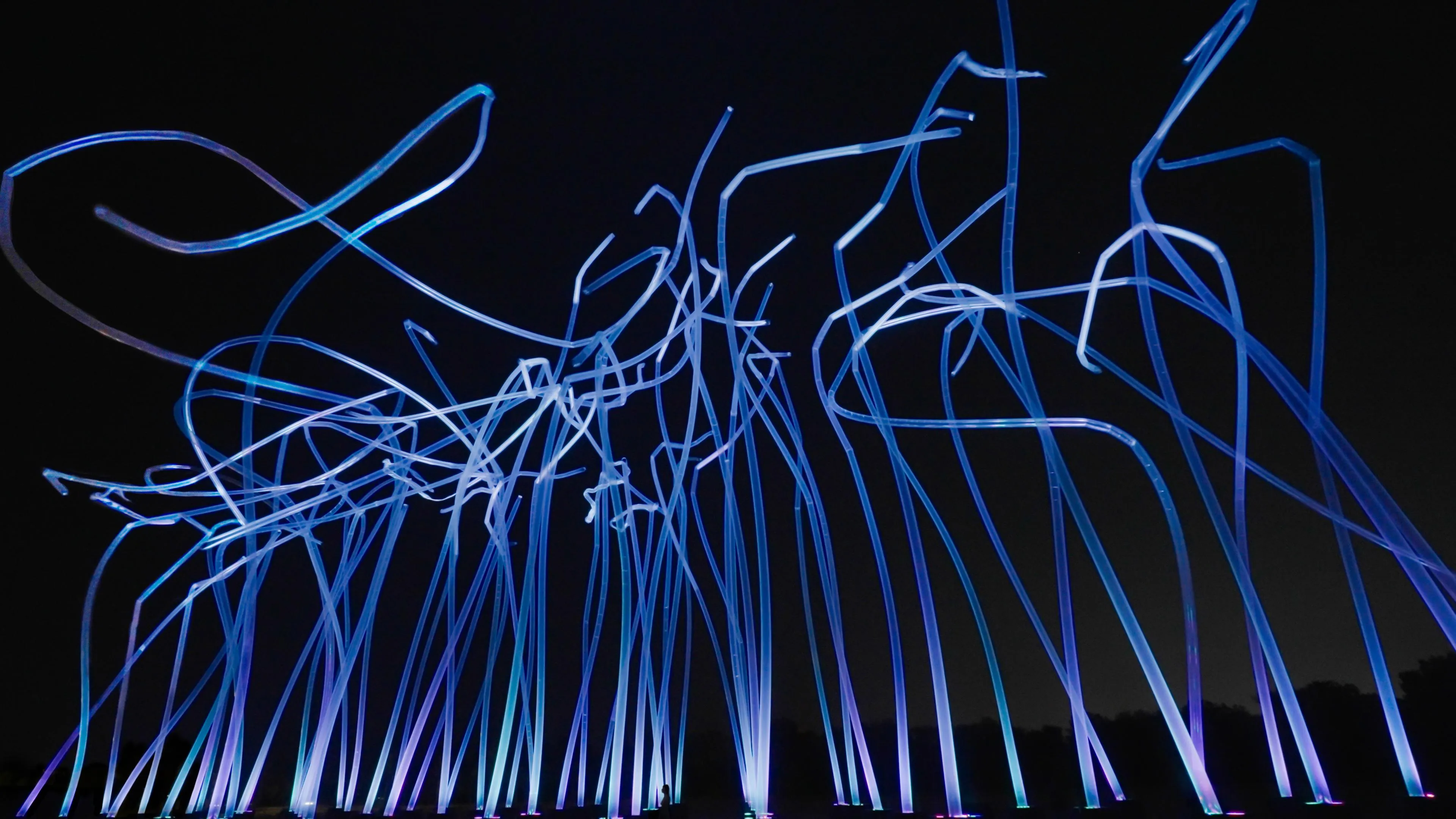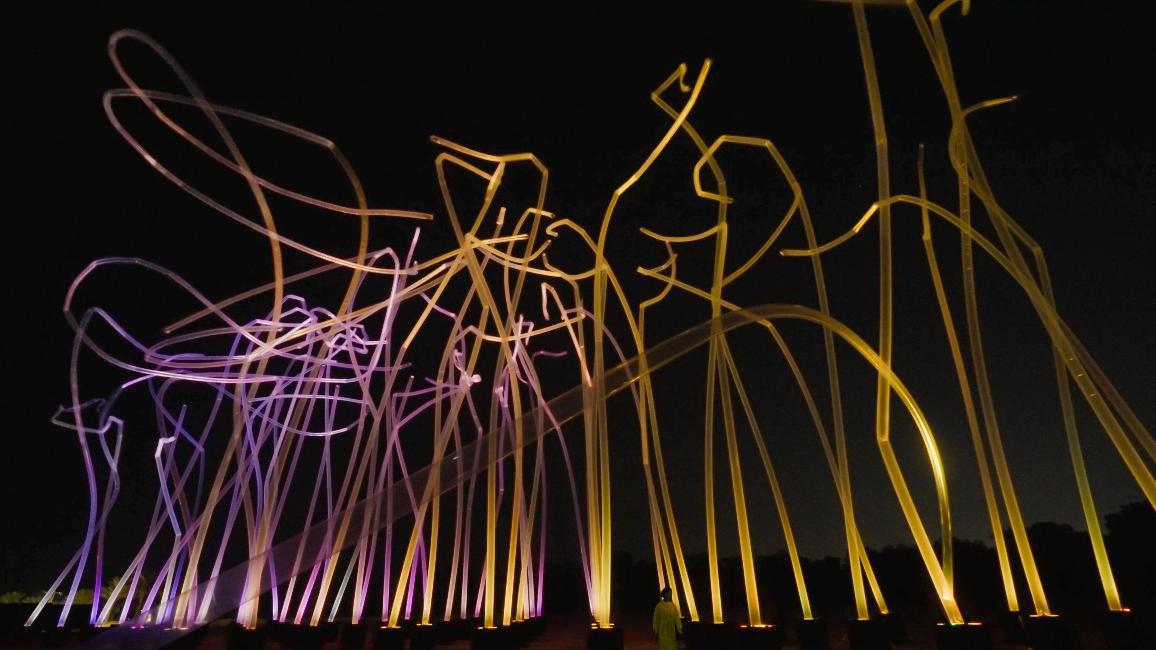 The artwork is strongly influenced by its environment, including wind, rain, and humidity. The number, movement, and height of the pillars changes significantly.