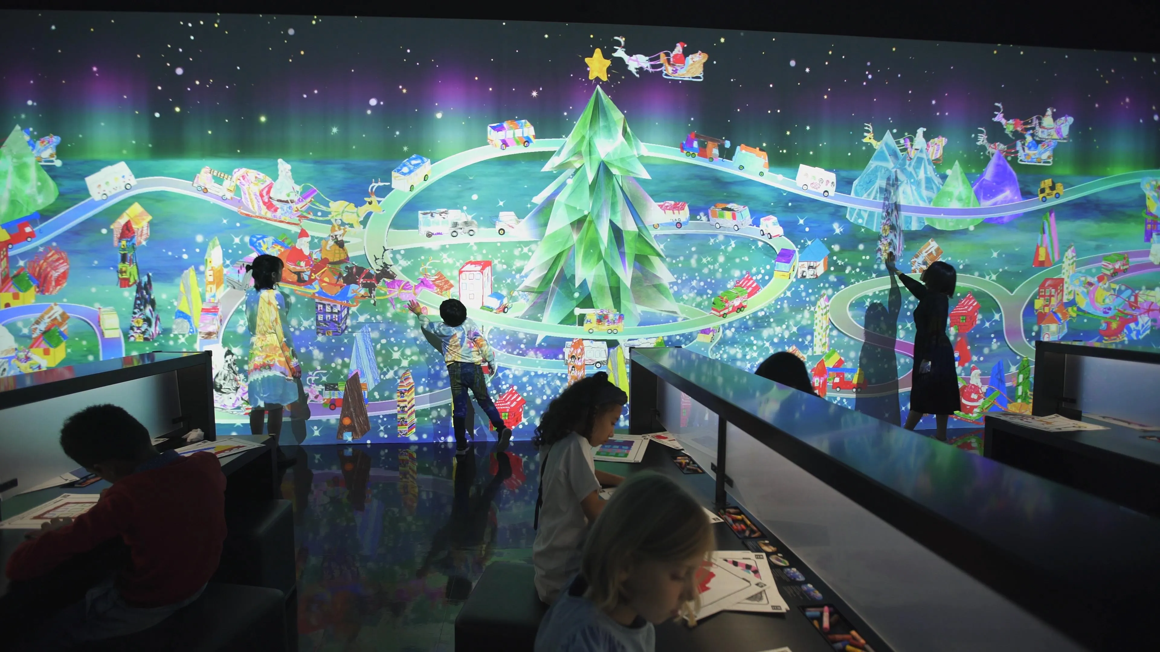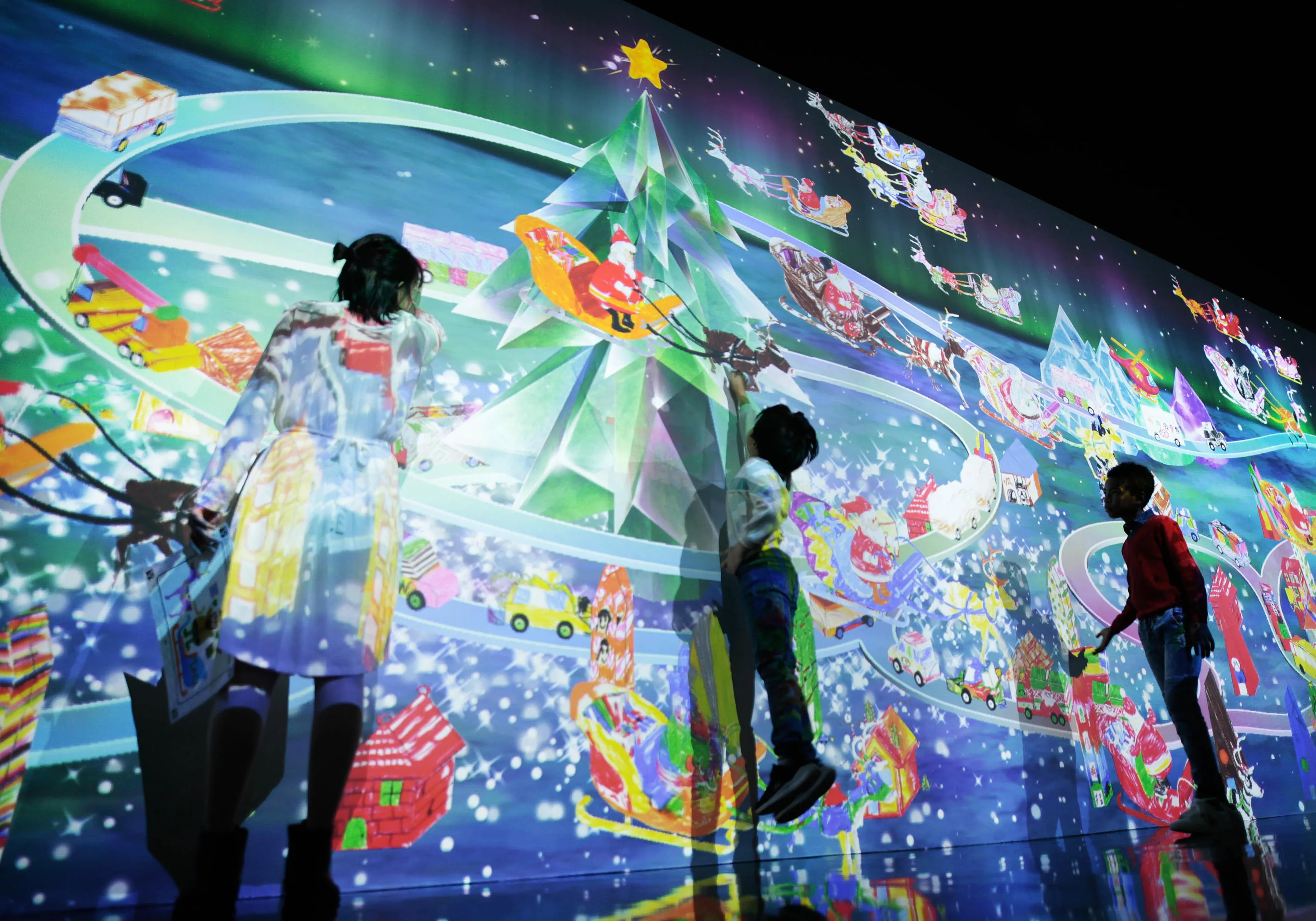 Touch the objects in the town to see them change their behavior. When you touch Santa Claus, he will deliver presents.