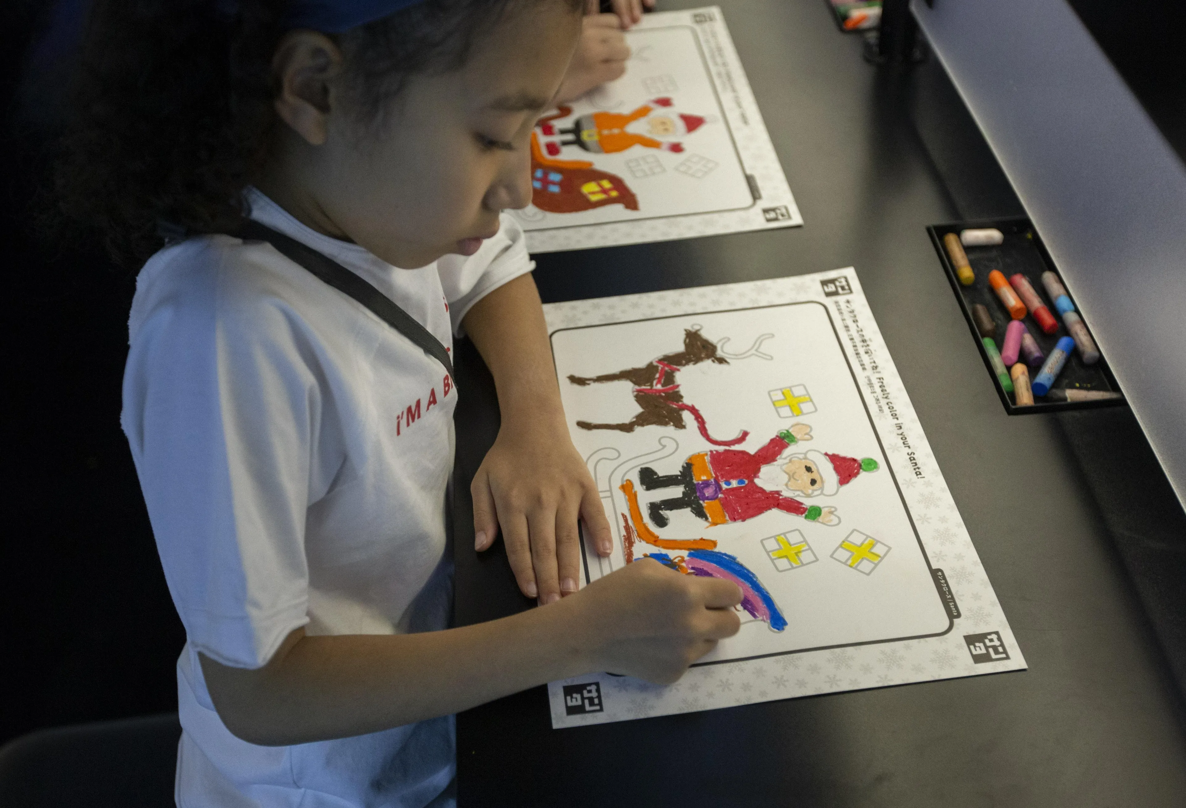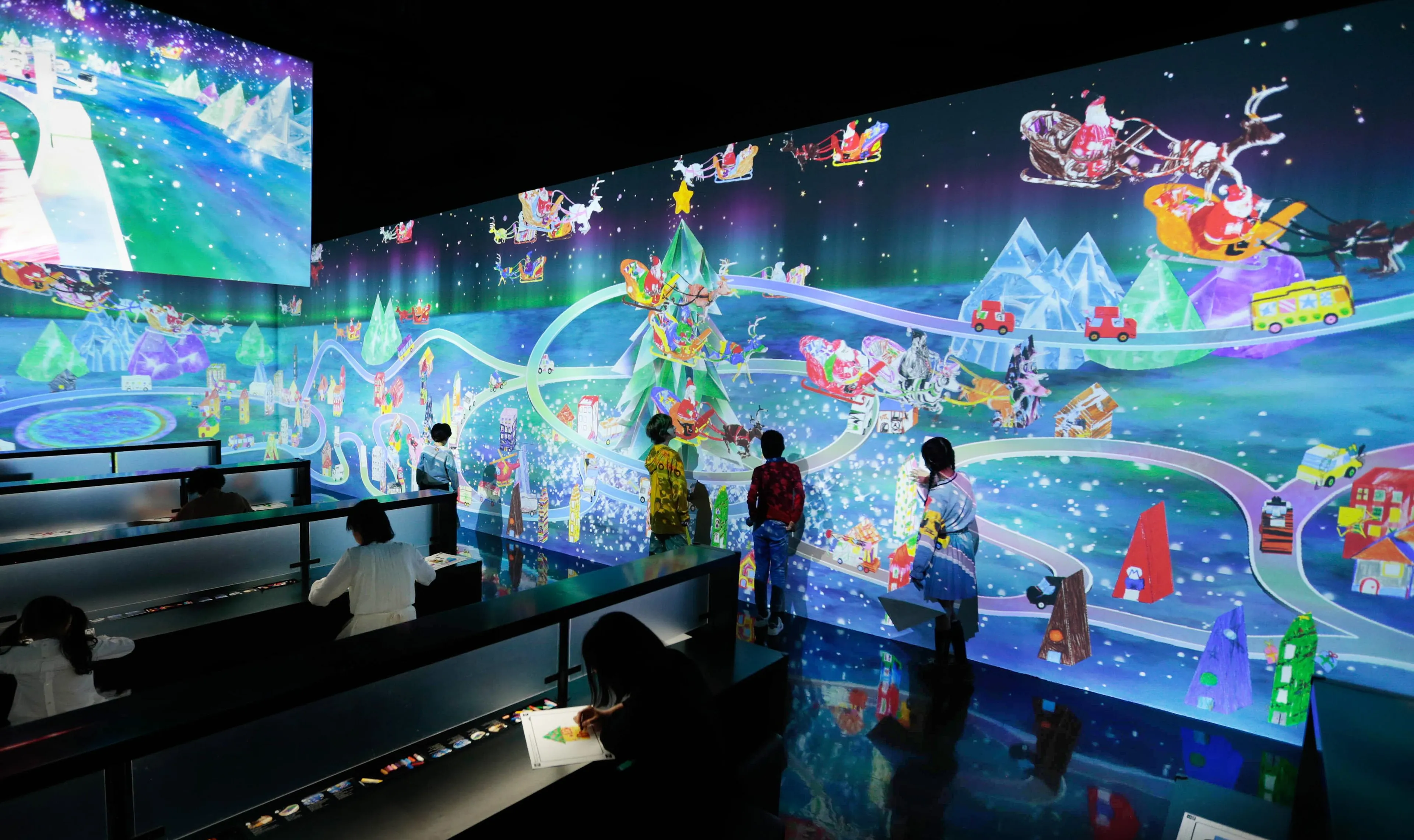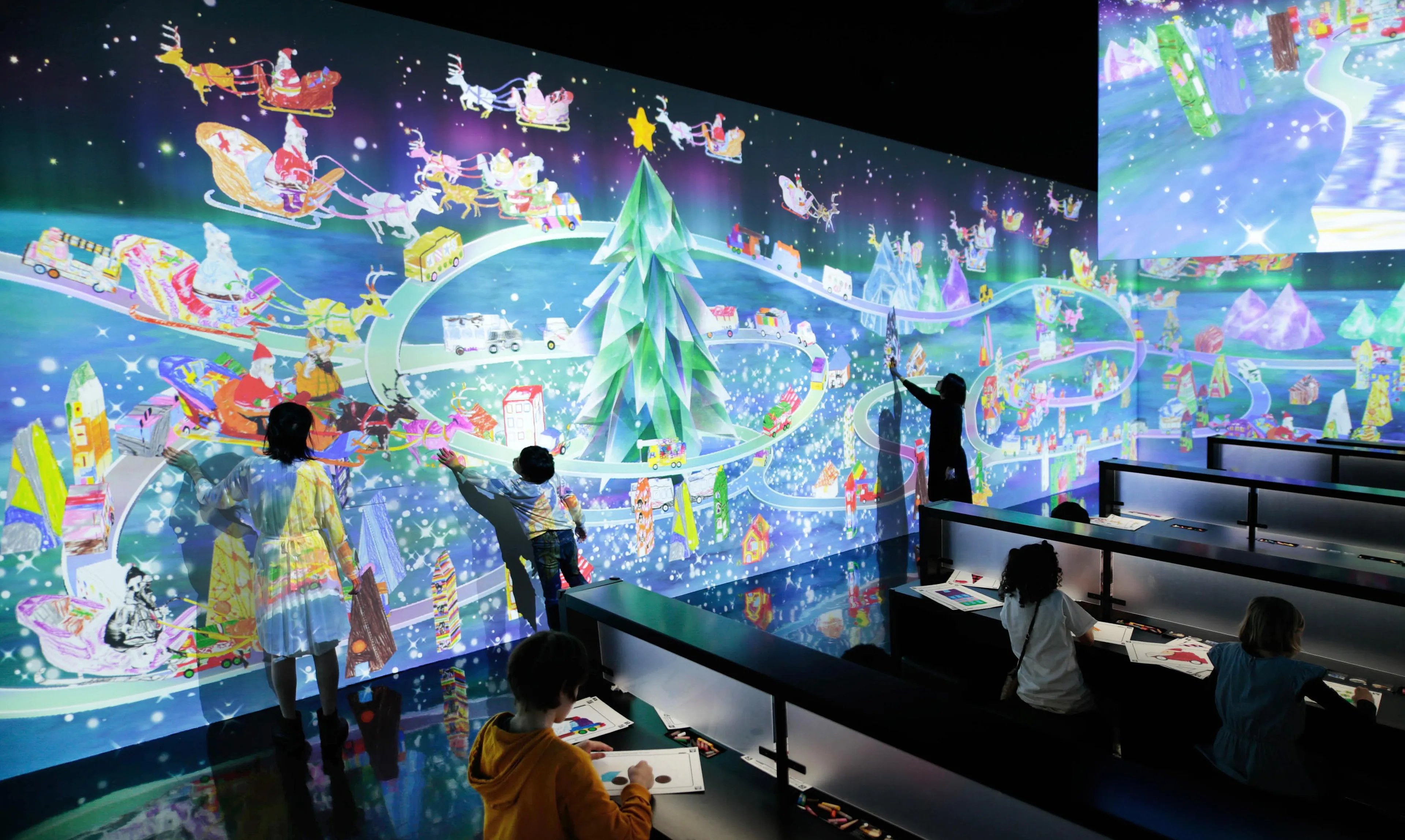 Children can also draw other parts of the town that Santa Claus will come to visit, such as, cars, buildings etc. The Christmas town that is created depends on what pictures the children choose to draw. Each childs picture enters into the town along with the pictures drawn by other children, and the drawings move around and come to life in the town. Children can also decorate the town itself too. As the different pictures enter the town, different scenes evolve. You can also enjoy interacting with the pictures: touch a car, for instance, and it will speed up!