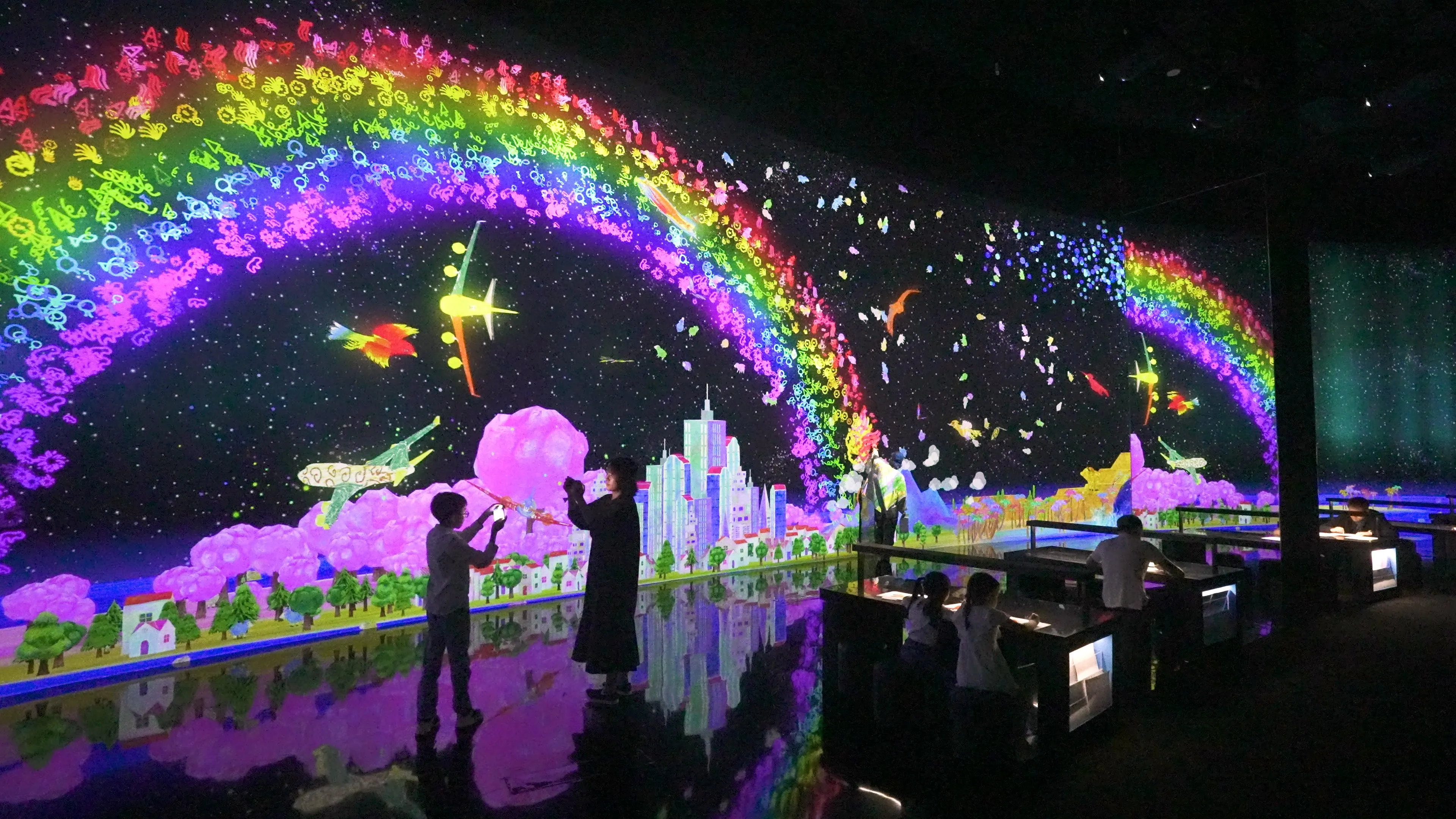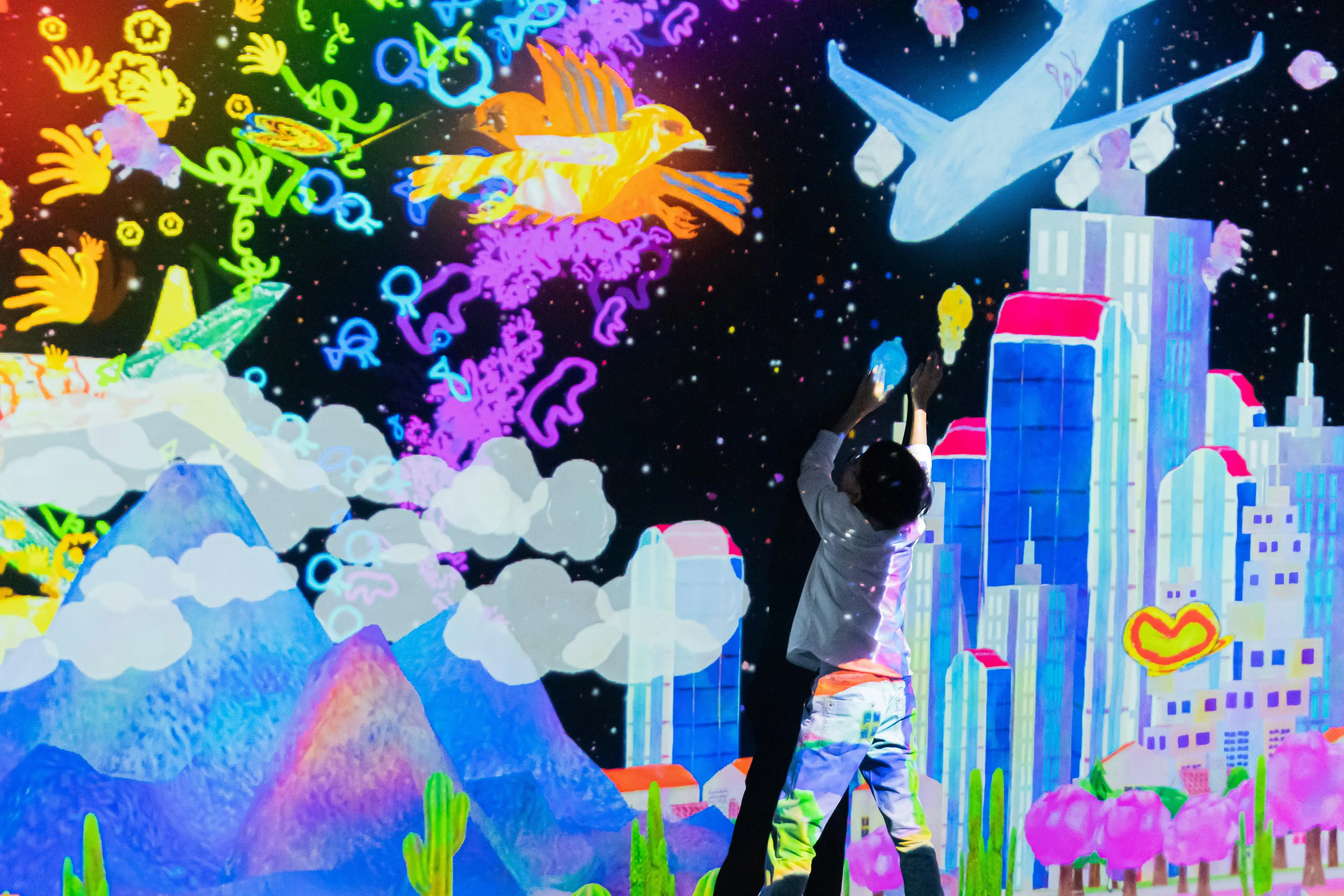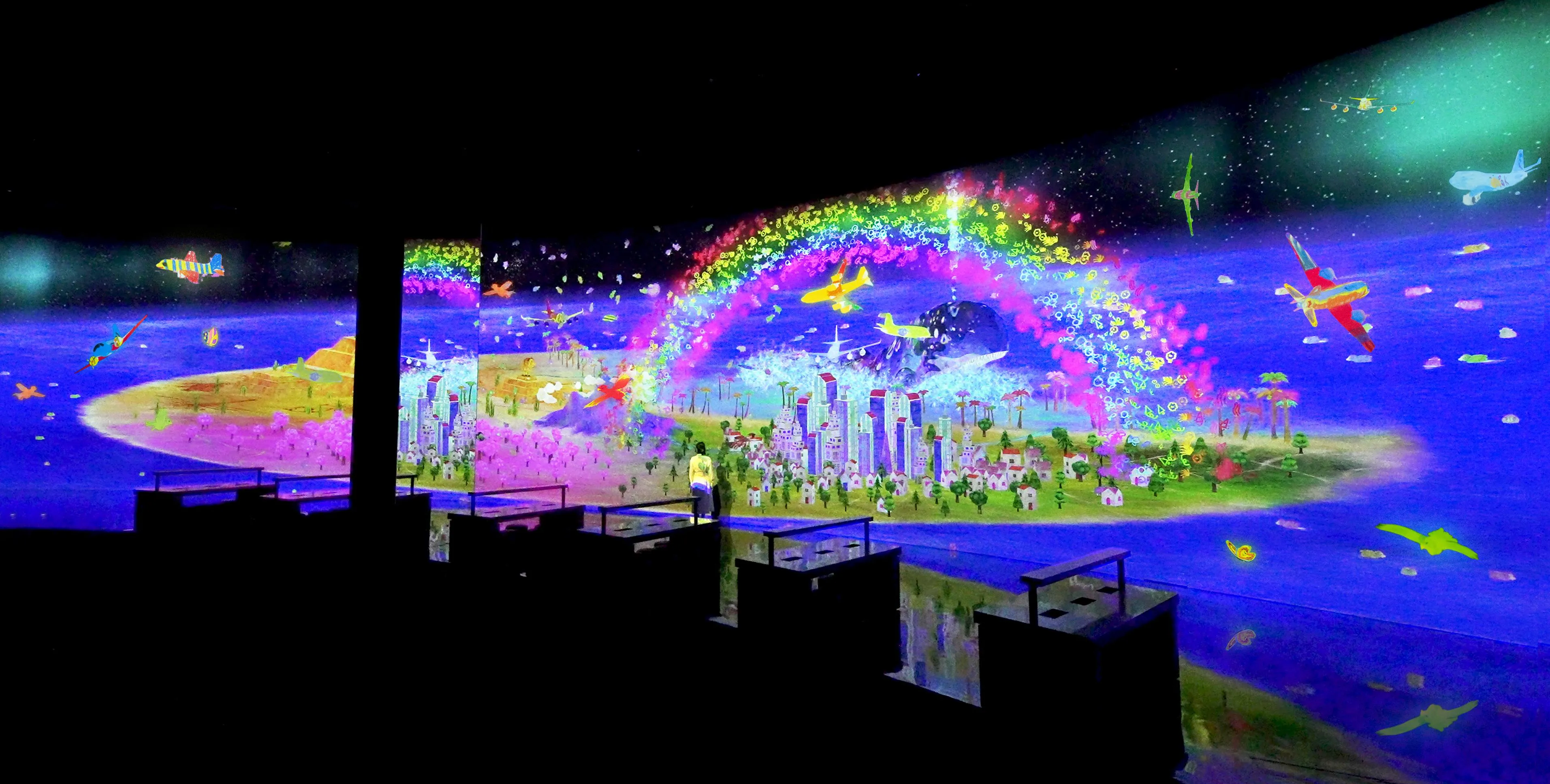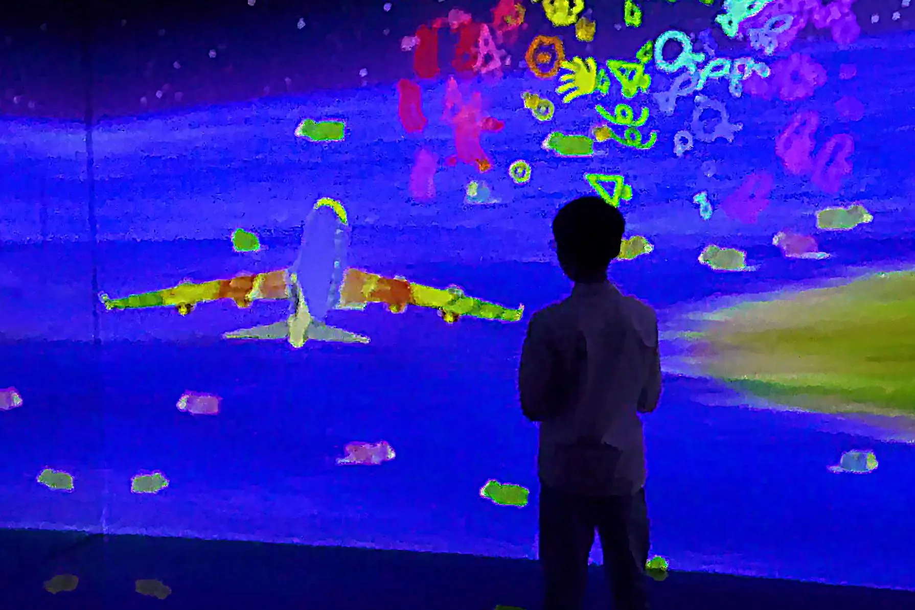 Color in an airplane, butterfly, or hawk on the paper provided and see the picture you have drawn appear three-dimensionally, flying through the world in front of you. If you touch them, they speed up or fly away.