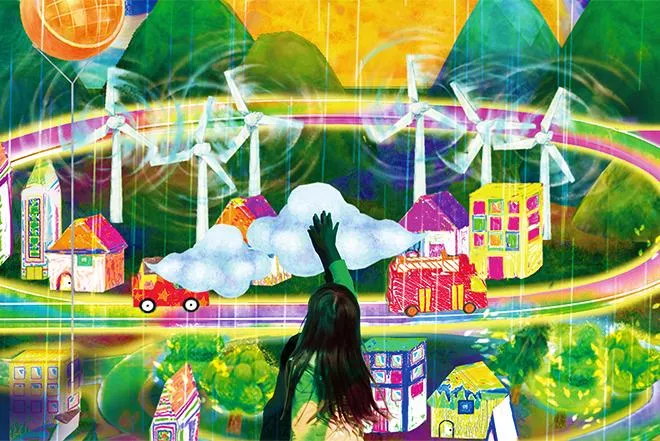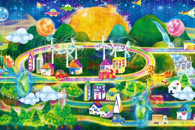 那賀町吉野に先月、県の「川口ダム自然エネルギーミュージアム」が開館した。訪れた人が描く絵で作られるデジタルアート「お絵かきスマートタウン」を展示。太陽光や風力、水力などの自然エネルギーが、街の中で働くイメージを映像で表し、発電に興味を持ってもらう仕掛けだ。(本文抜粋)