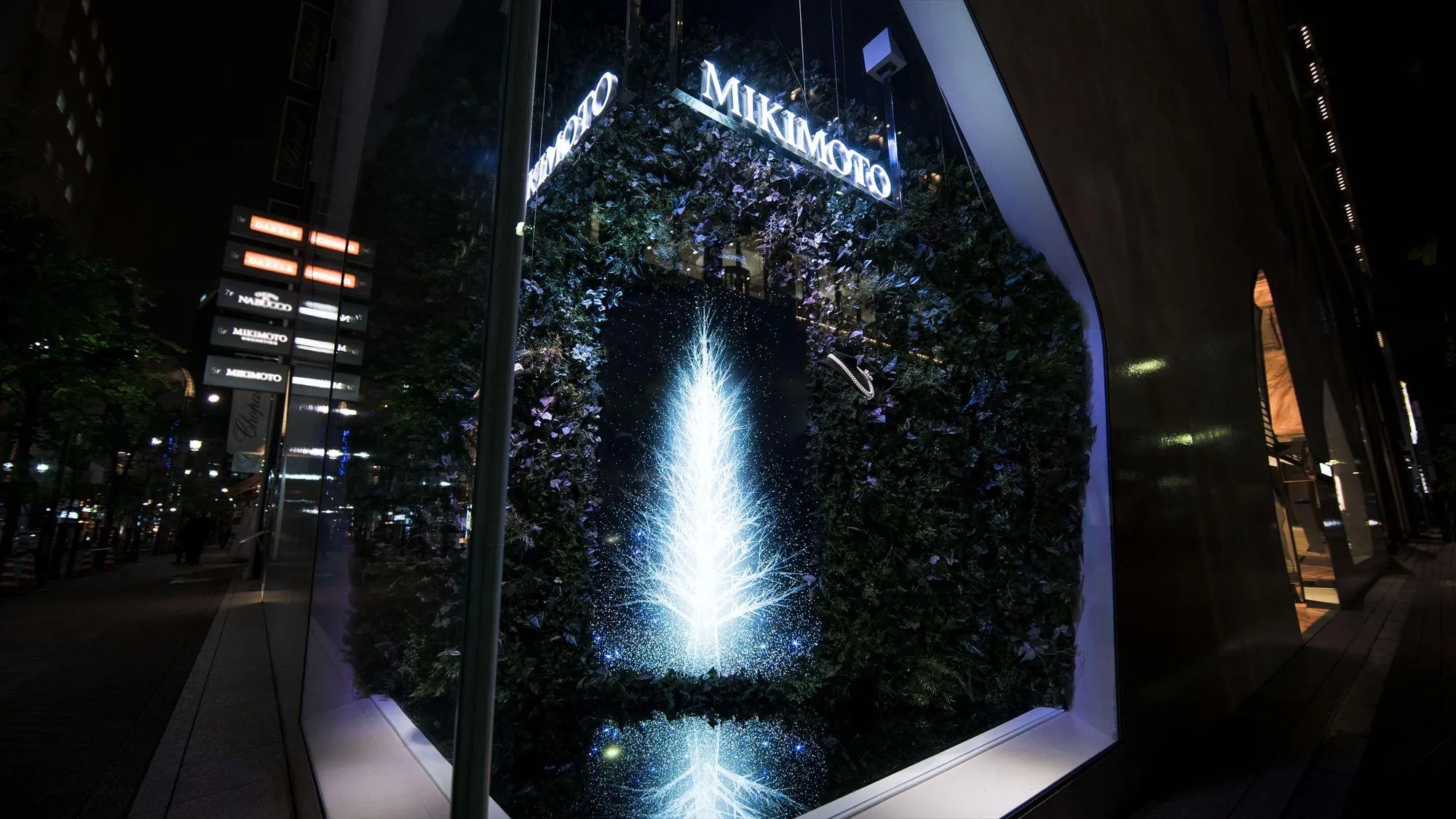 ミキモト銀座とチームラボがコラボしたツリー Sparkling Dream Tree がクリスマスまでの期間楽しめる株式会社ミキモトは2016年11月11日(金)から12月25日(日)まで、ミキモト銀座2丁目本店のショーウィンドウにおいて、人が近づくと輝く木が「光の珠(たま)」となって散らばっていくインタラクティブ作品を展示しています。