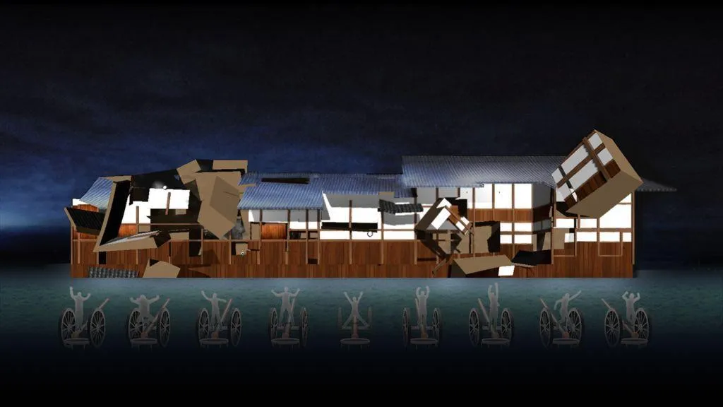 These precise, full-size reconstructions of Saga cannons are based on the plans from that time. They enable us to transform the appearance of the projected object with cannon fire that is controlled by participants jumping on trampoline devices installed on the cannons.