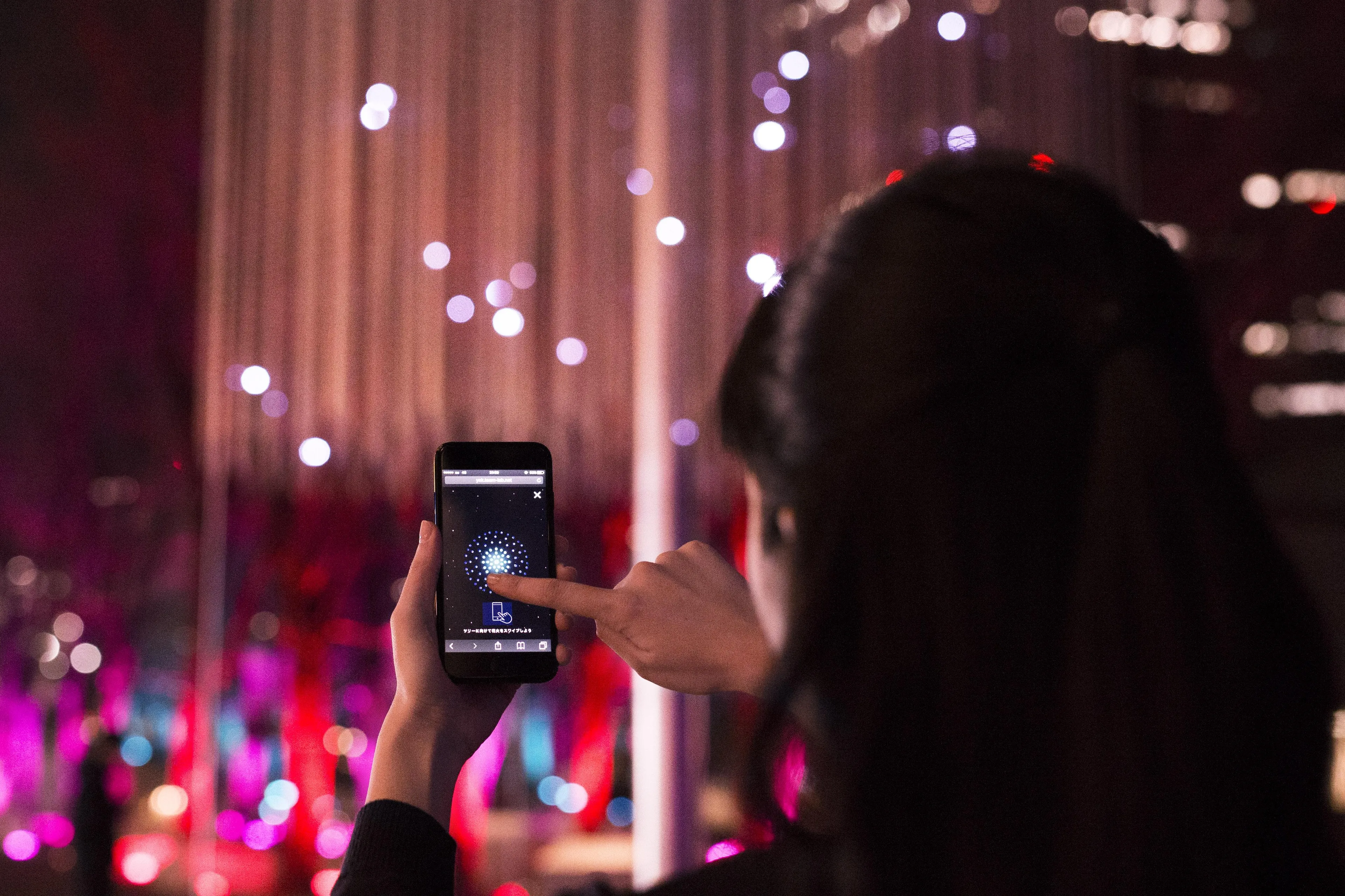 Access the Crystal Fireworks page with your smart phone or tablet at lightning time in Grand Mall Park.