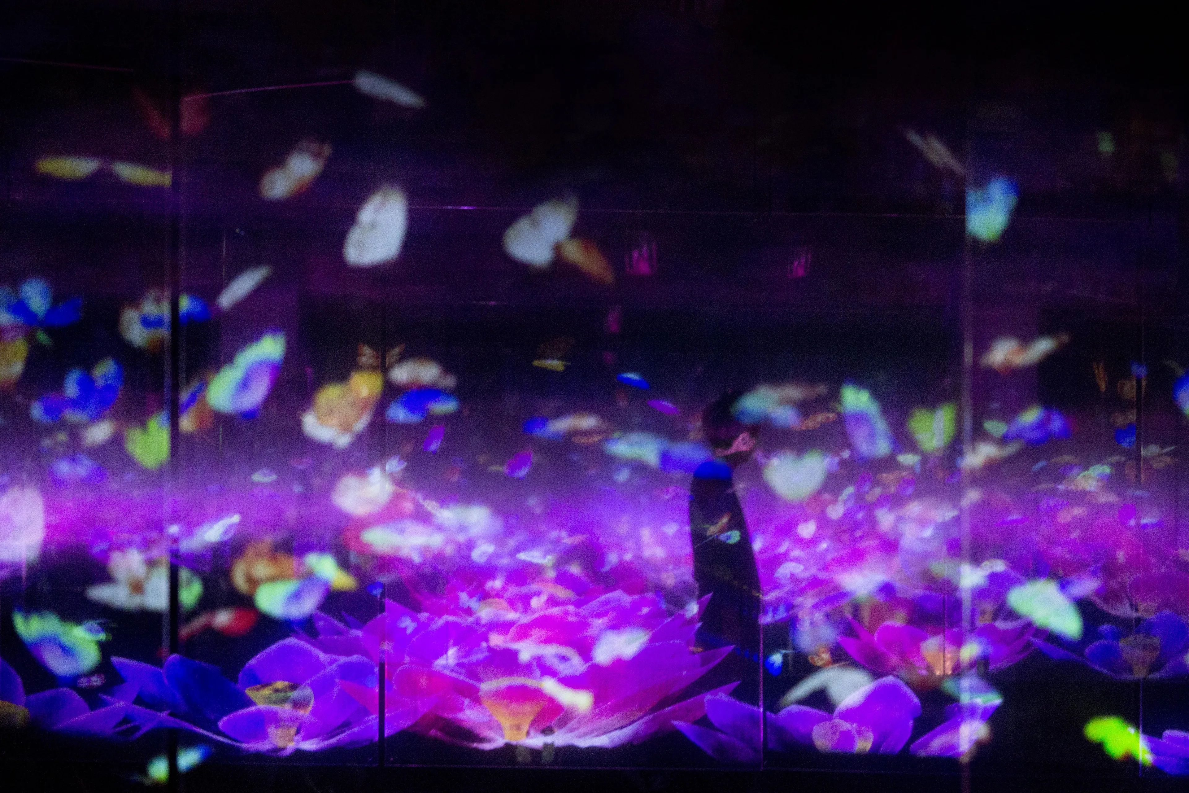 When a visitor passes a screen and becomes immersed in the flutter of butterflies, from another person’s viewpoint that person appears to be in the same relative position as the flutter of butterflies, both in the artwork and exhibition space. For the viewer that person has become a part of the artwork. In other words, when visitors are seen through the screen by others, they become a part of the artwork not only in the exhibition space but also in the artwork world.