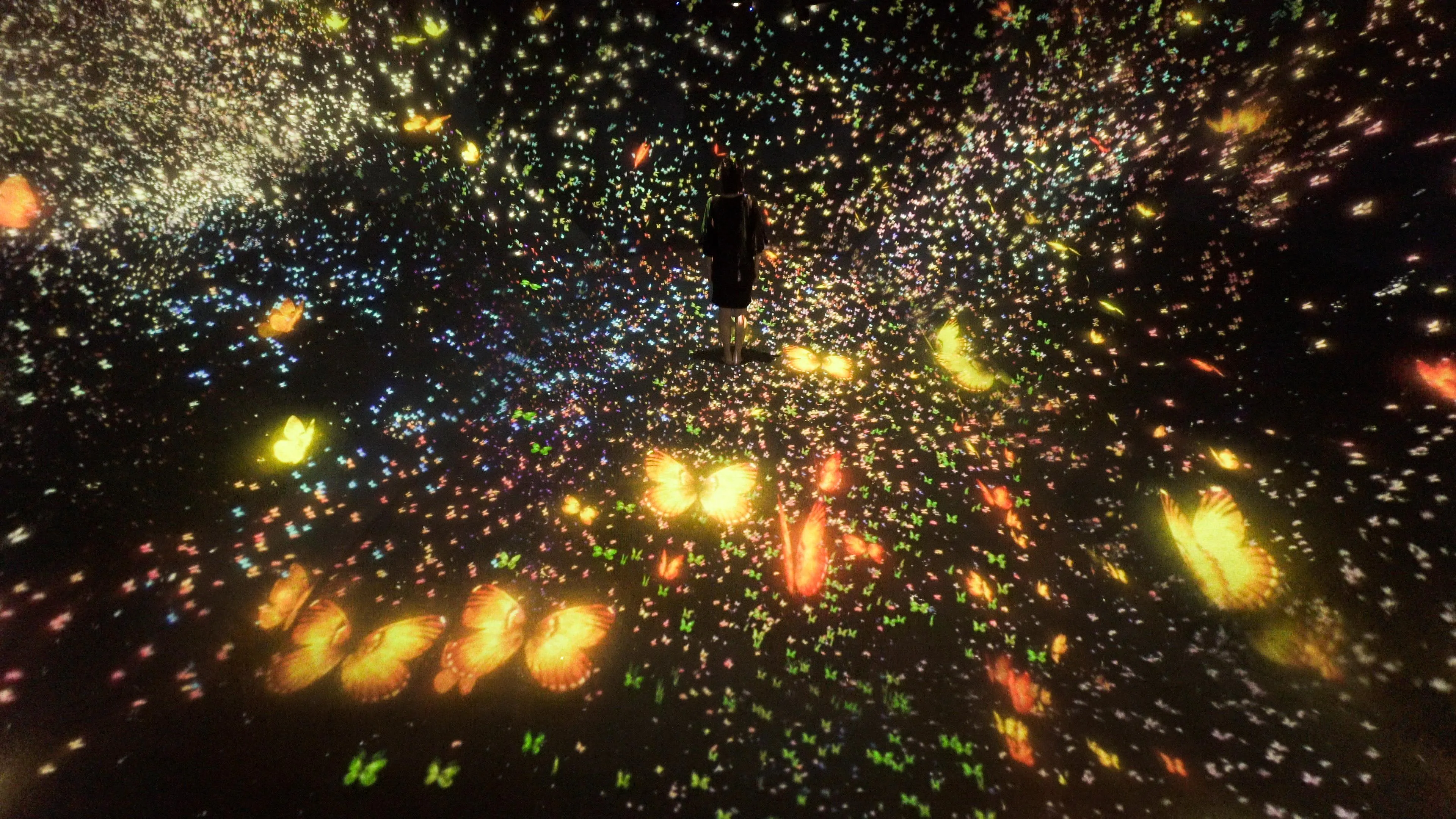 The butterflies are born from people’s touch in the Butterfly House as part of the Flutter of Butterflies Beyond Borders, Ephemeral Life. They transcend the notion of frames, removing the boundaries between artwork spaces as they seamlessly fly through works.
