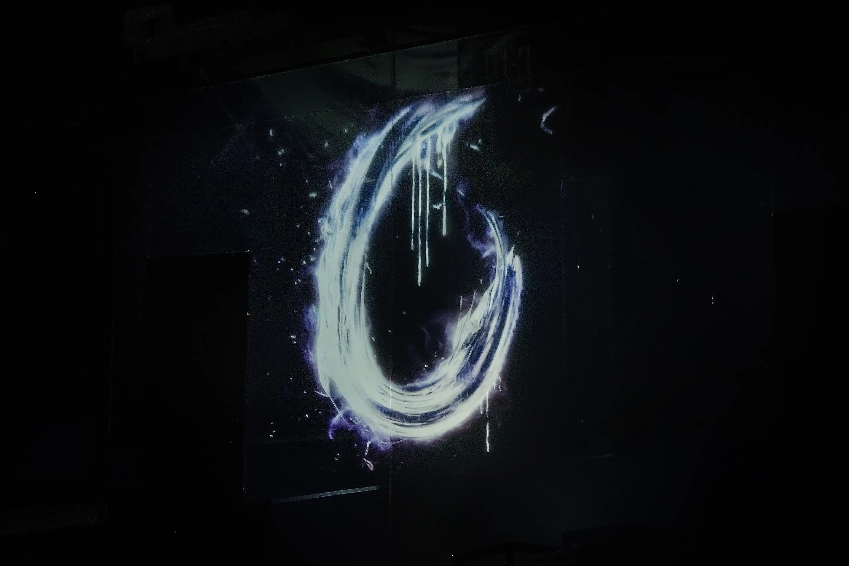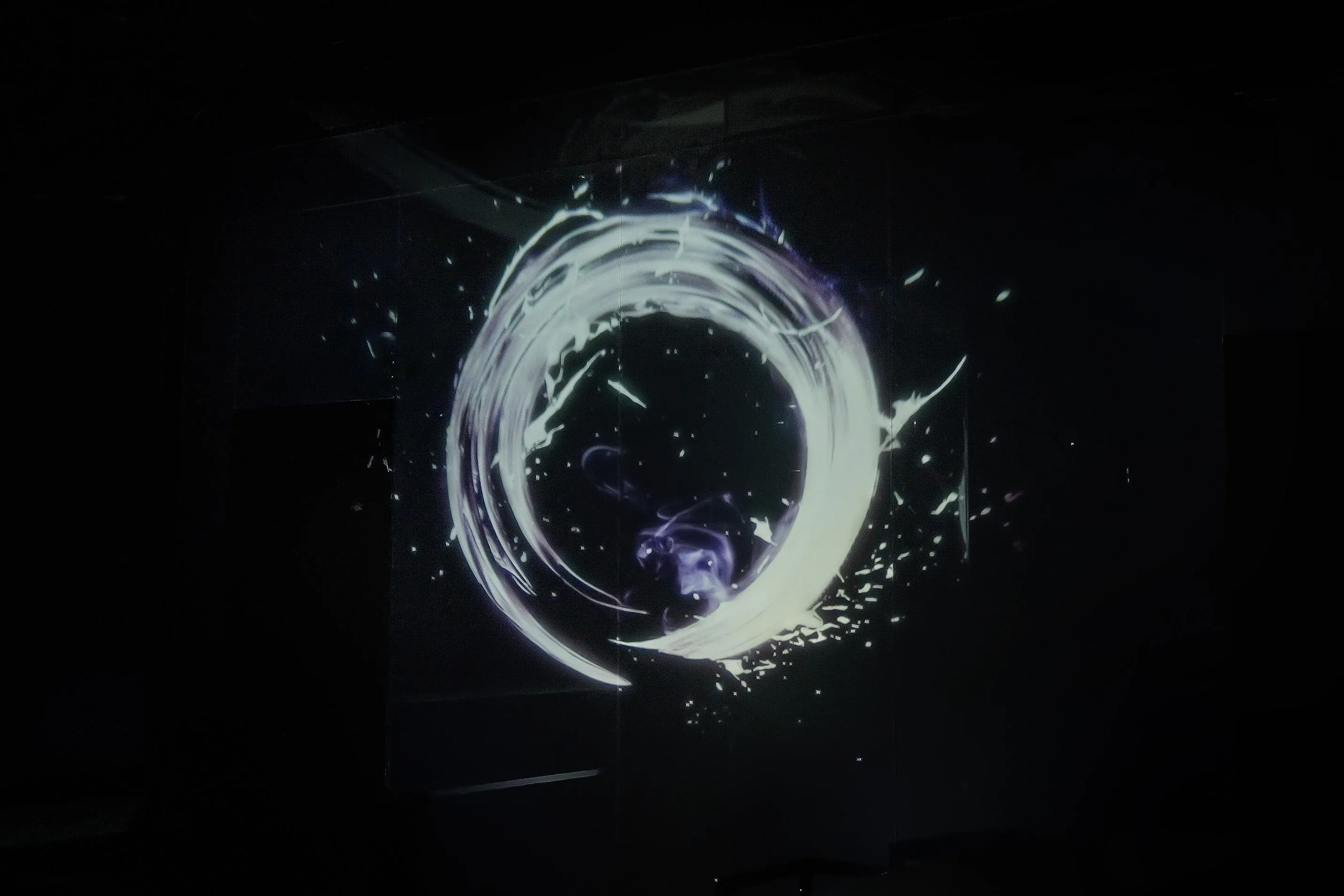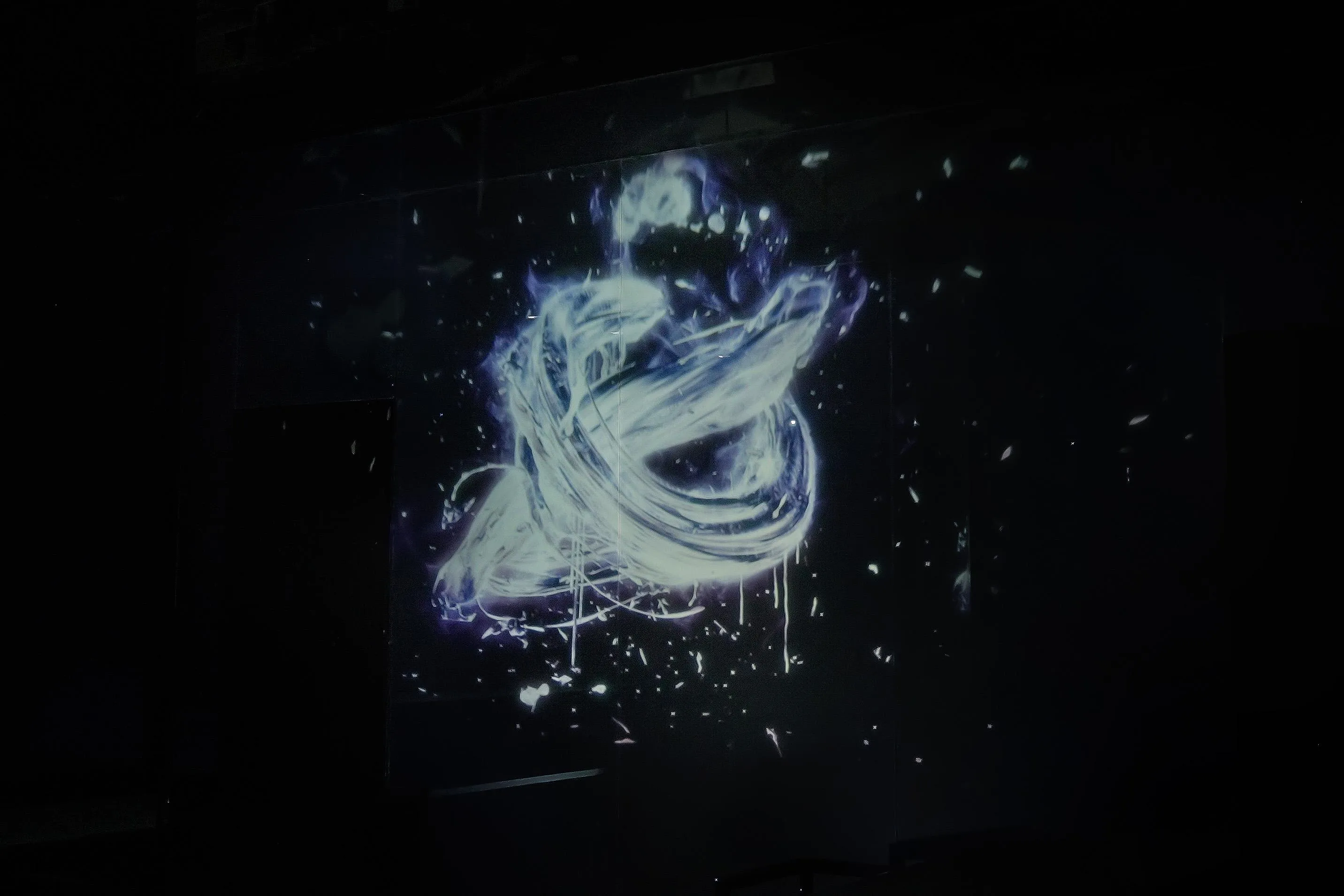 Spatial Calligraphy is a form of calligraphy drawn in space that teamLab has been exploring since it was founded. The artwork reconstructs calligraphy in three-dimensional space to express the depth, speed, and power of the brushstroke, and that calligraphy is then flattened using the logical structure of space teamLab calls Ultrasubjective Space. The calligraphy shifts between two and three dimensions.