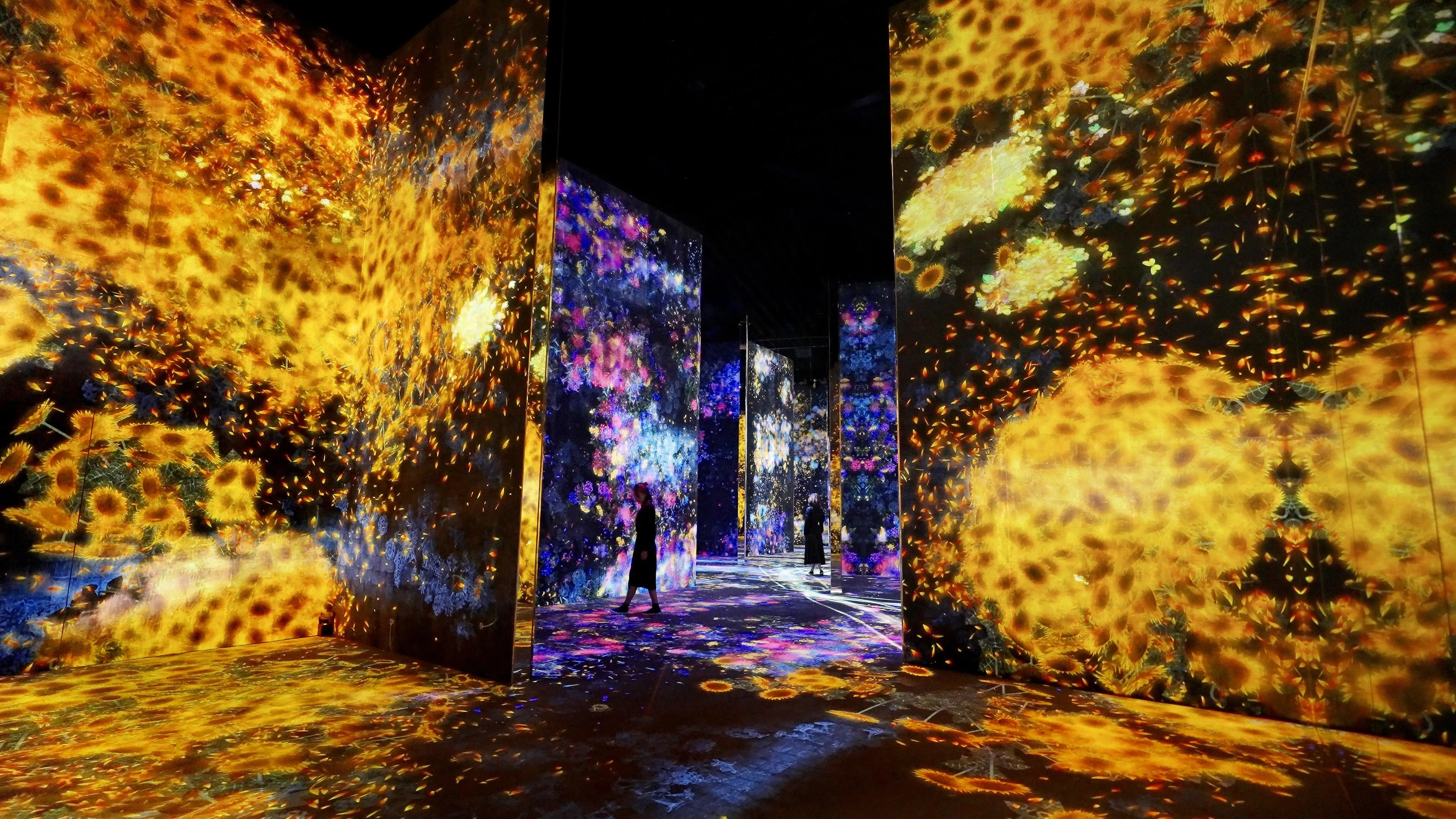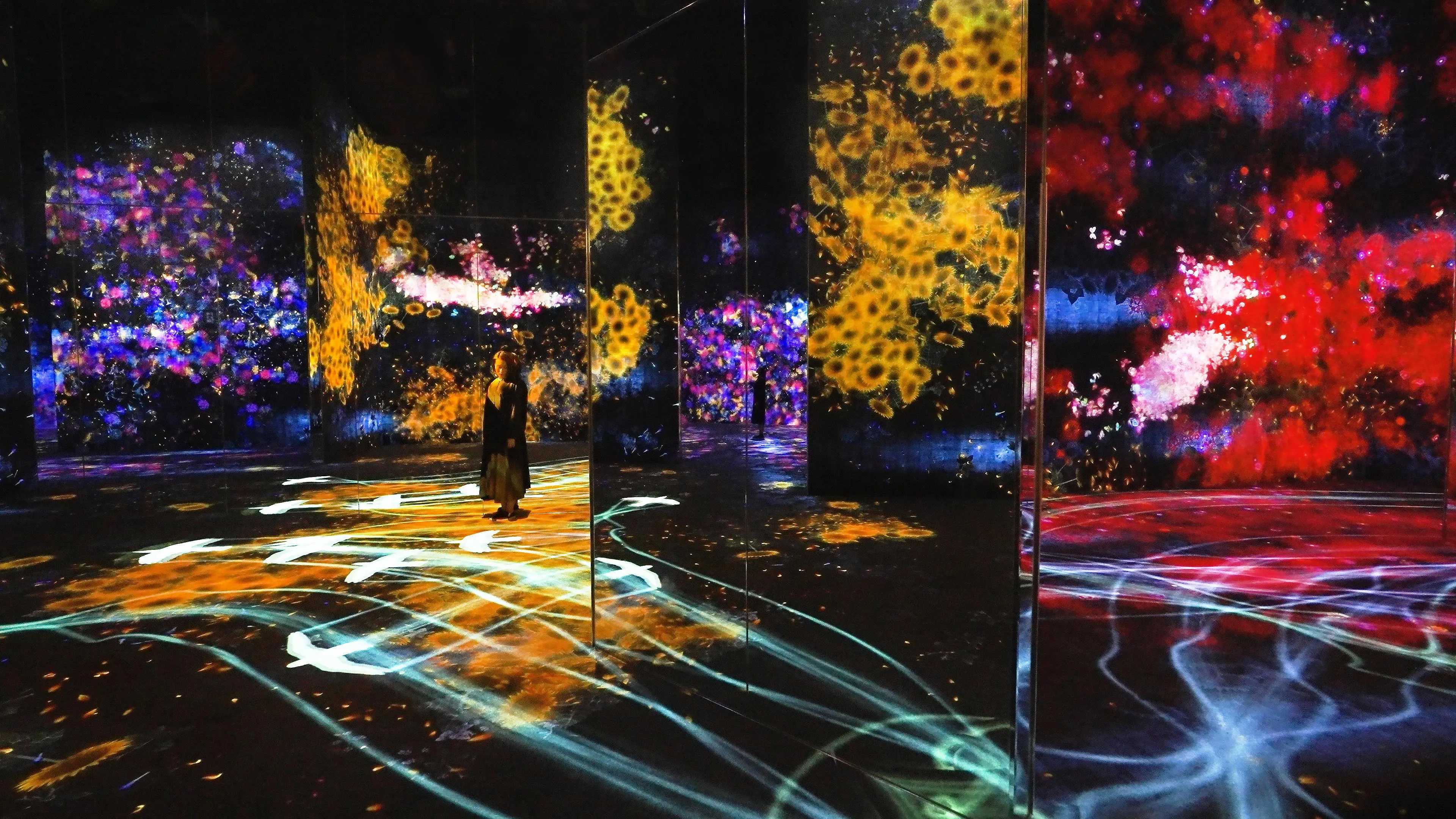 In spring in the Kunisaki Peninsula, there are many cherry blossoms in the mountains and canola blossoms at their base. A visit to this region led teamLab to wonder how much of these flowers were planted by people and how much of them were native to the environment. It was a place of great serenity and contentment. The expansive body of flowers is an ecosystem influenced by human intervention, and the boundary between the work of nature and the work of humans is unclear. Rather than nature and humans being in conflict, a healthy ecosystem is one that includes people. In the past, people understood that they could not grasp nature in its entirety, and that it is not possible to control nature. People lived more closely aligned to the rule of nature, which perhaps created a comfortable natural environment. We believe that these valleys hold faint traces of this premodern relationship with nature that once existed, and we hope to explore a form of human intervention based on the premise that nature cannot be controlled.