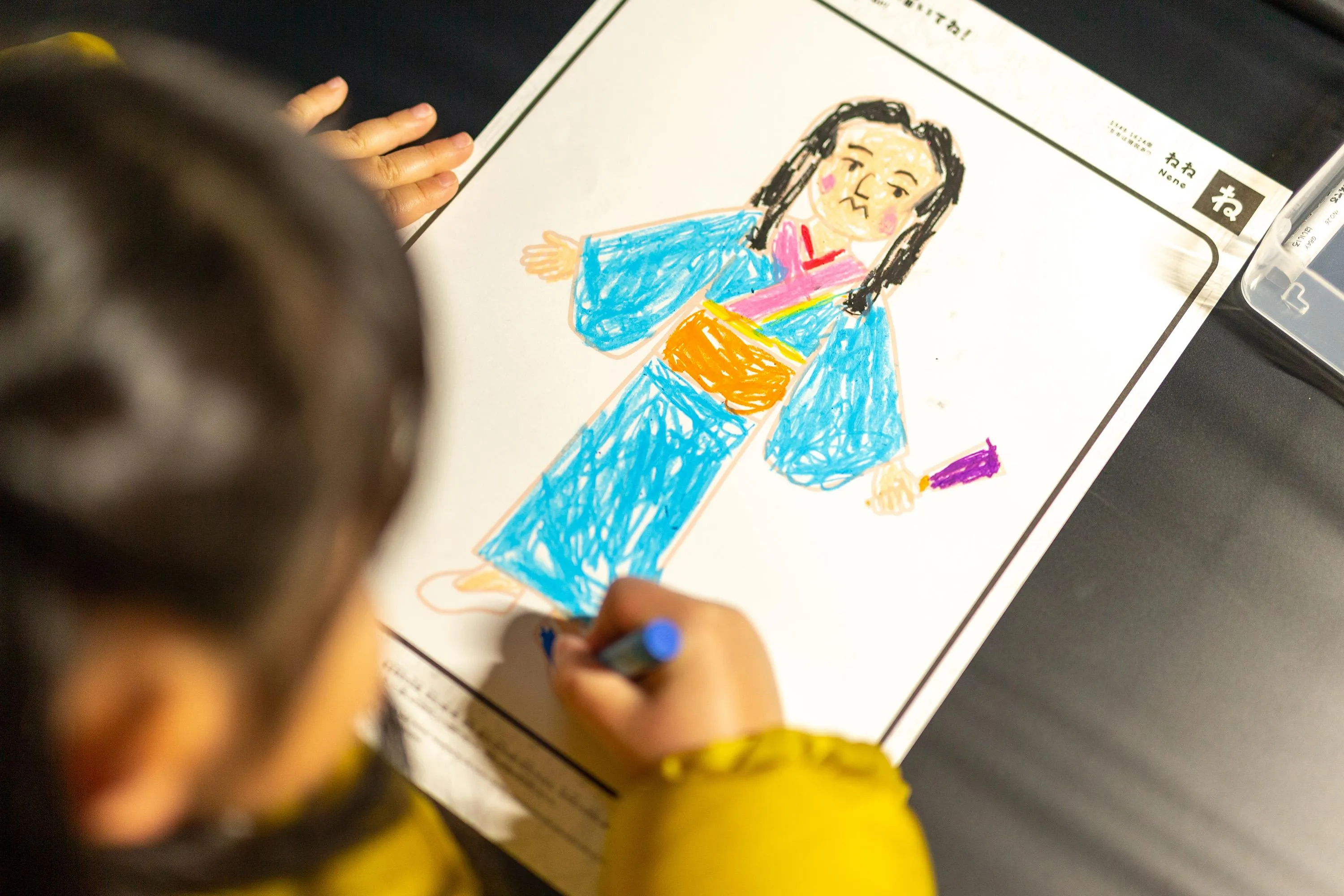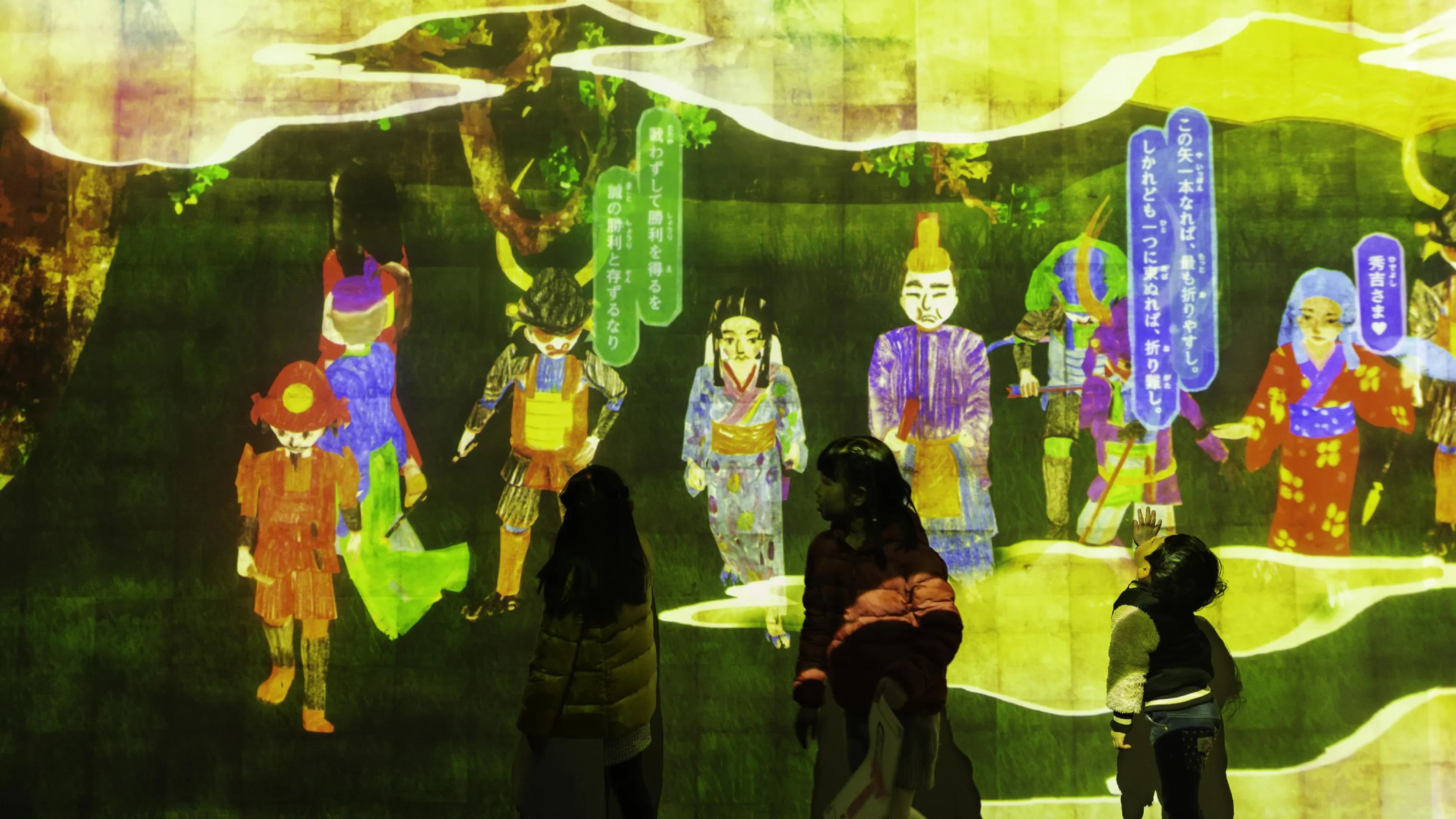 Draw the historical figures  of Hiroshima (Motonari Mori, Terumoto Mori, Nagamasa Asano, Nagaakira Asano, and Nene) on paper. Then, watch the drawings come to life and walk through the park in front of you.