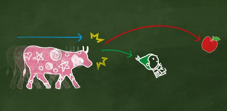 When a separate external force is exerted upon something, it starts to move in the direction of that new force. The amount of movement changes depending on the strength of the force applied and the weight of the thing. For example, strong force is necessary to push and try to move something heavy. If you try to bounce a heavy ball and a light ball, the light ball will bounce back more quickly even with the same amount of force.