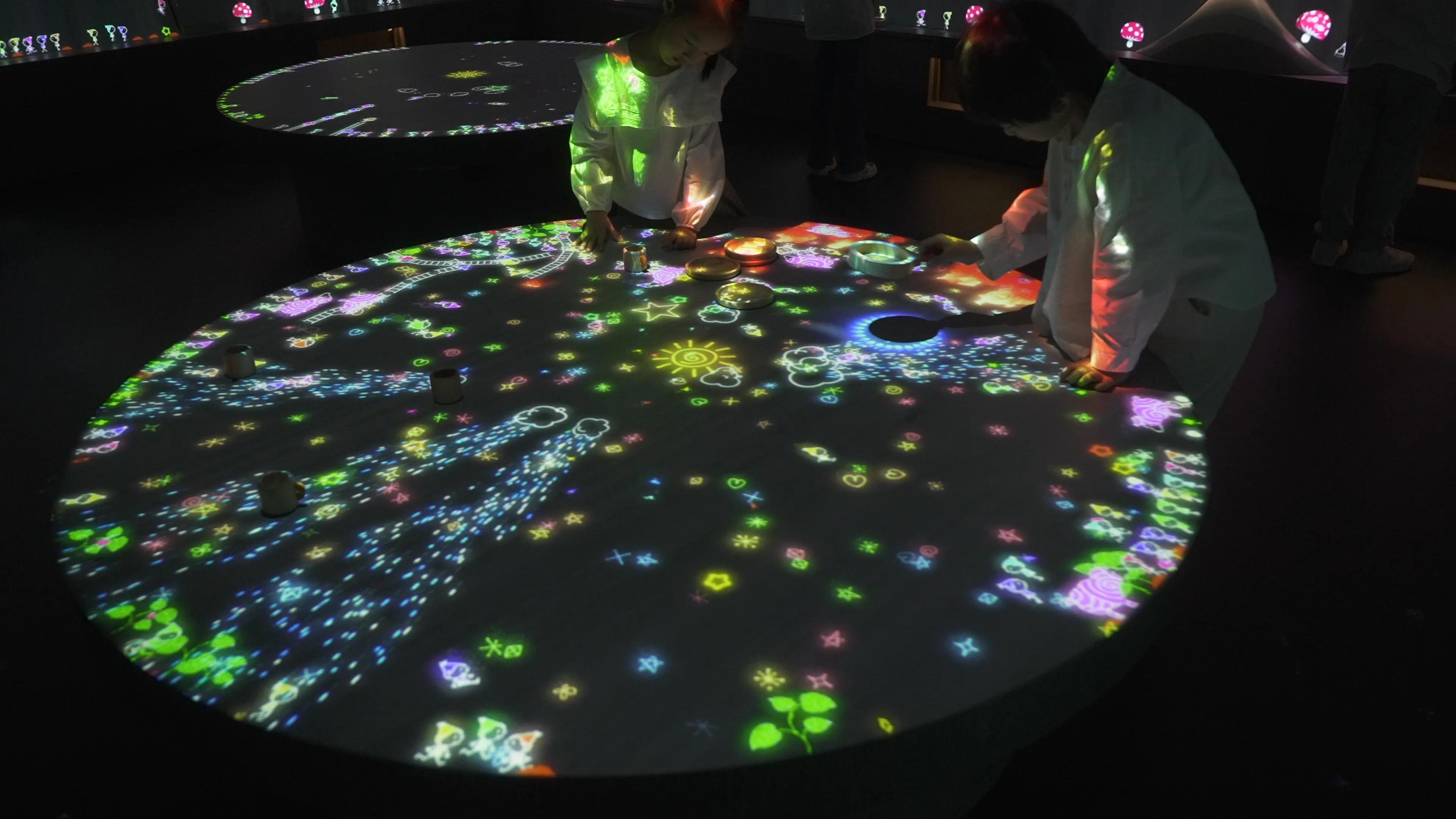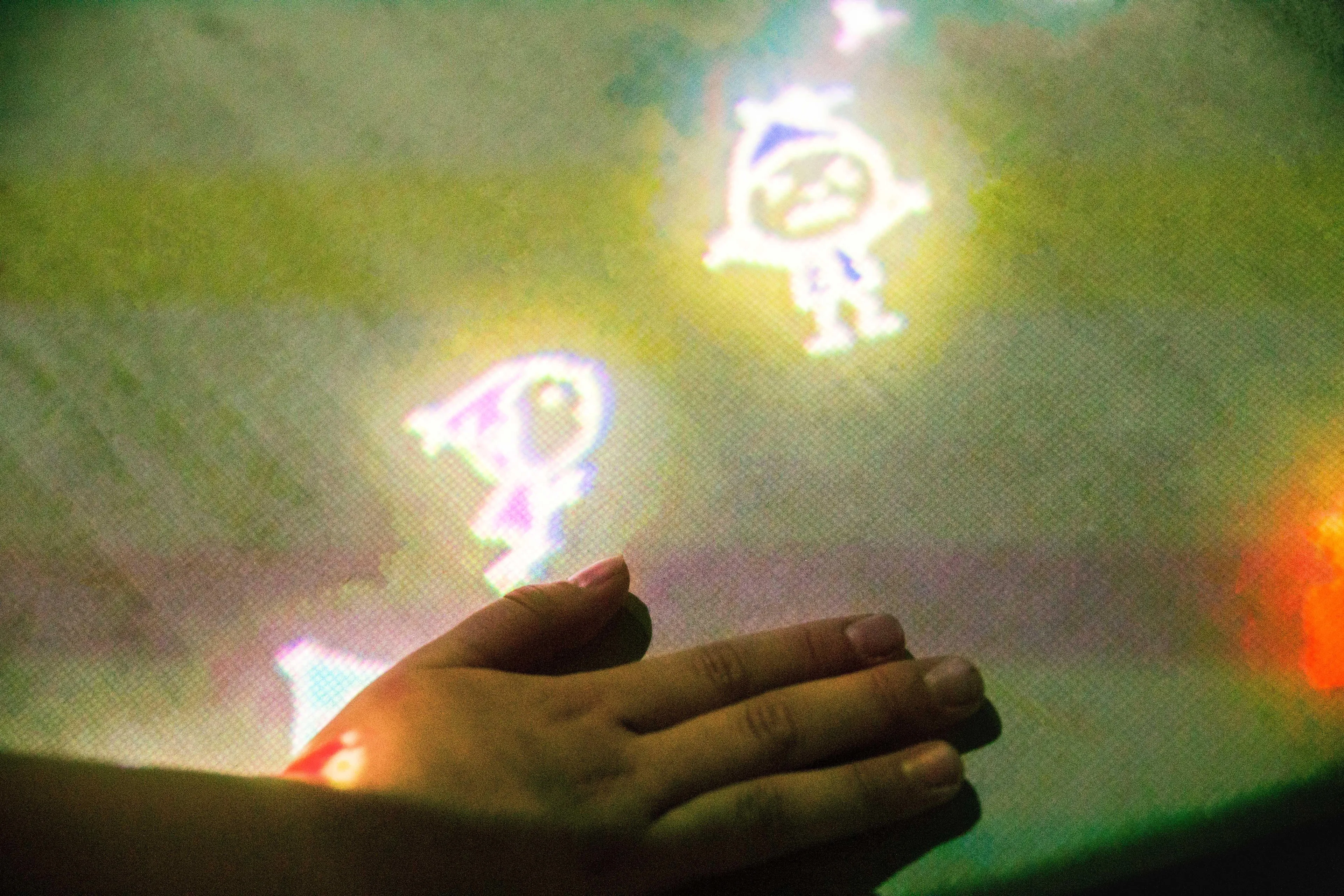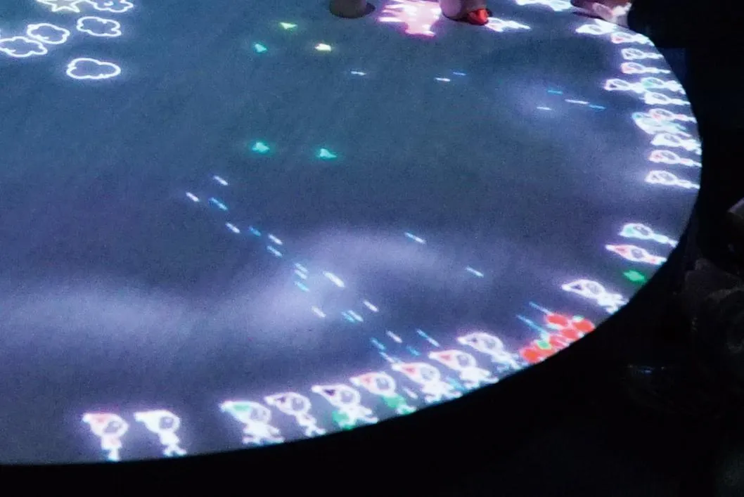 If you put something, such as your hand, on top of the table, the little people will jump on to it. Depending on the shape of the objects you place on the table, the little people will slide, jump, or climb. Place many objects on the table and see the little people’s world transform into a completely new world.