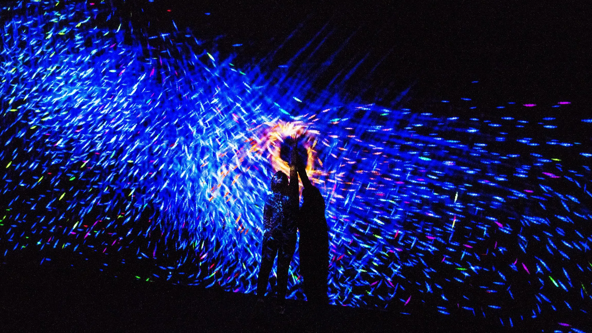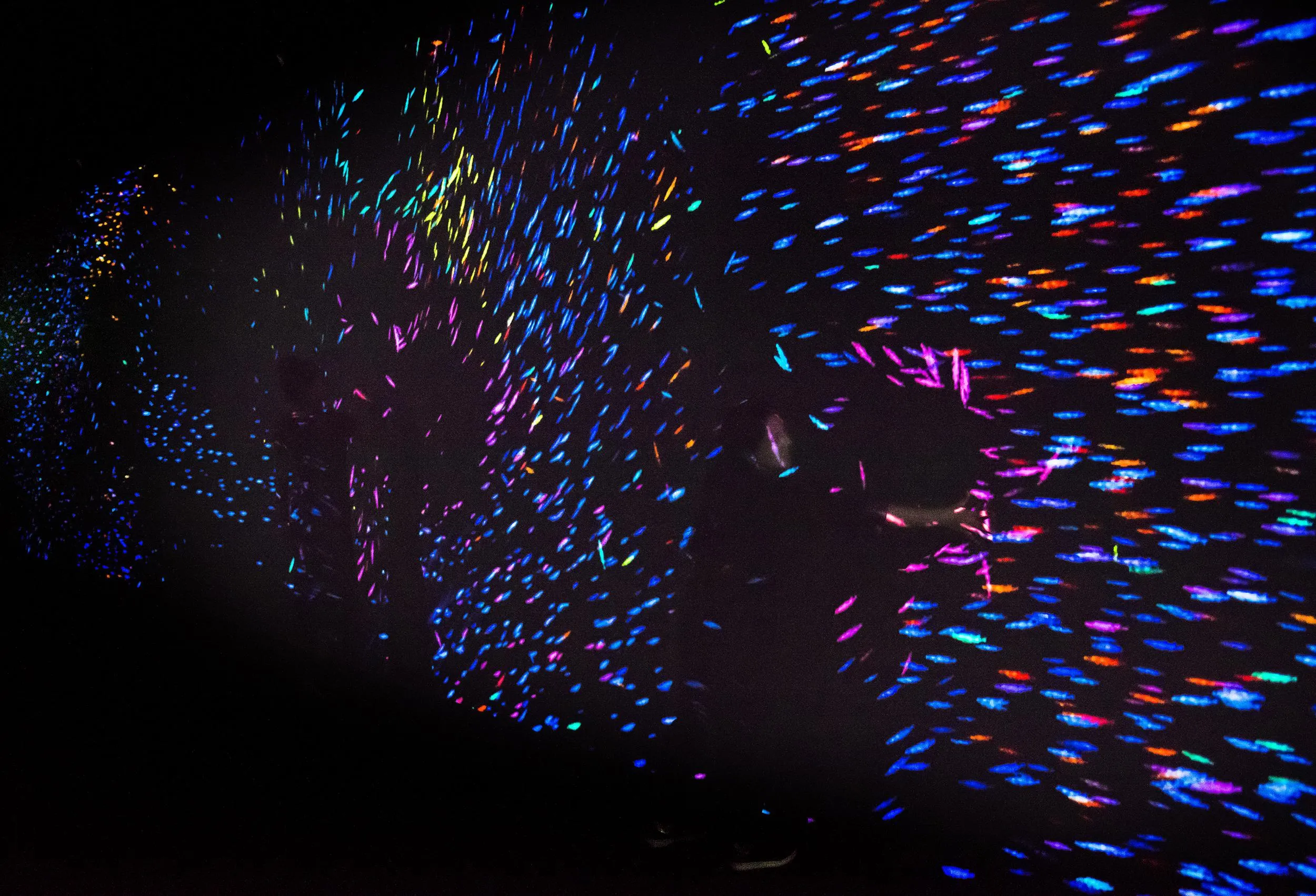 When people touch a shoal of fish, the fish are dyed a color unique to that person.