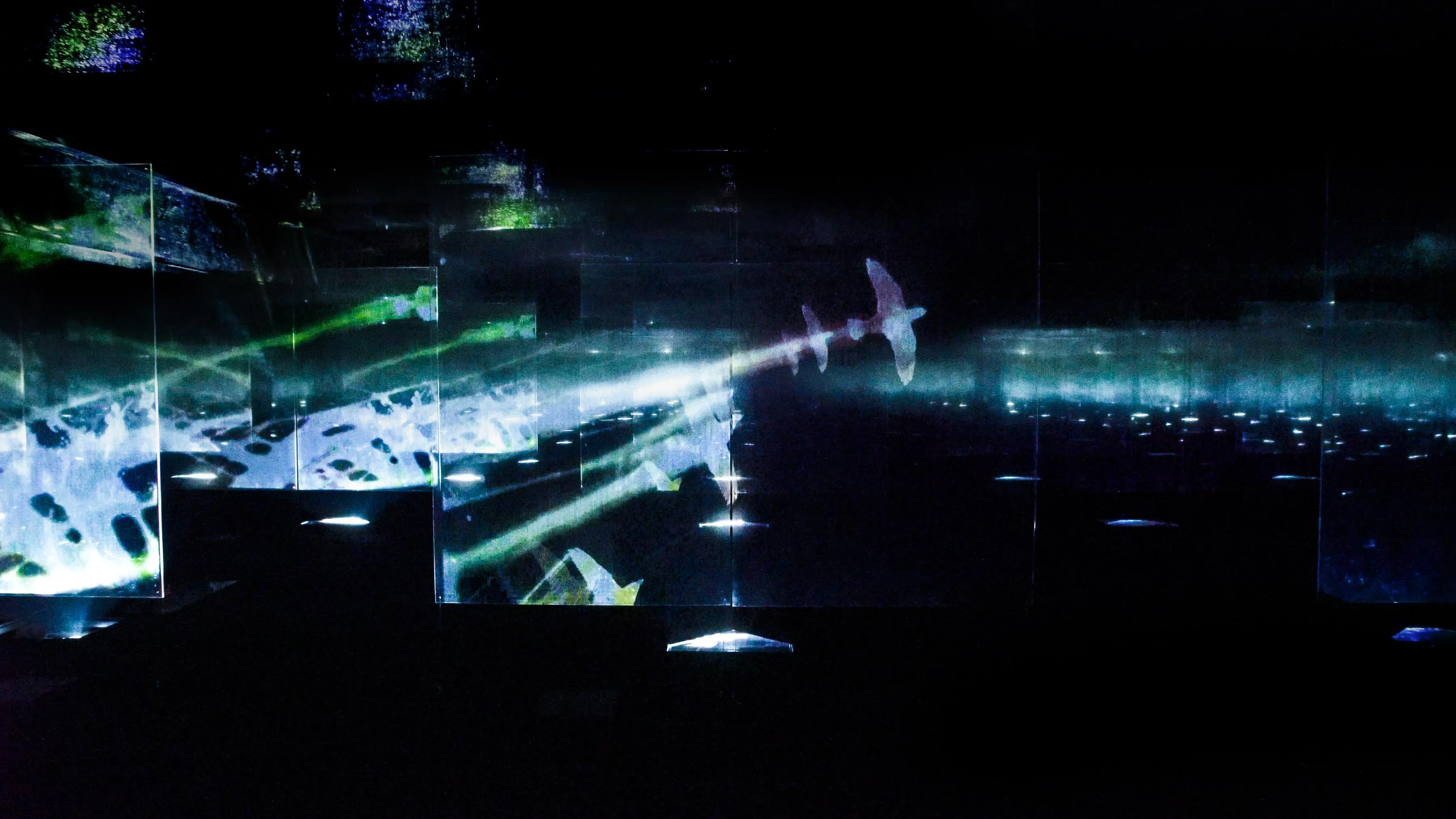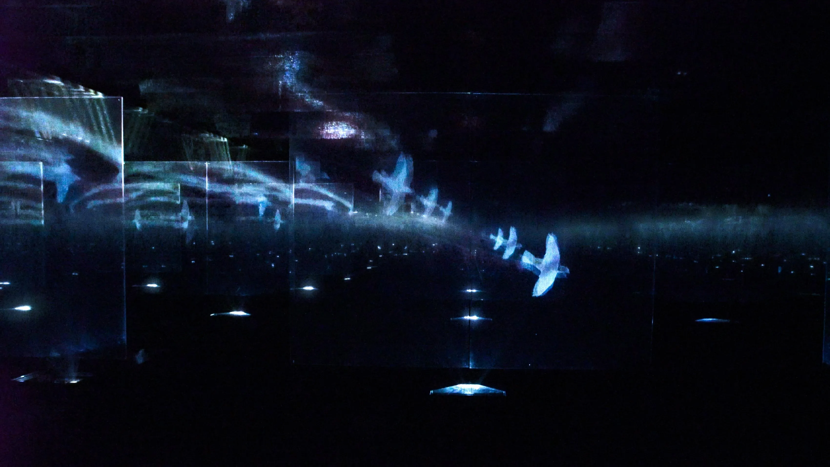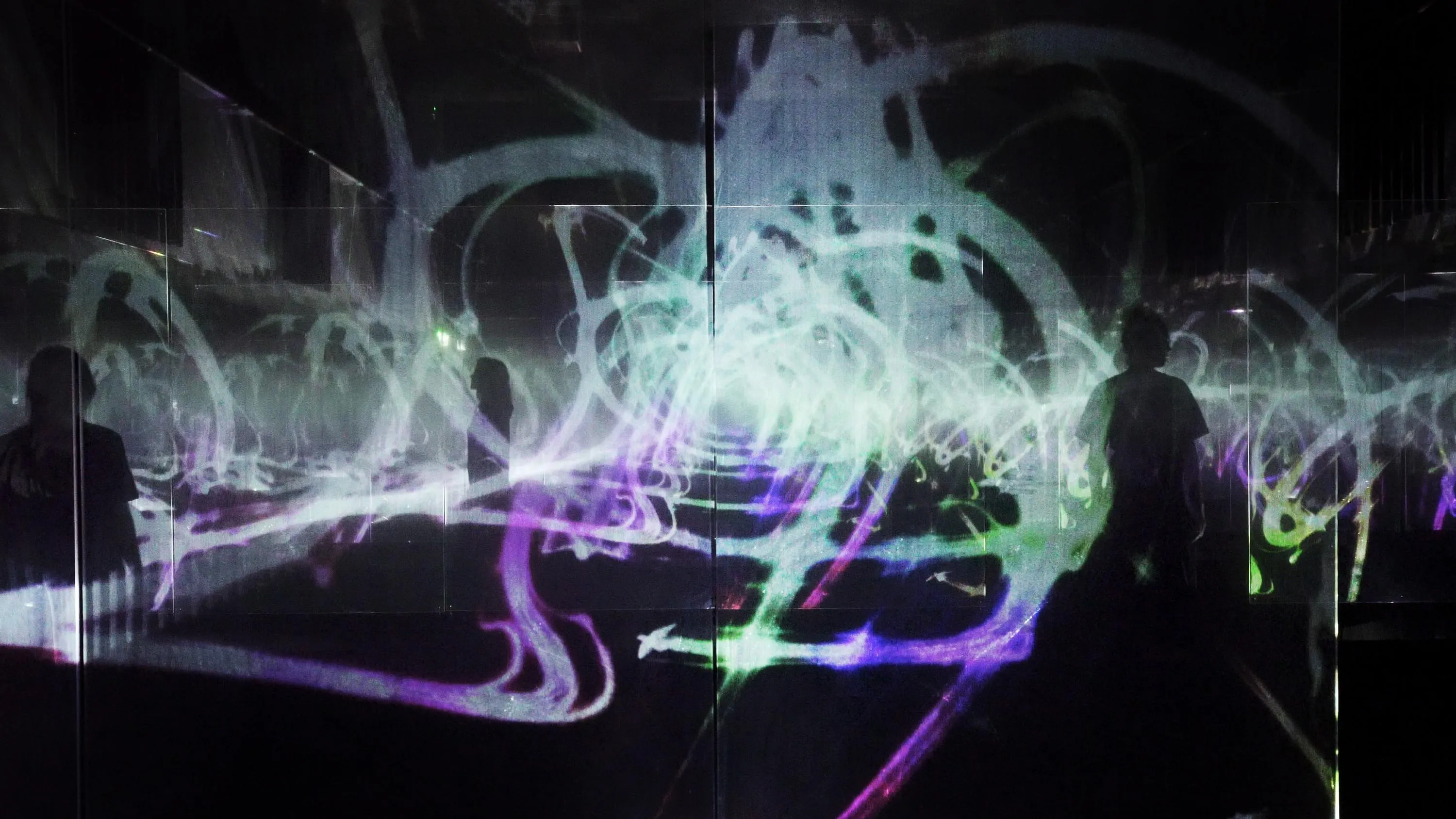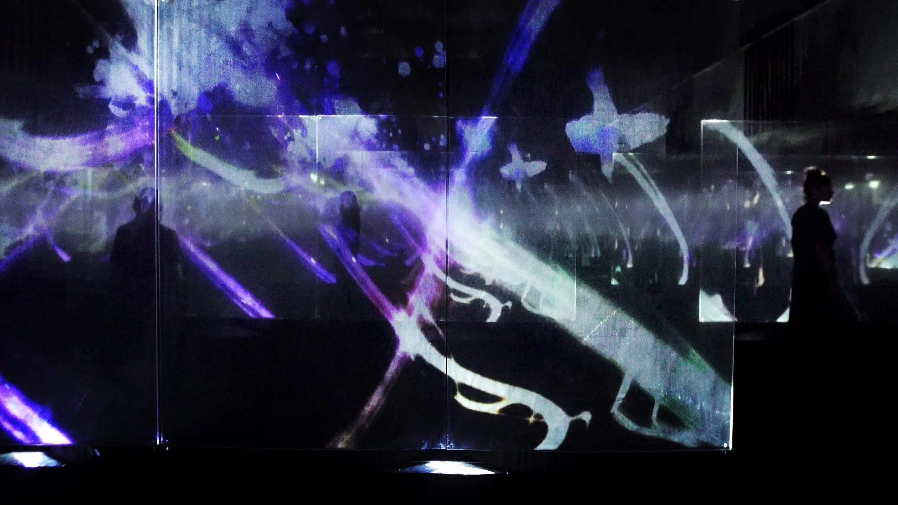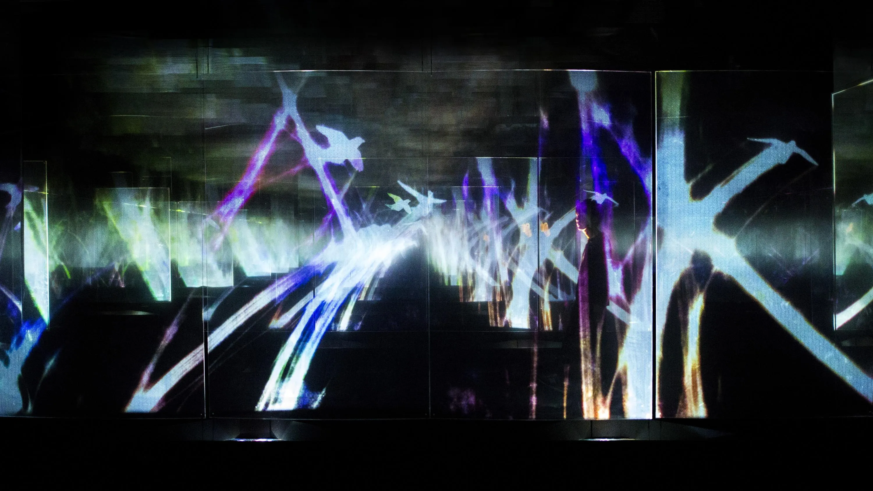 teamLab, 2018-, from the series Crows are chased and the chasing crows are destined to be chased as well, Division in Perspective – Light in Dark, 2014-, Installation, 4min 20sec, Sound: Hideaki Takahashi