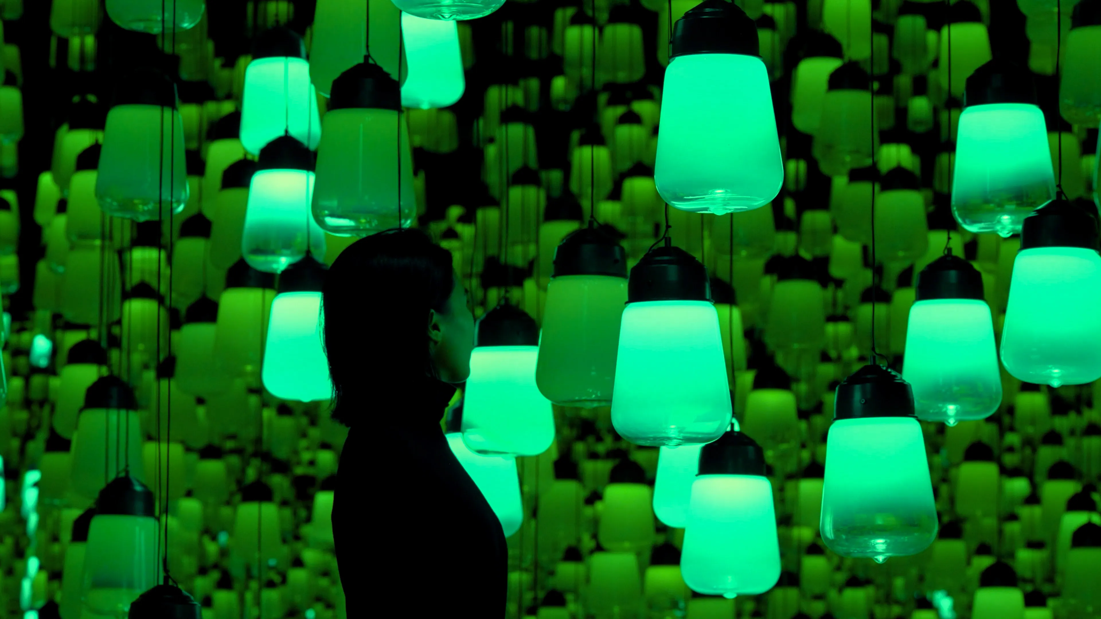 This is an artwork about the continuity of light, which is generated as people move around freely and interact with the lamps.
