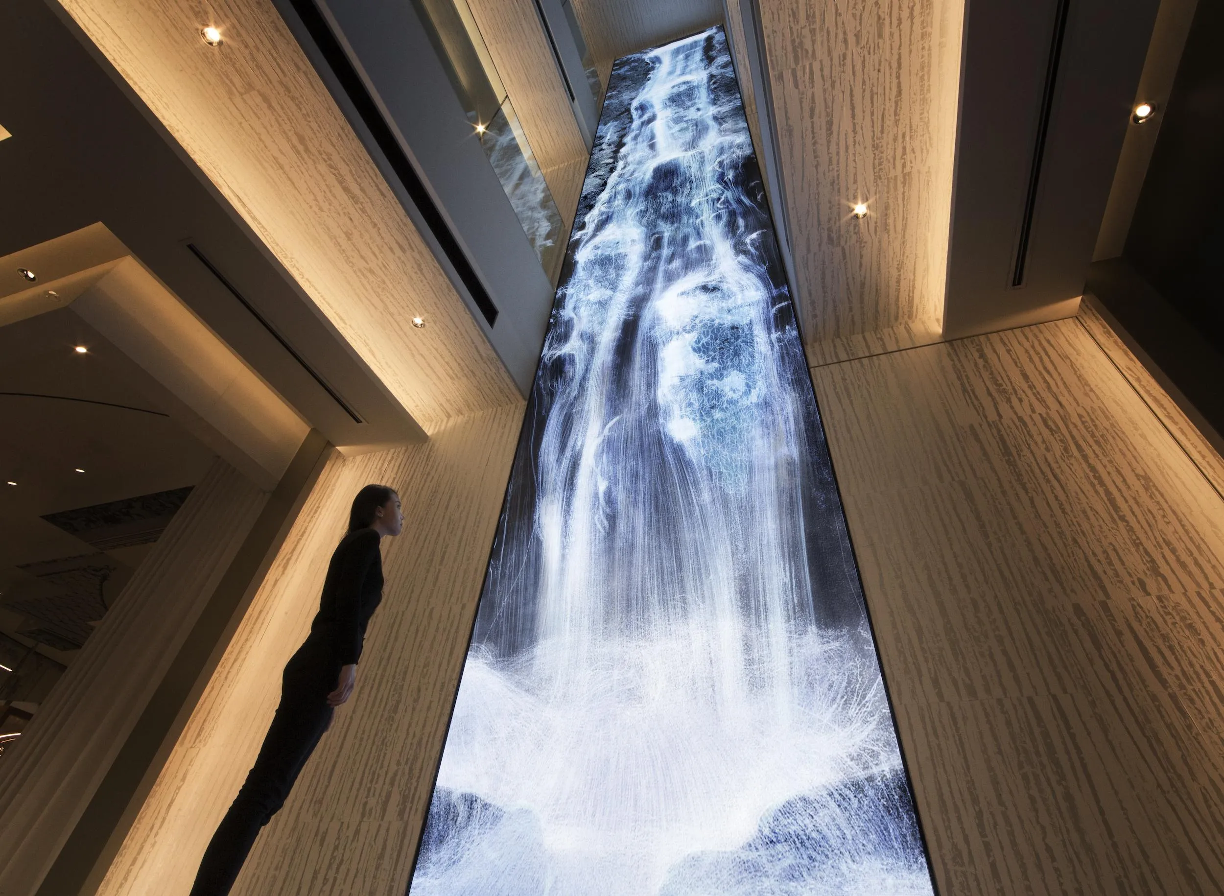 teamLab, 2017, Digital Installation, LED, Endless, H: 11810 mm W: 1920 mm