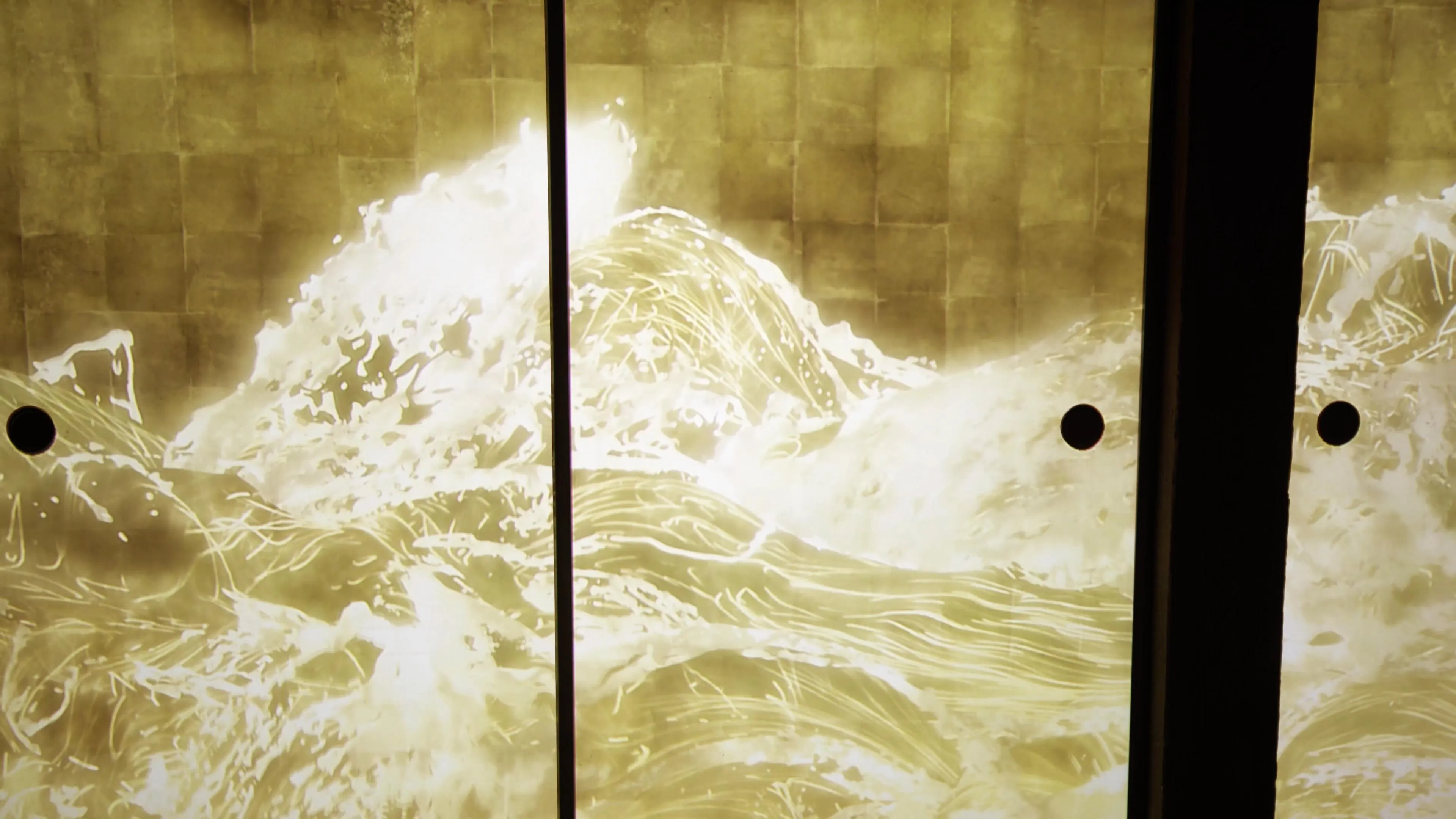 When viewing this artwork, as opposed to watching waves shot with a video camera, people may feel that the barrier between themselves and the waves disappears. They feel immersed in the work, perhaps even feeling life in the collection of lines, as if the waves are luring them in. Perhaps we can find a connection to the way premodern Japanese people perceived the world and consequently behaved toward the world.