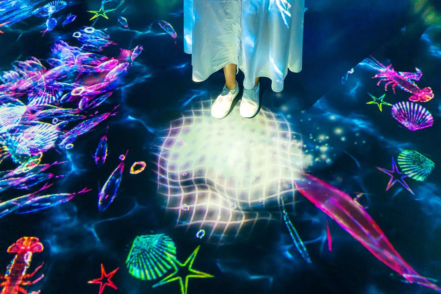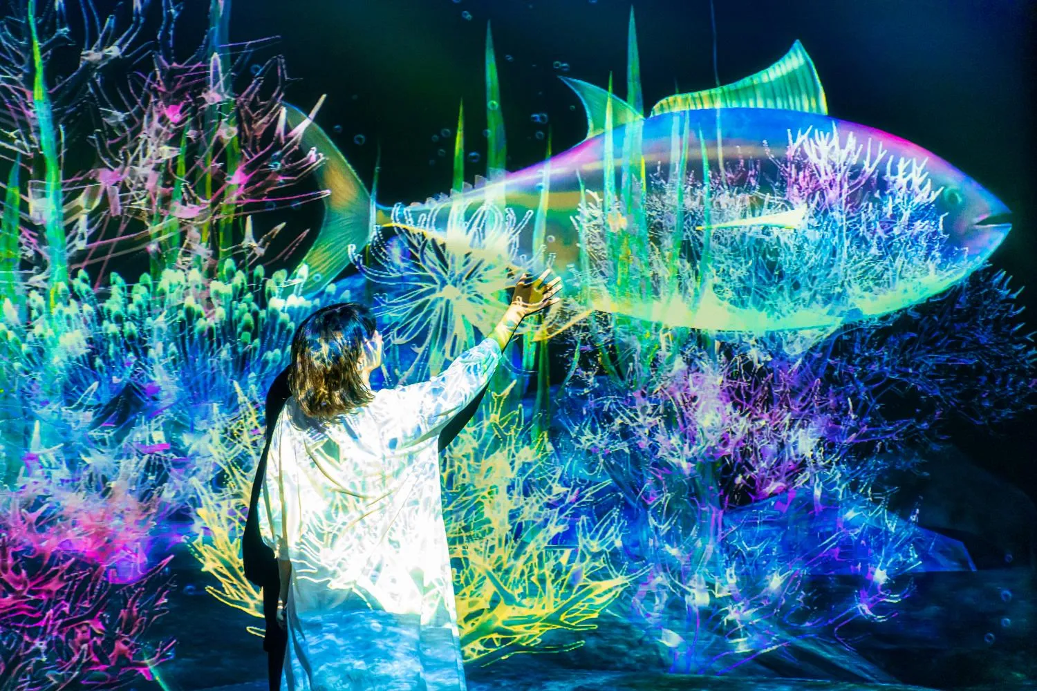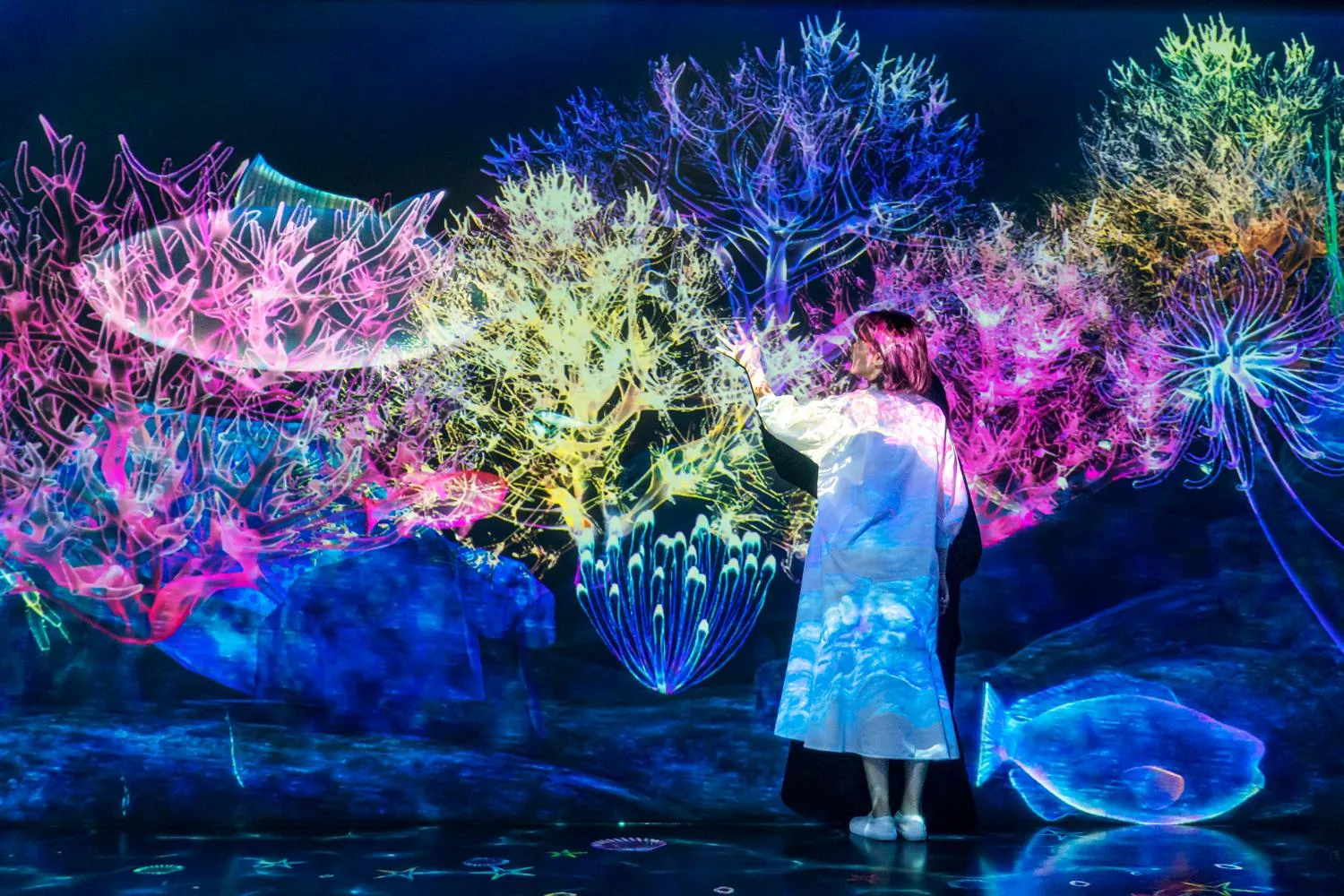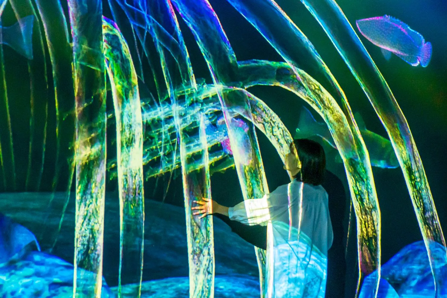 teamLab, 2022, Interactive Digital installation, Sound: Hideaki Takahashi