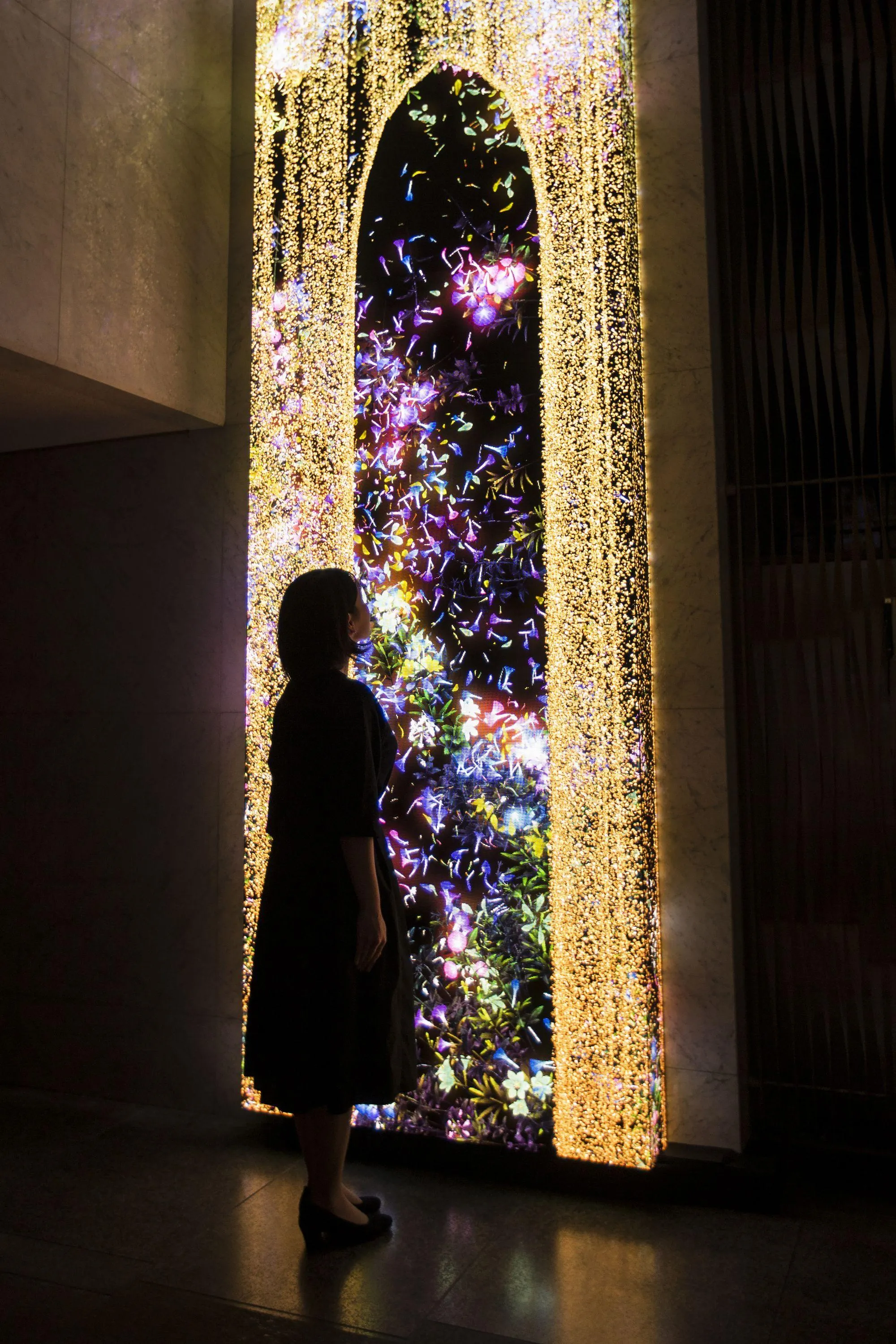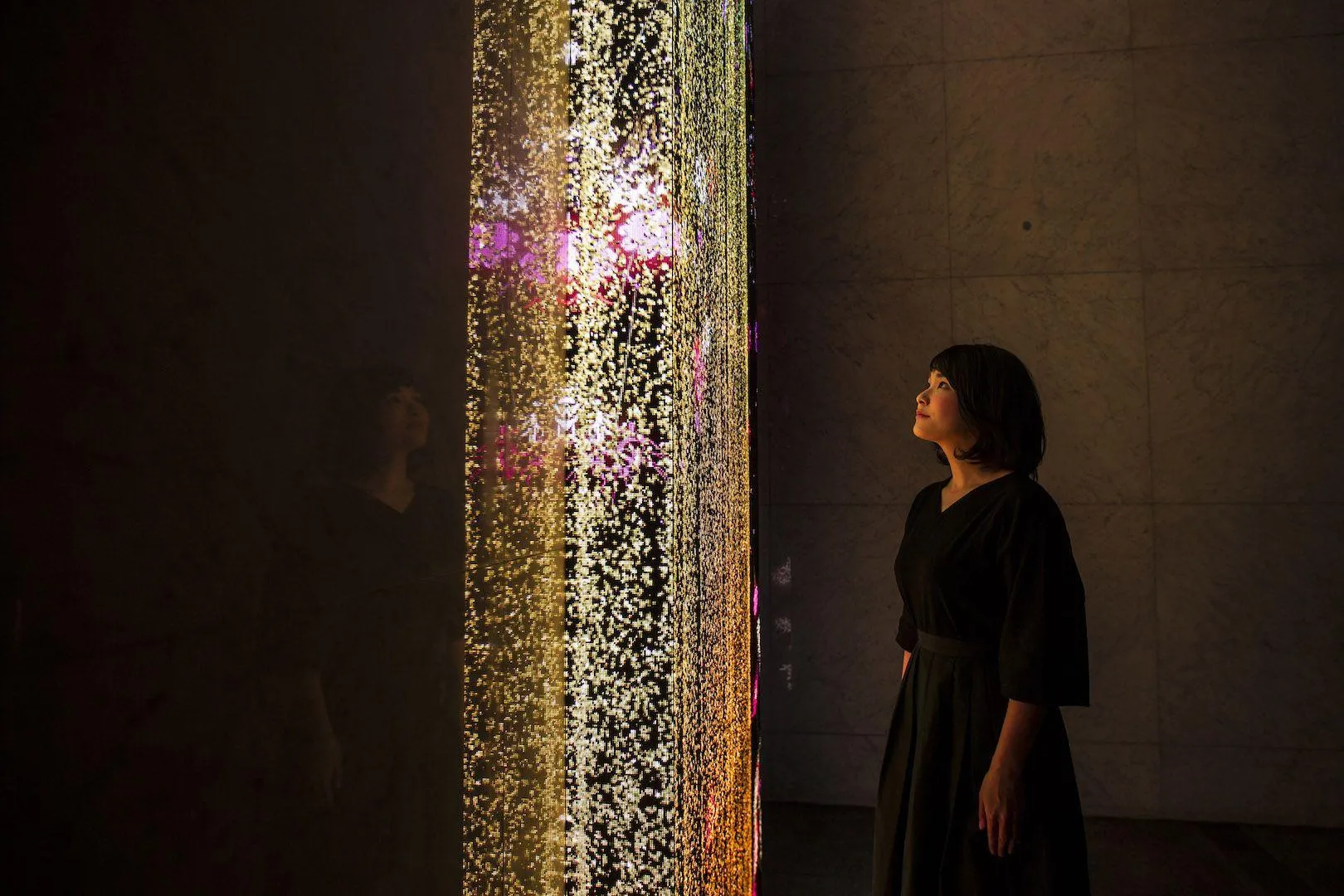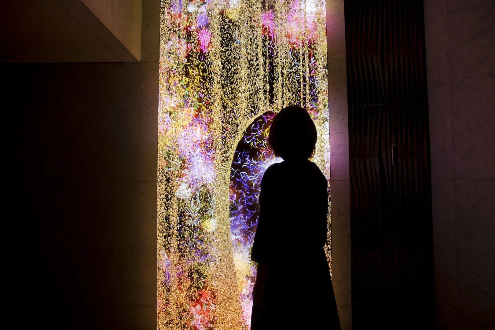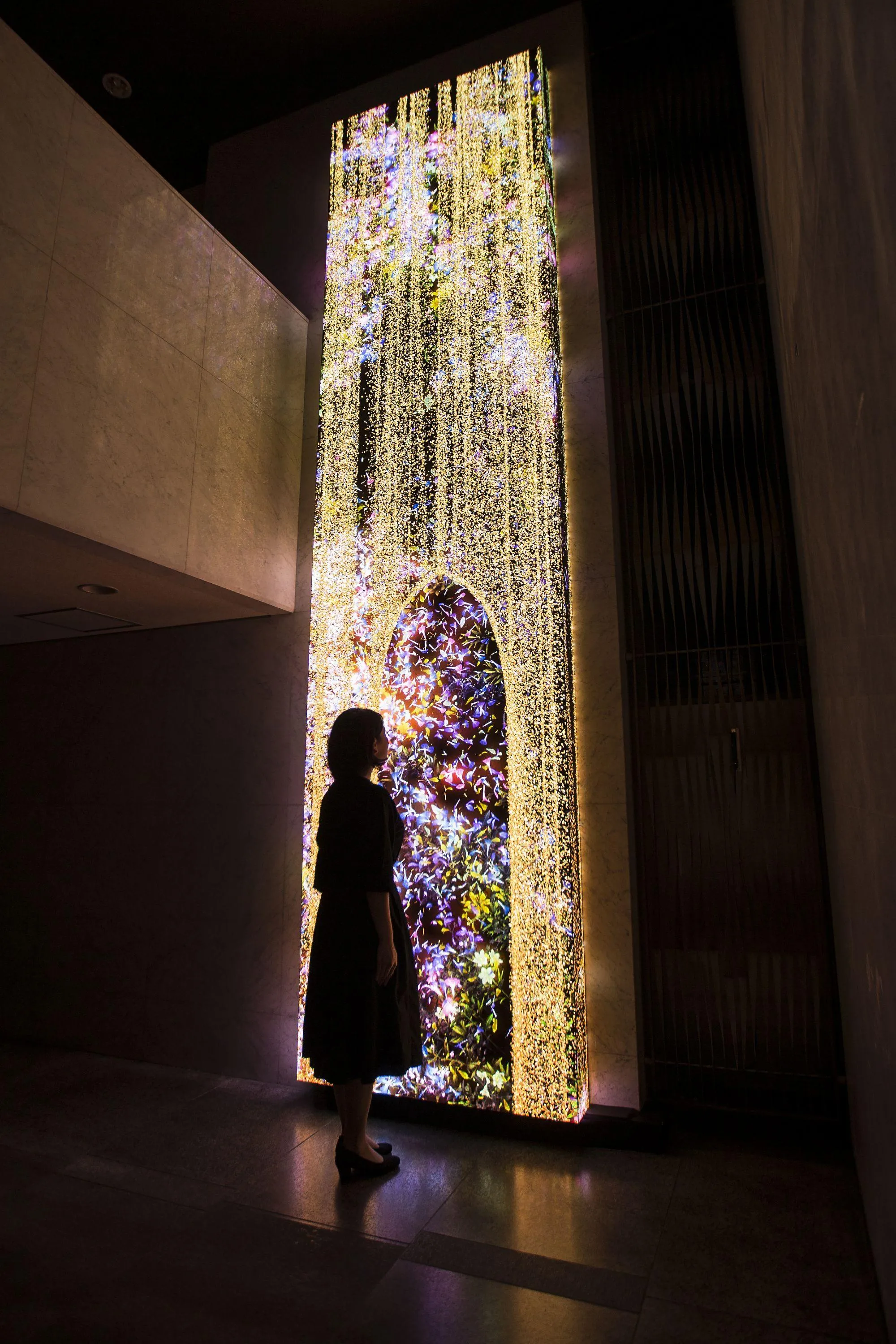 teamLab, 2018, Interactive Digital Installation, LED, Endless, H: 5210 mm W: 1280 mm D: 160mm