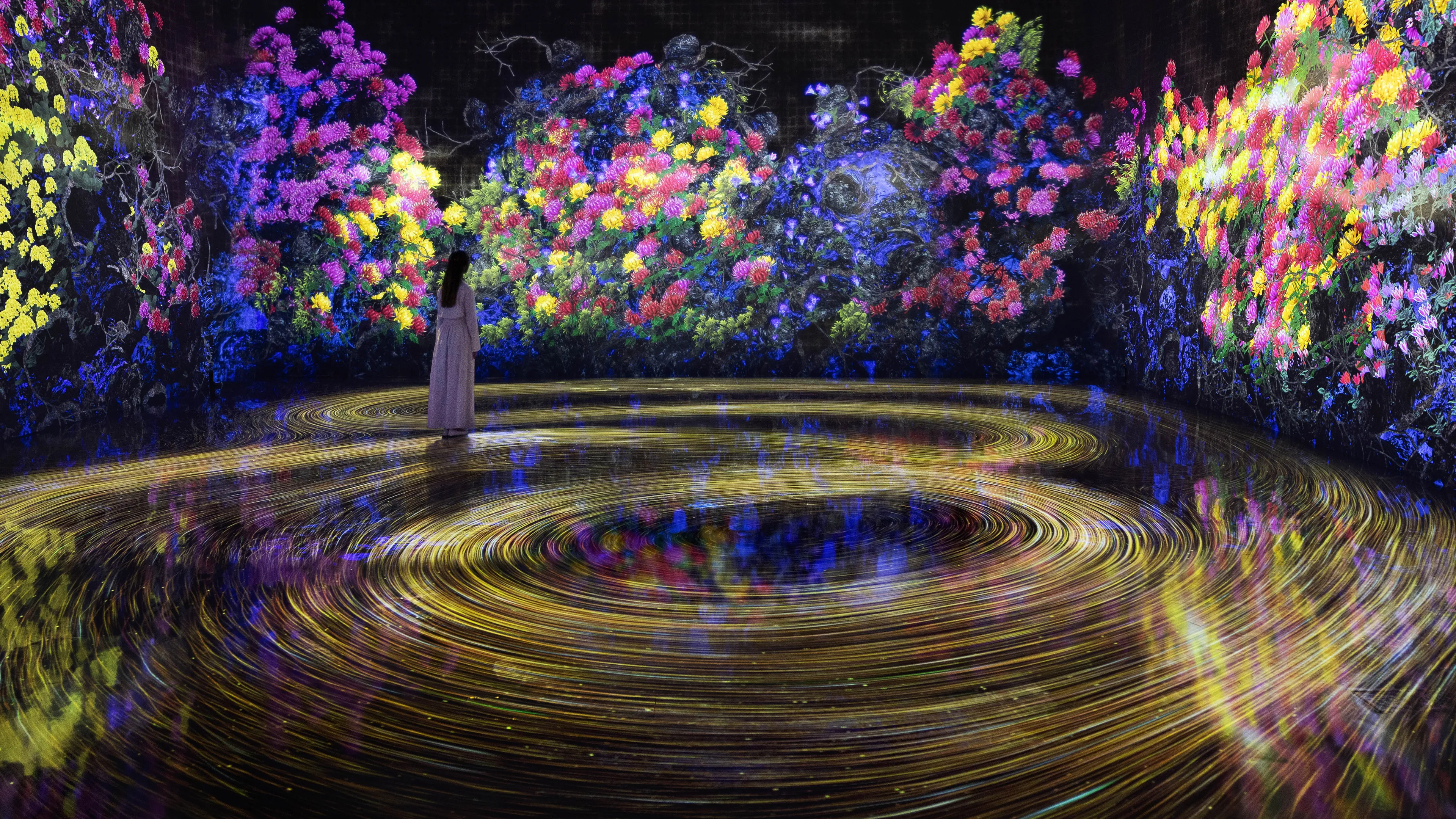 teamLab, 2025, from the series Moving Creates Vortices and Vortices Create Movement, 2017-, Interactive Installation, Endless, Relational Sound: teamLab
