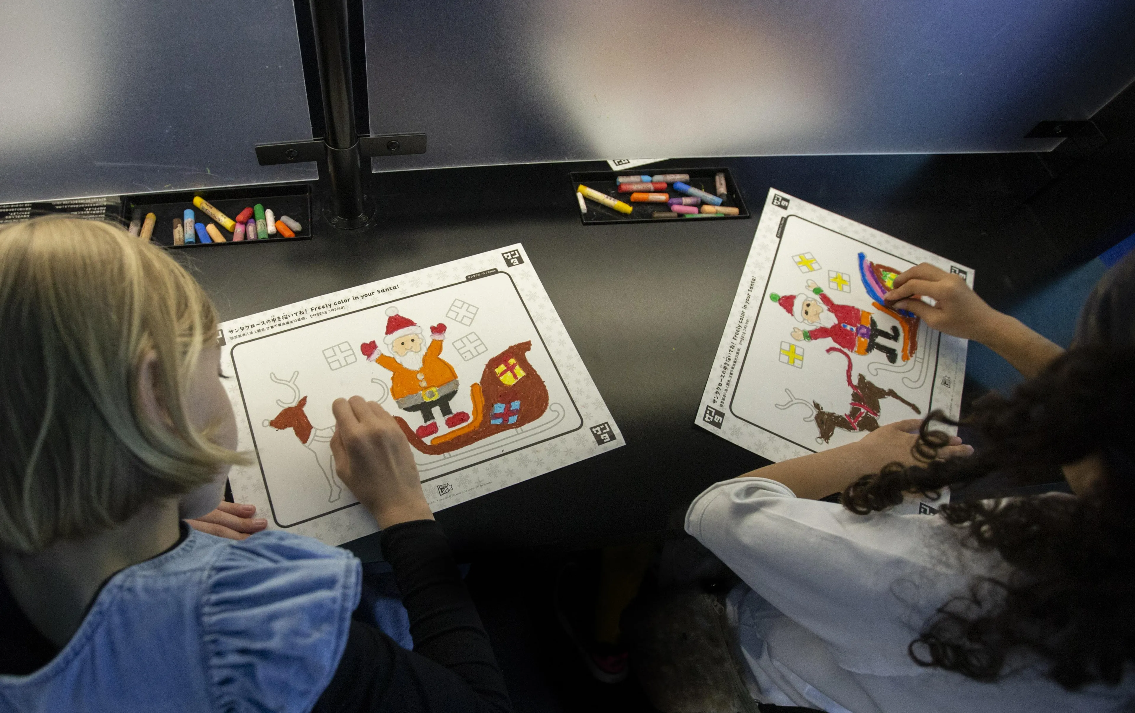 You can also draw other parts of the town that Santa Claus will come to visit, such as, cars, and buildings. The Christmas town that is created depends on what pictures you choose to draw. Each picture enters into the town along with the pictures drawn by others, and the drawings move around and come to life in the town. You can also decorate the town itself too. As the different pictures enter the town, different scenes evolve. You can also enjoy interacting with the pictures: touch a car, for instance, and it will speed up!