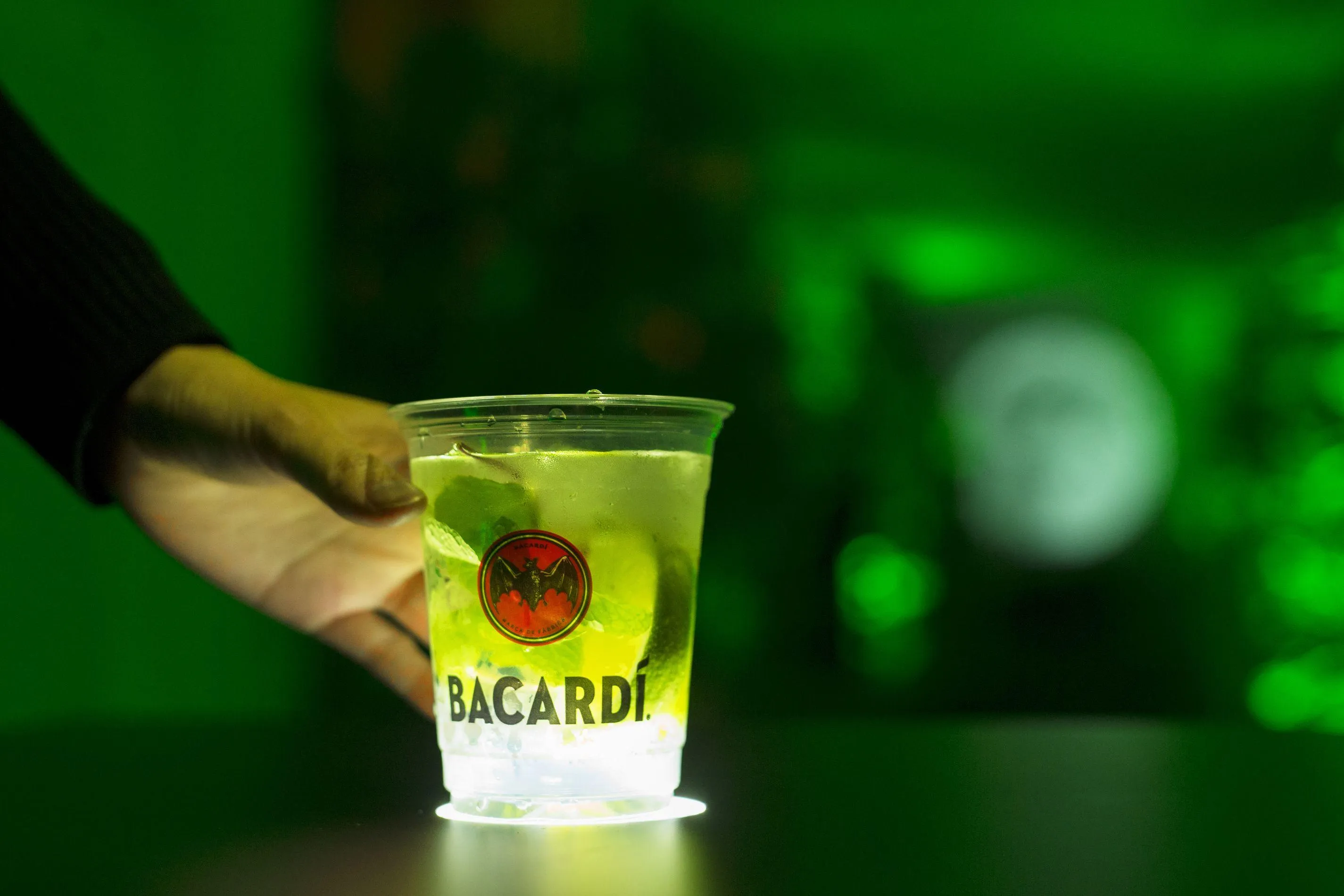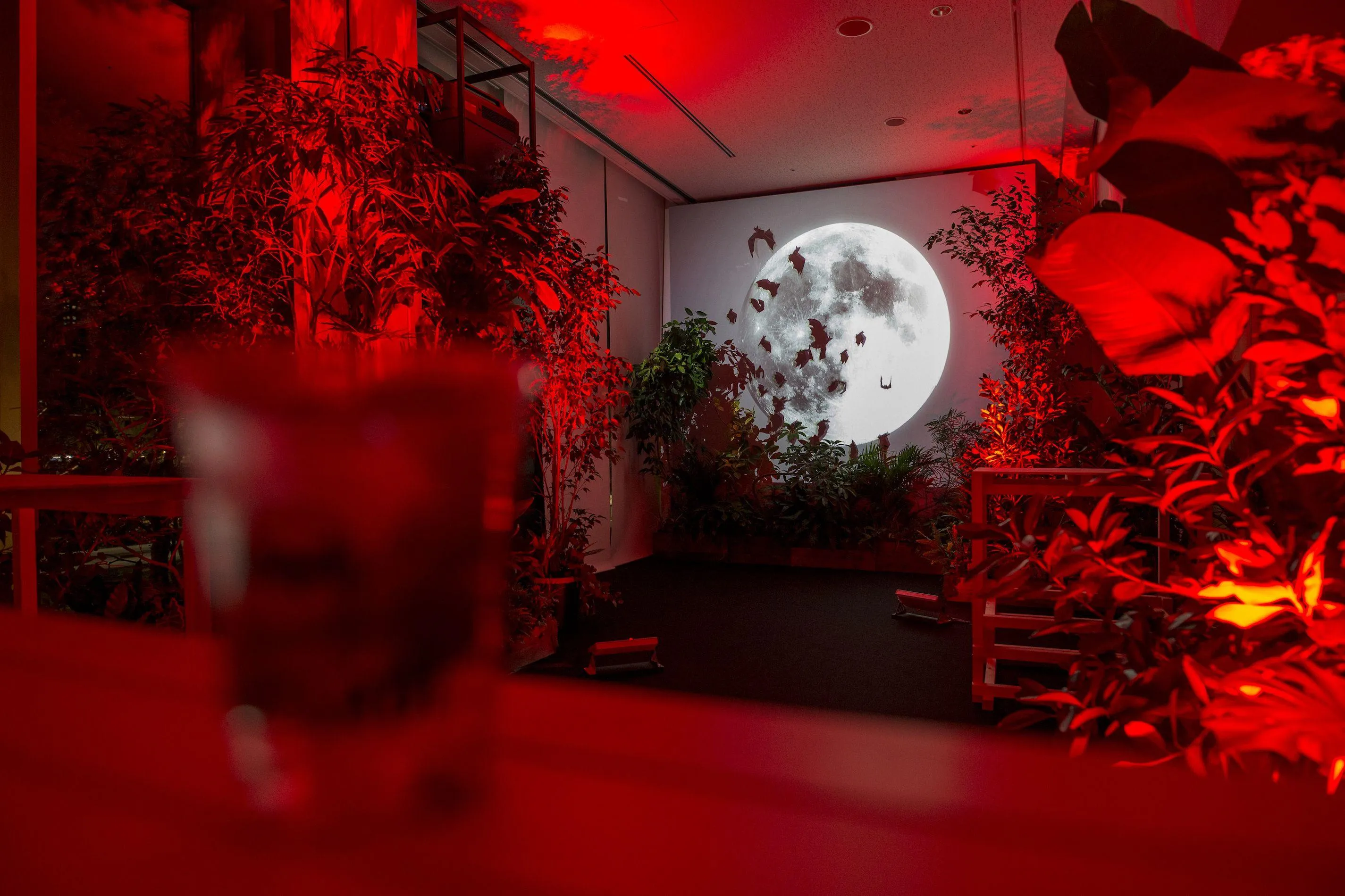 Experience an interactive light bar surrounded by bats and trees. When you put the drink on the high table, 25m-high trees turn to the light color of the drink, and the space is filled with colored light. You can experience it even without purchasing a drink.