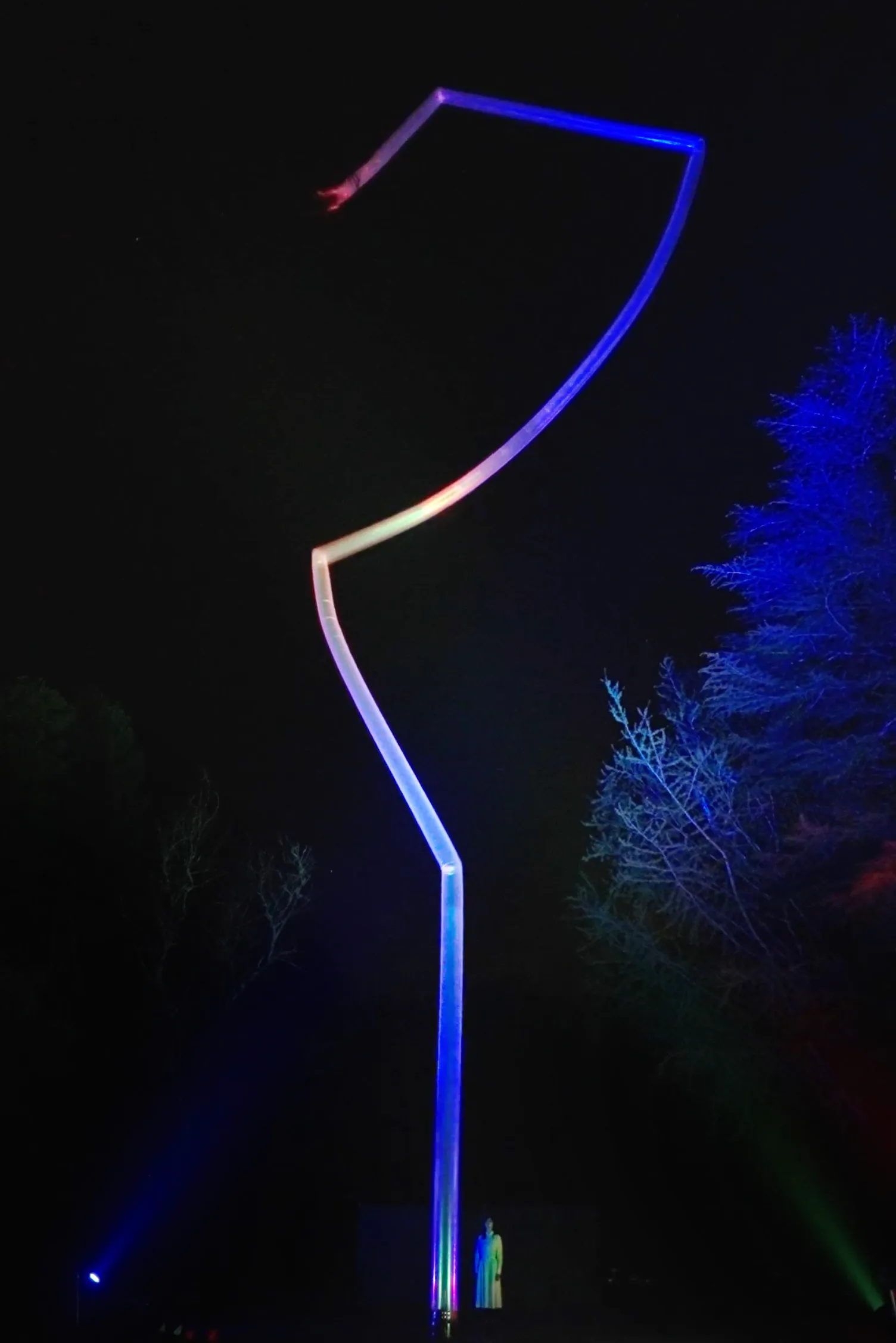 The movement and height of the pillar changes significantly, as the artwork is strongly influenced by its environment, such as  wind, rain, and humidity.