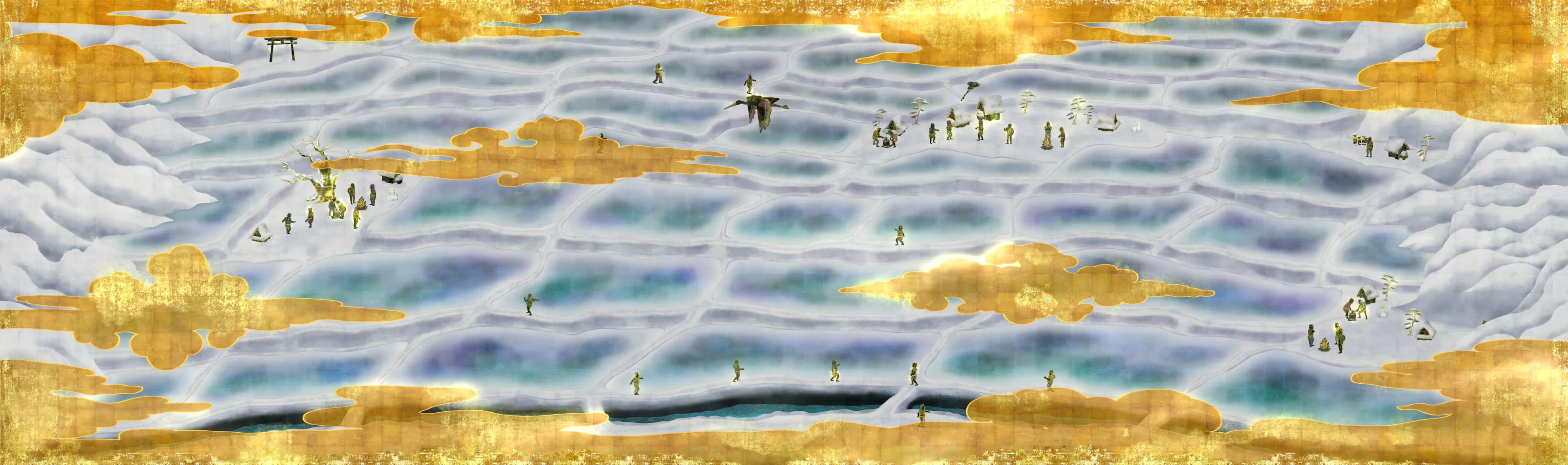 The scenery of Tashibunosho has been unchanged for thousands of years. It is depicted here through the lives of the people who continue to live in harmony with nature in this perpetual landscape.