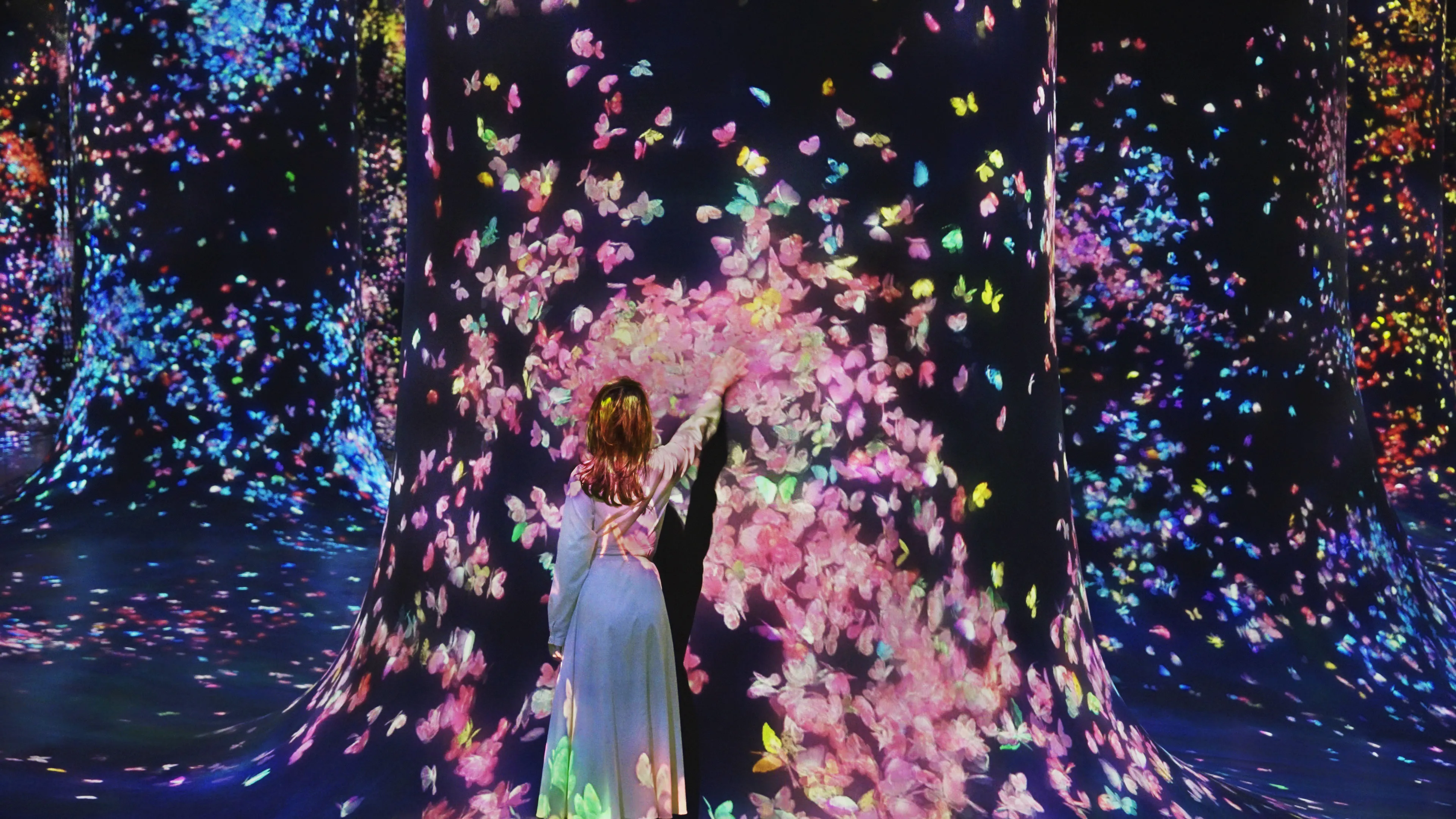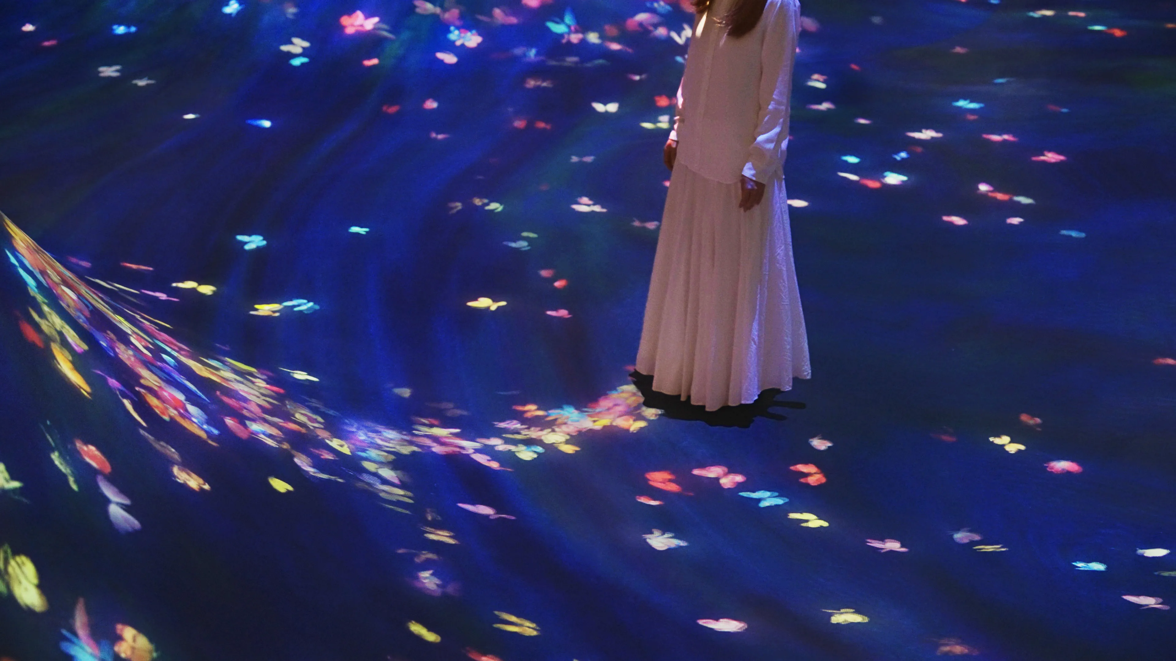 teamLab, 2025, from the series Flutter of Butterflies Beyond Borders, 2015-, Interactive Installation, Sound: Hideaki Takahashi