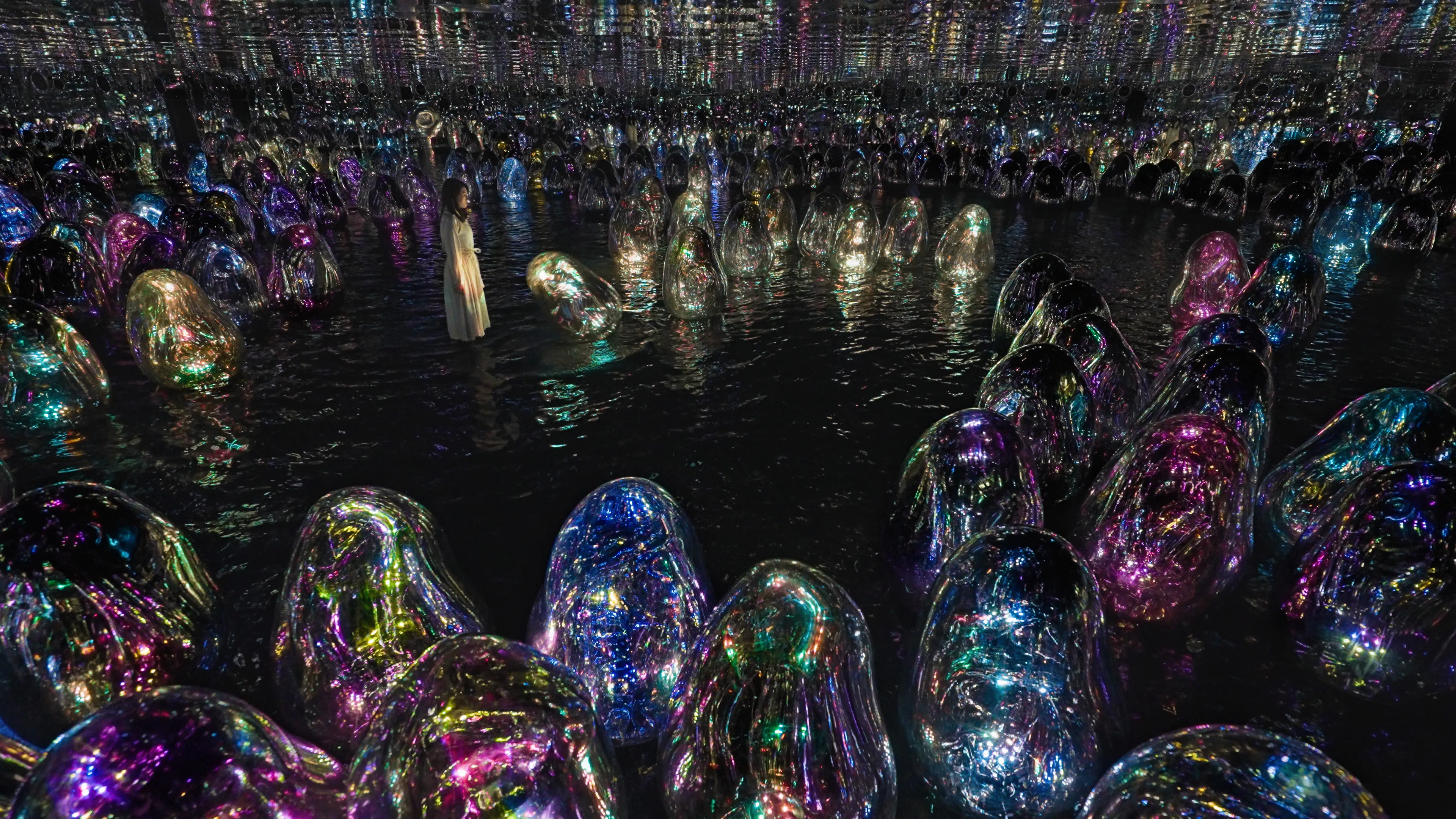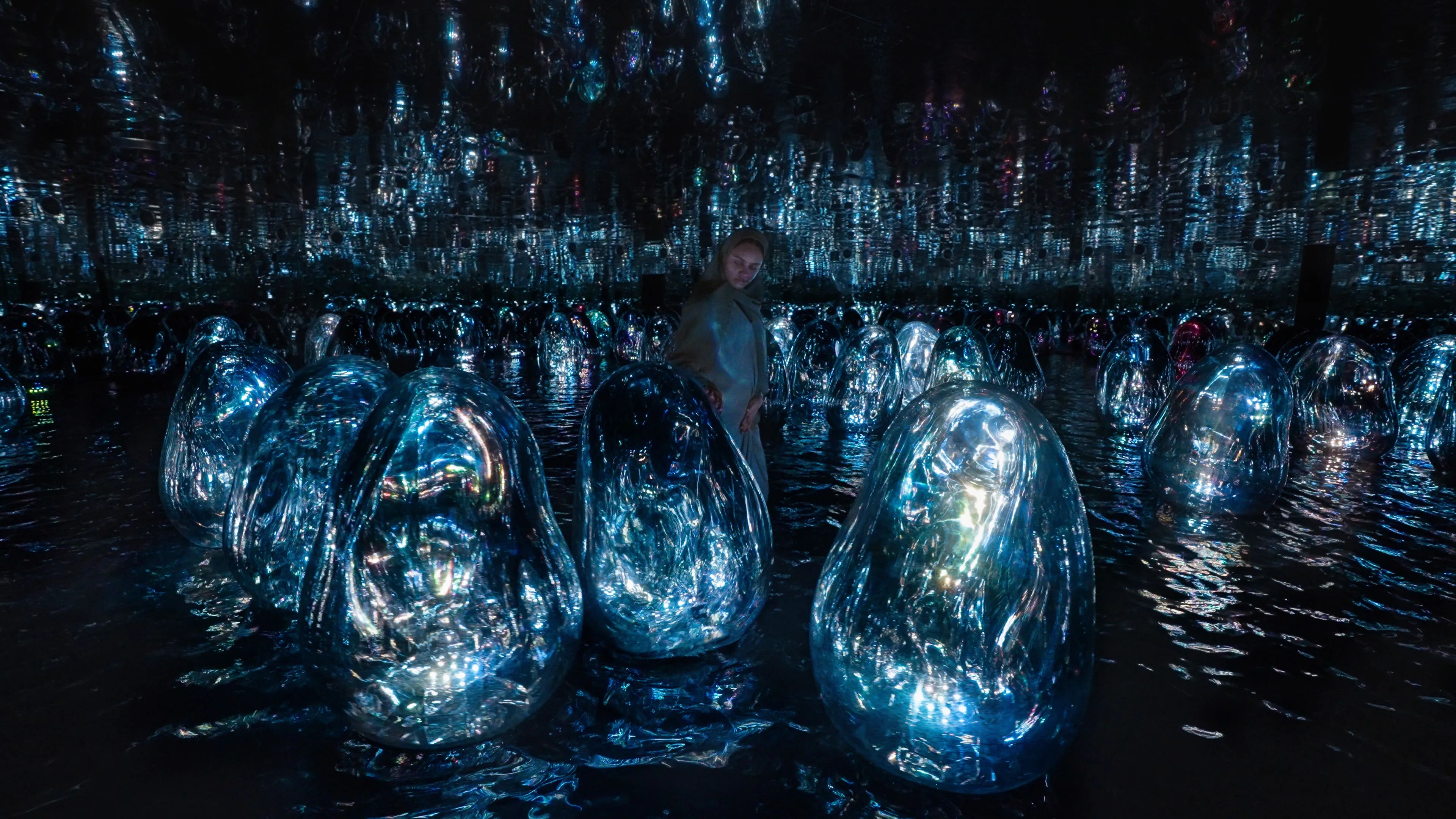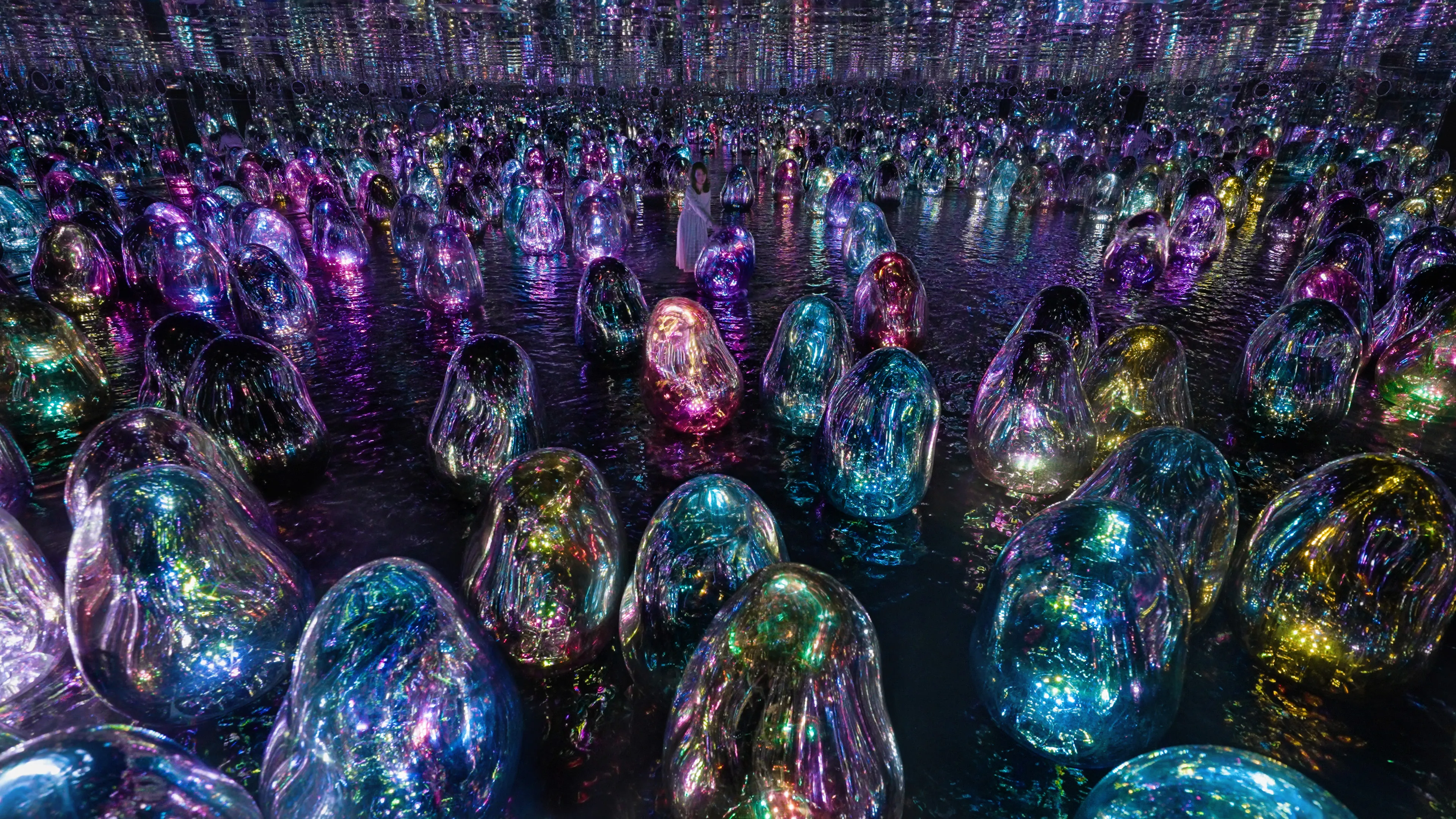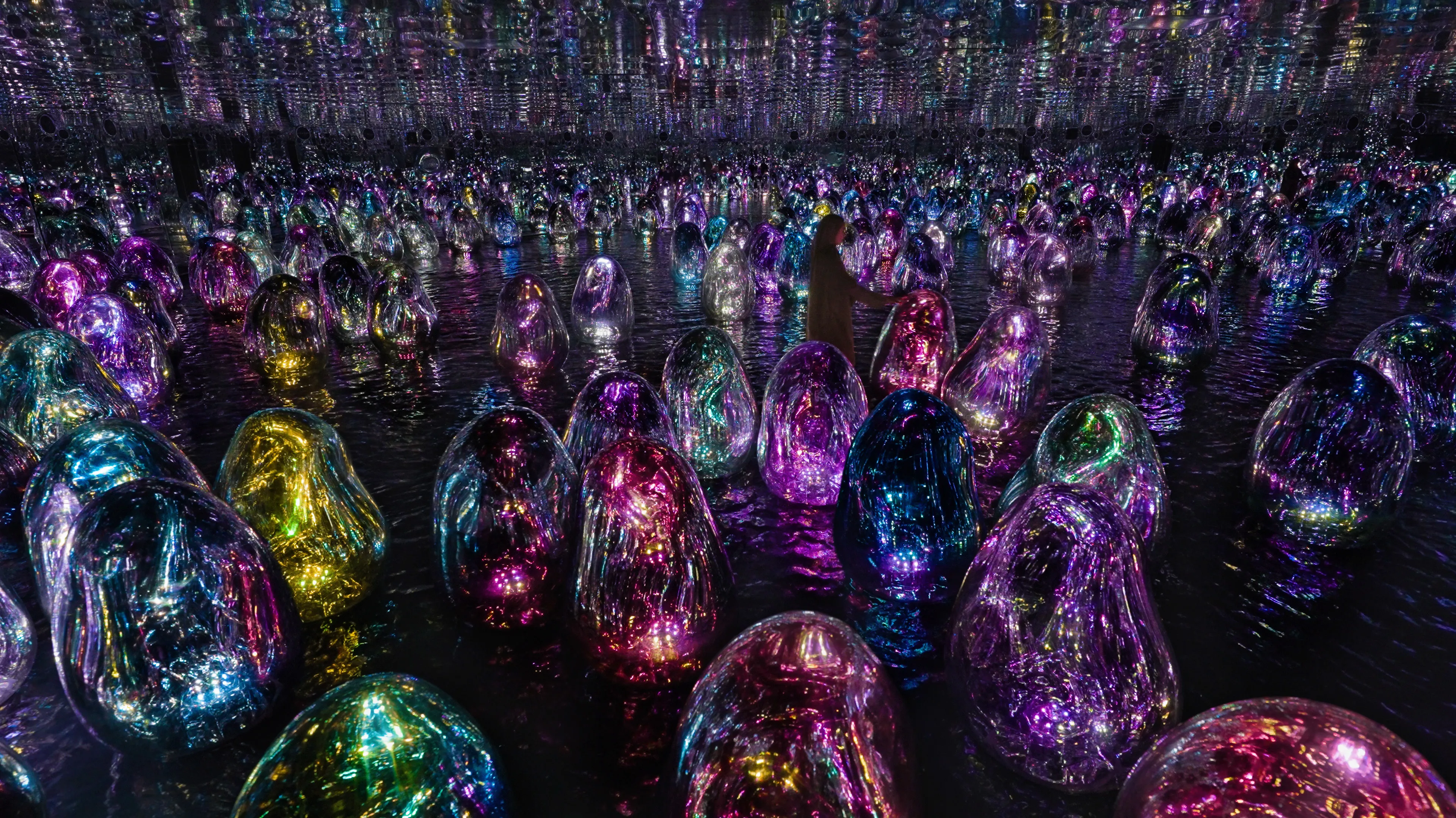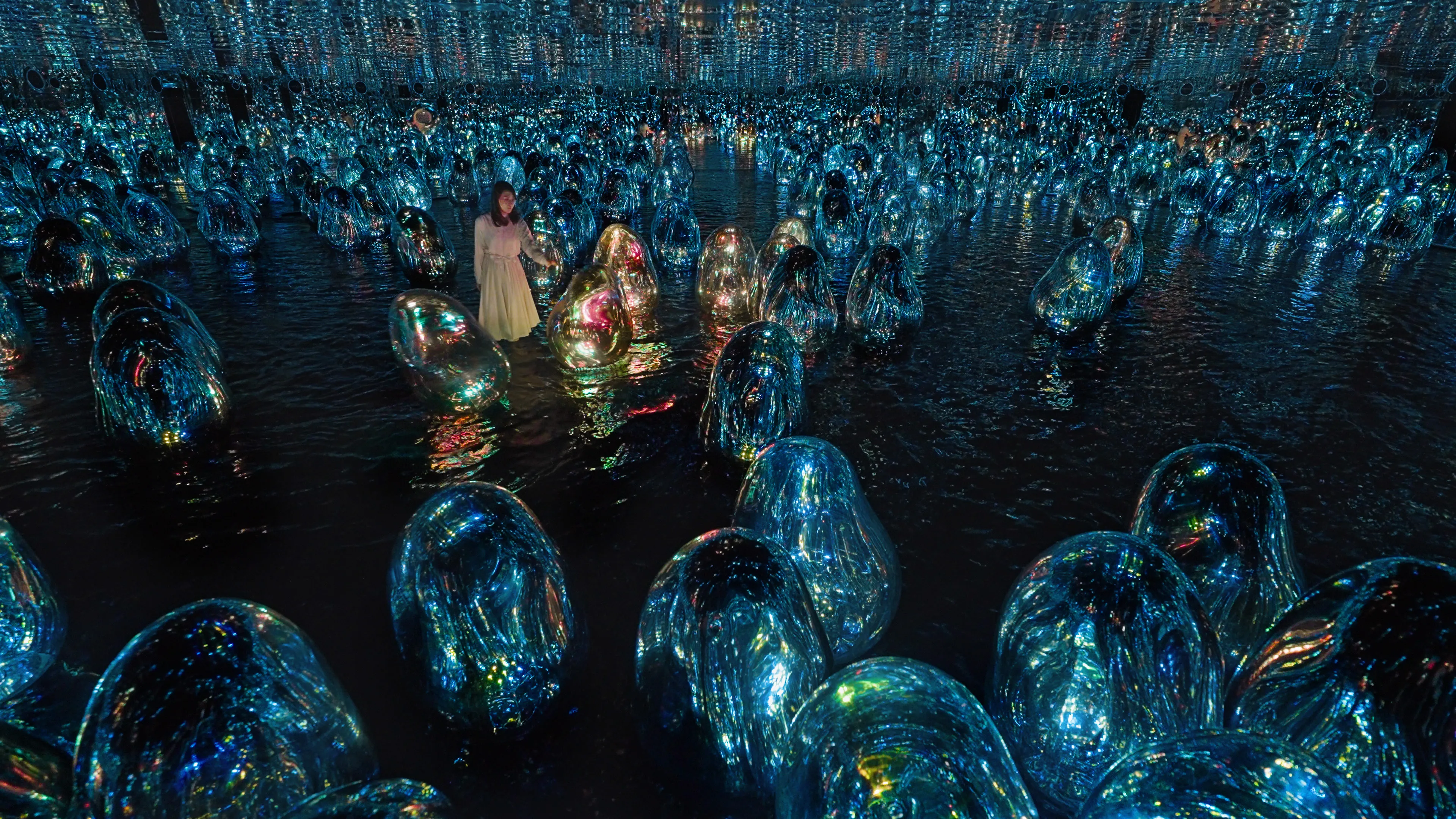 This is a series from teamLabBall (2009-) featuring soft and flexible sculptures that relate to people’s bodies, sculptures that change the relationship between people and the space through the influence of people's behavior, and spatial sculptures with ambiguous boundaries.