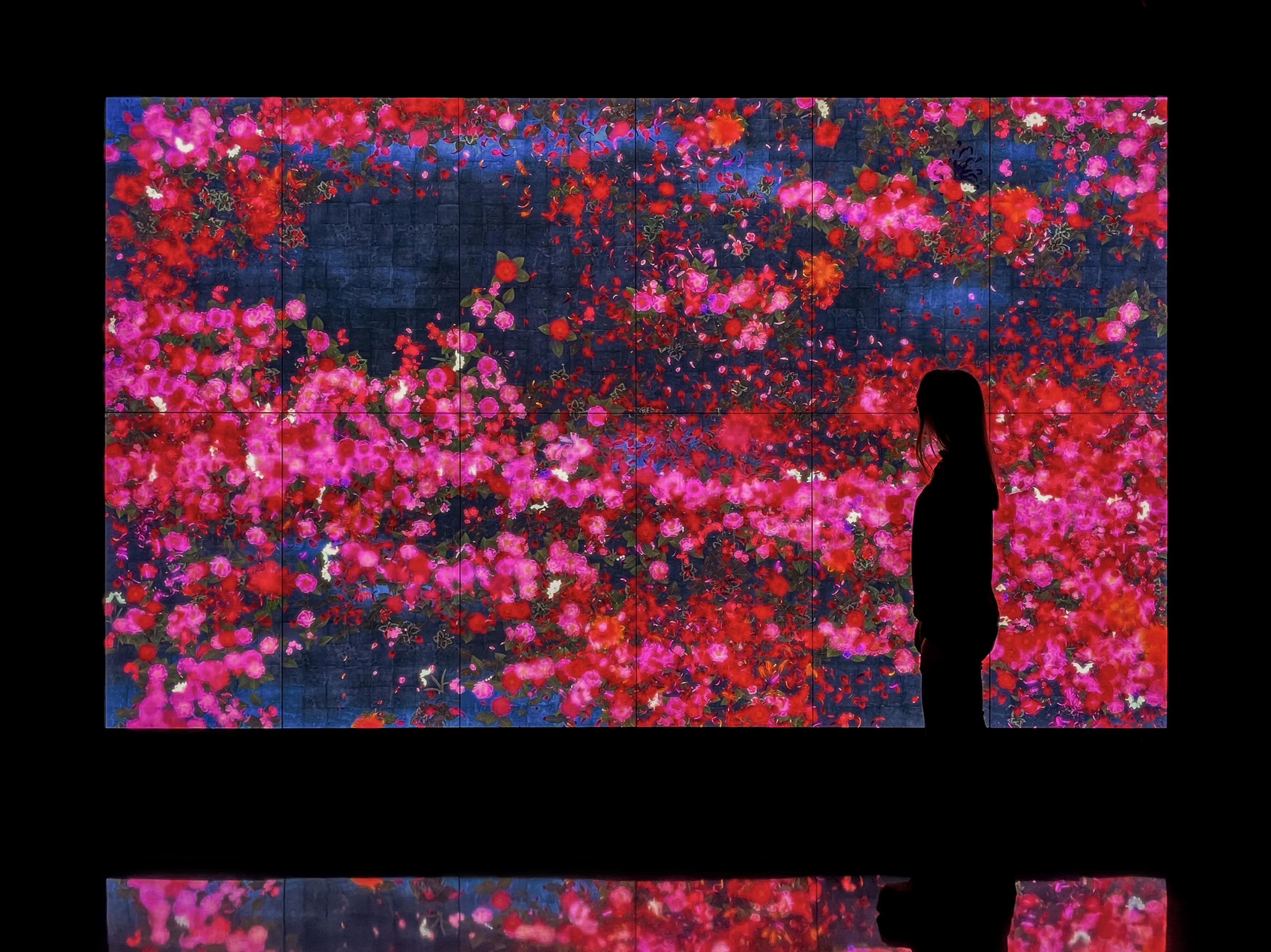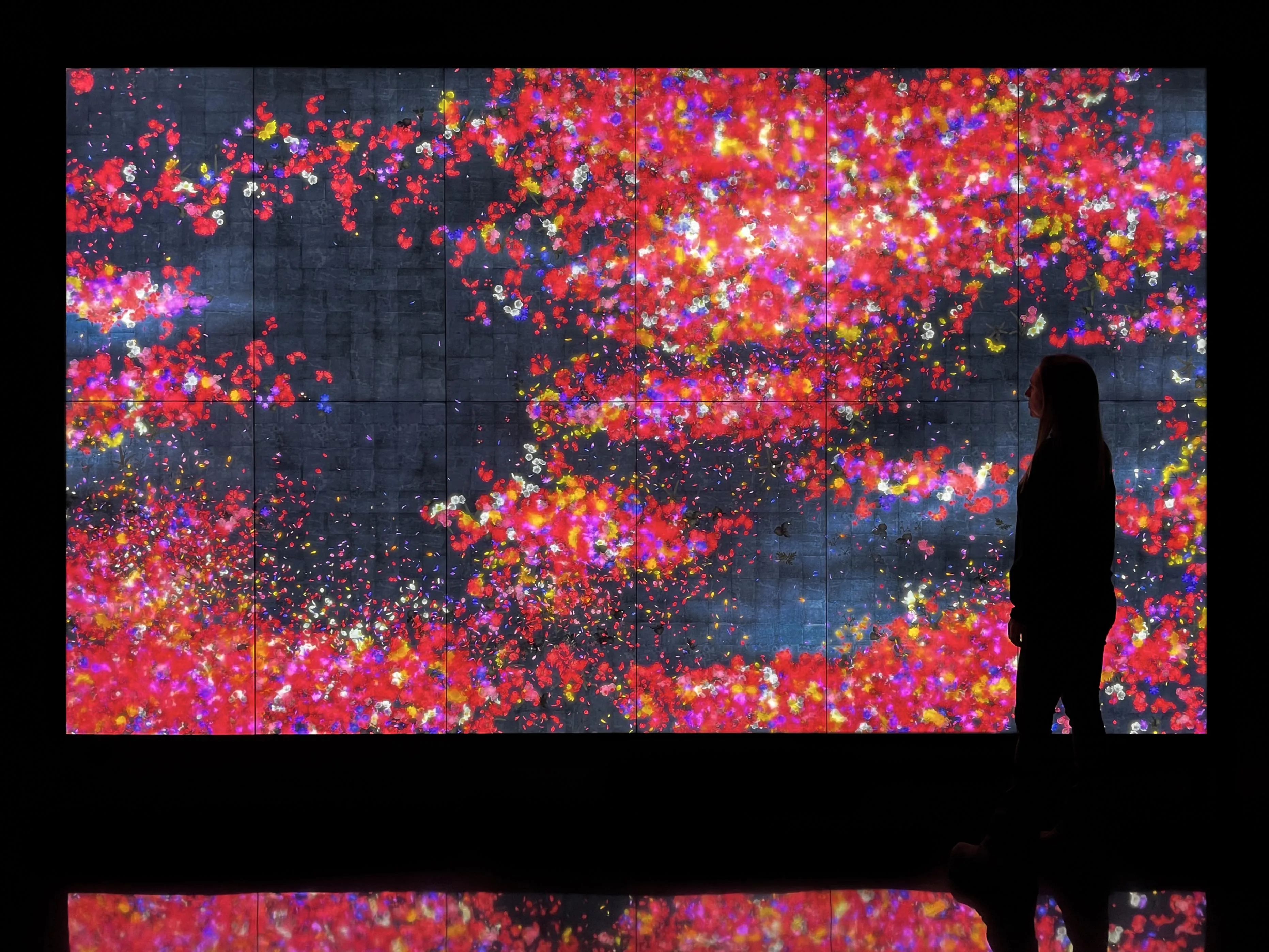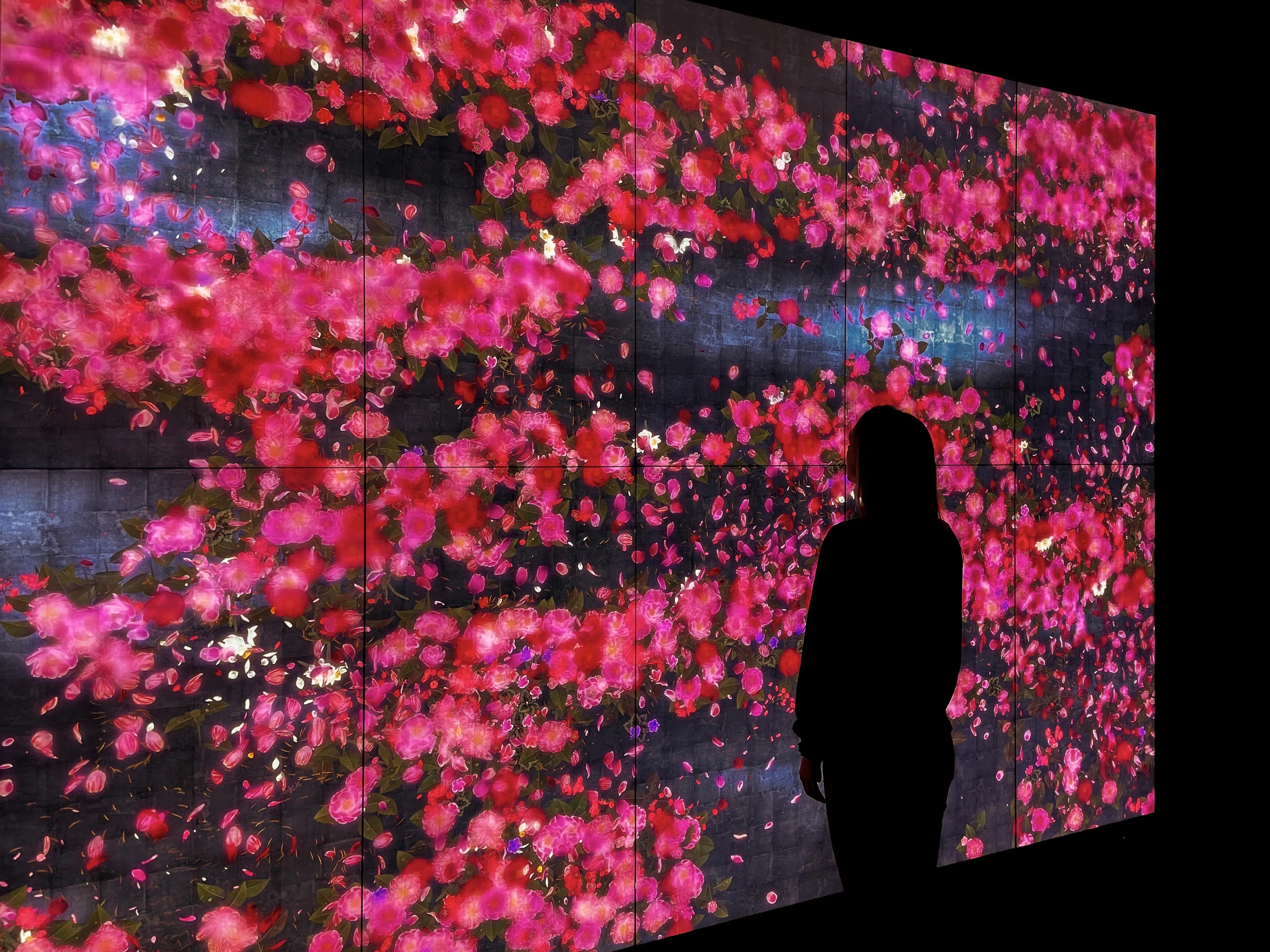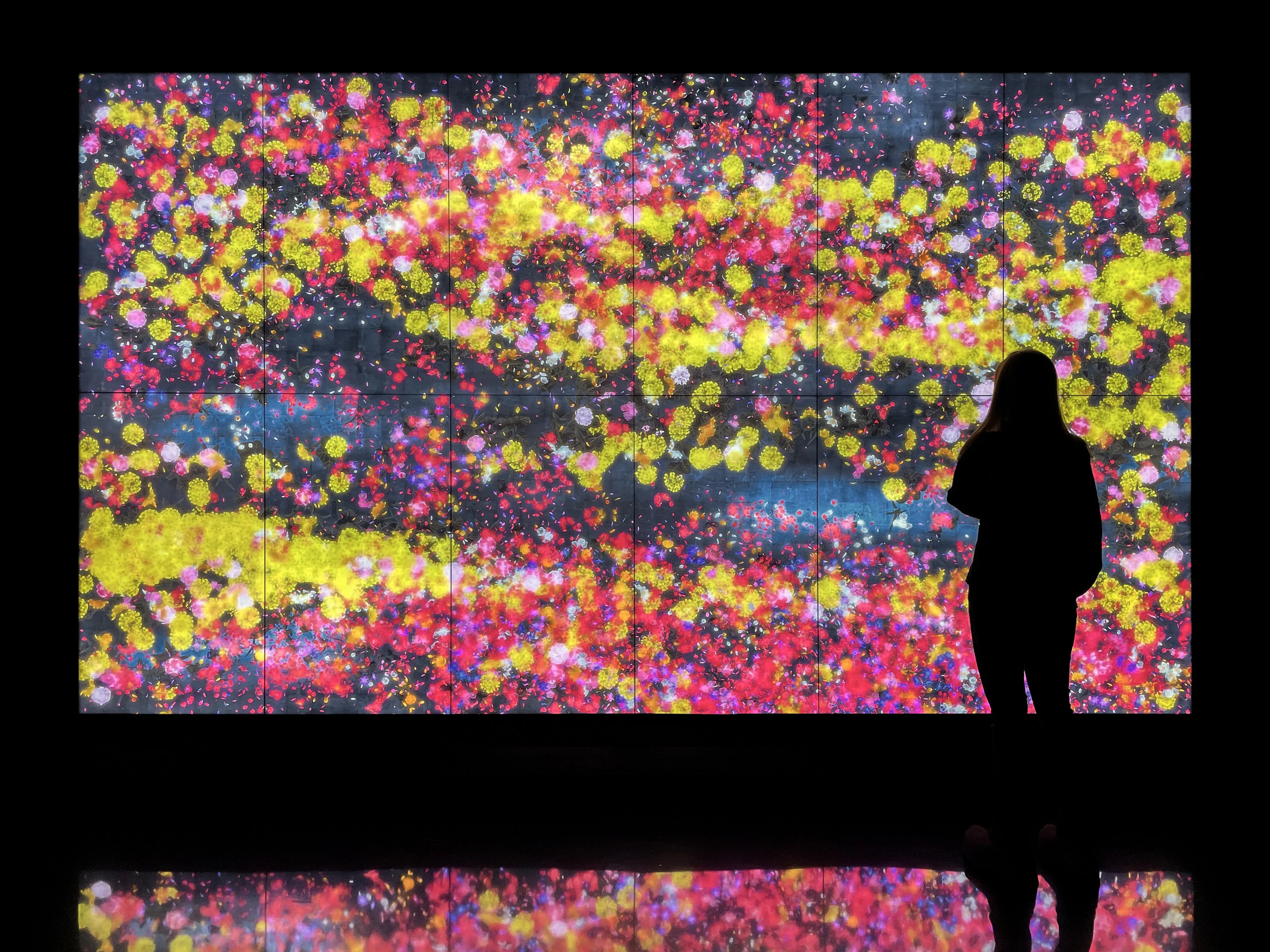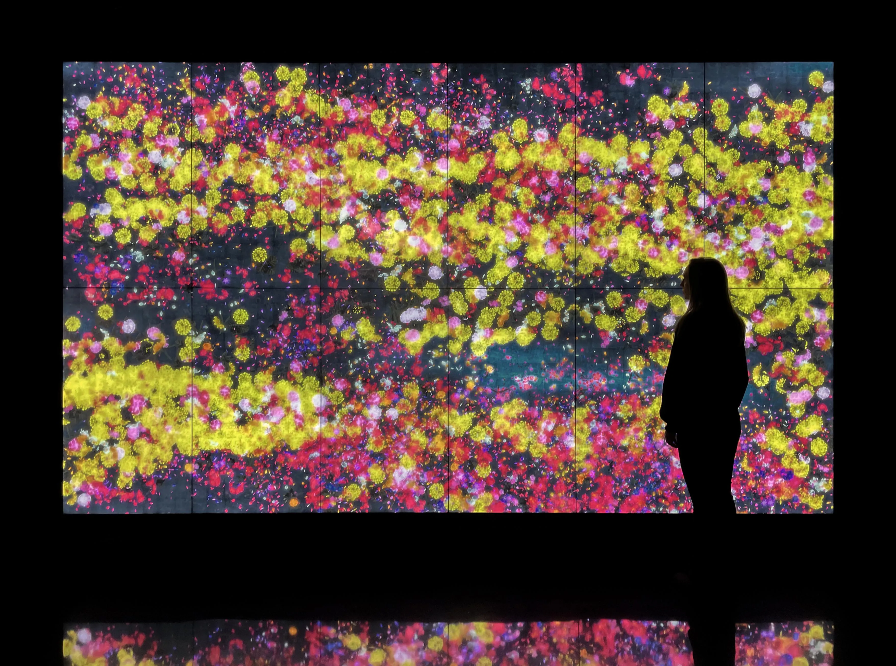 teamLab, 2020, Interactive Digital Work, 12 channels (6 channels x 2 rows), Endless, Sound: Hideaki Takahashi