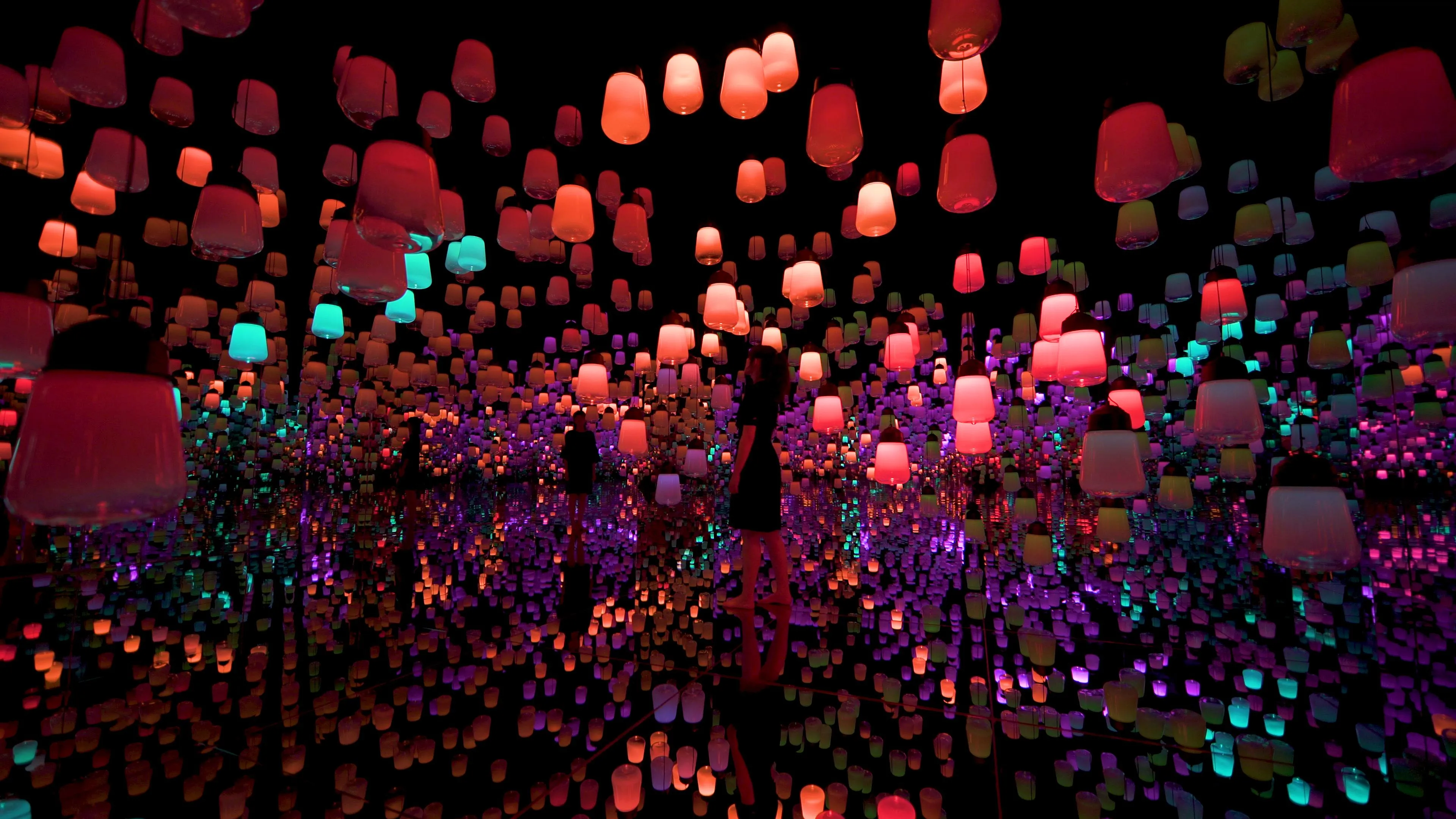 人们的自由走动与灯具互动而创造出来的,光之连续性的作品。
